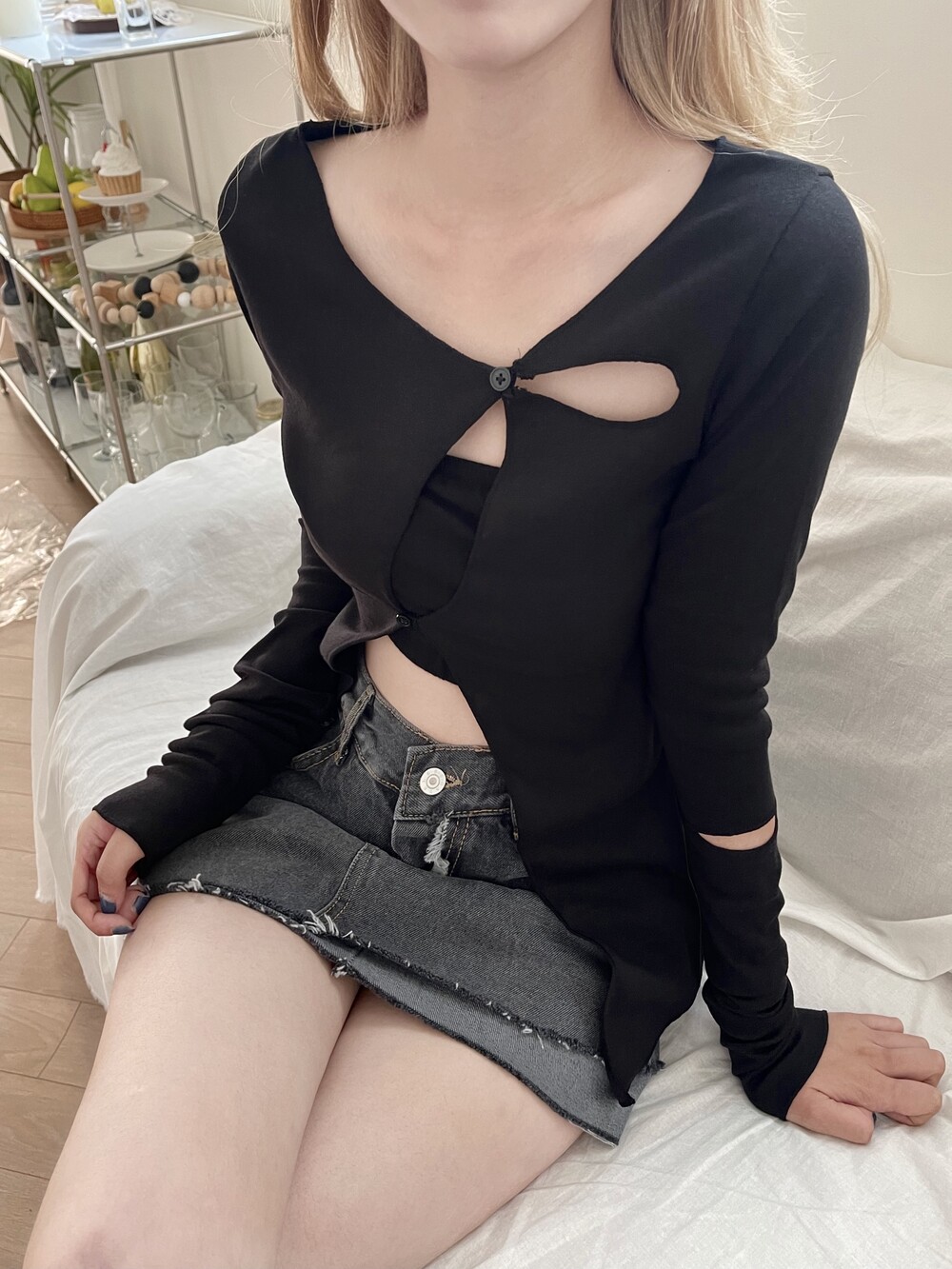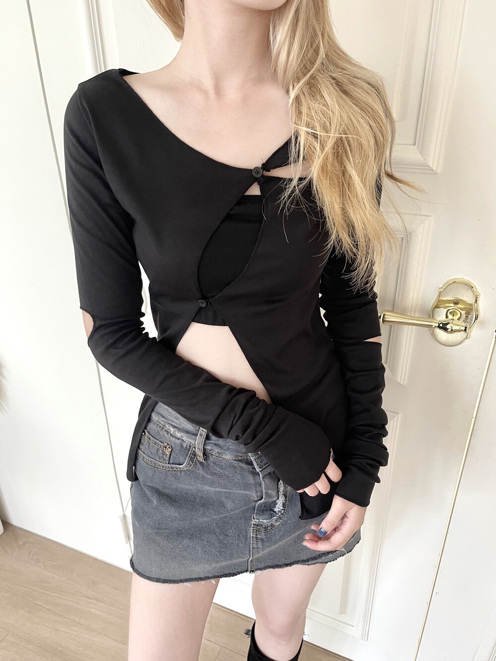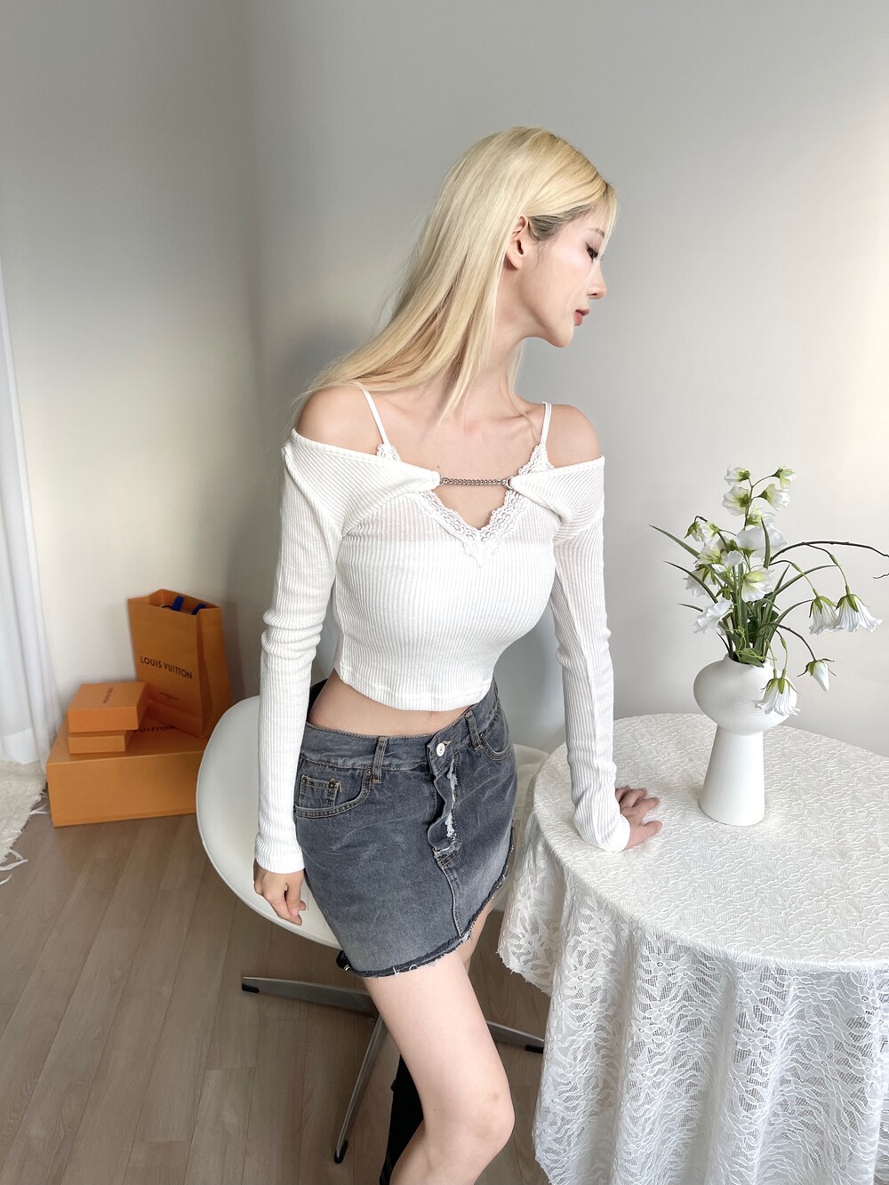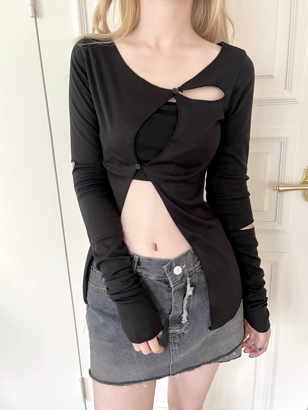 그레이 워싱 데미지 더블 미니 로우 스커트
