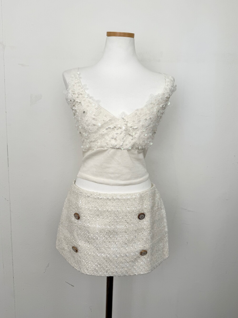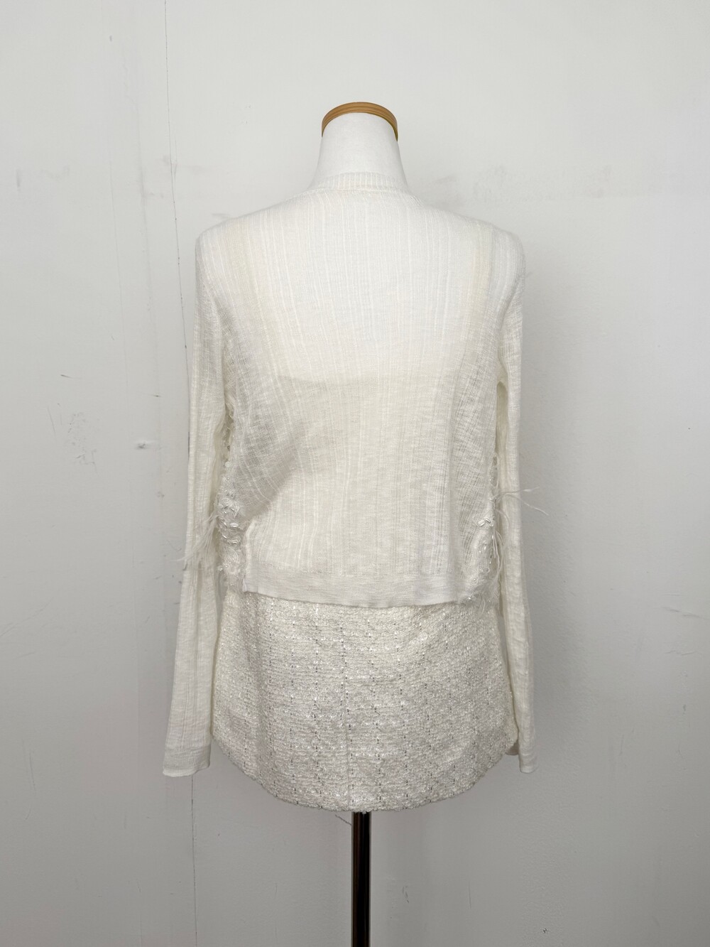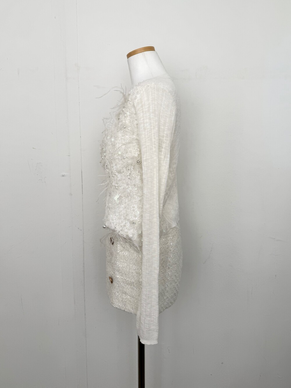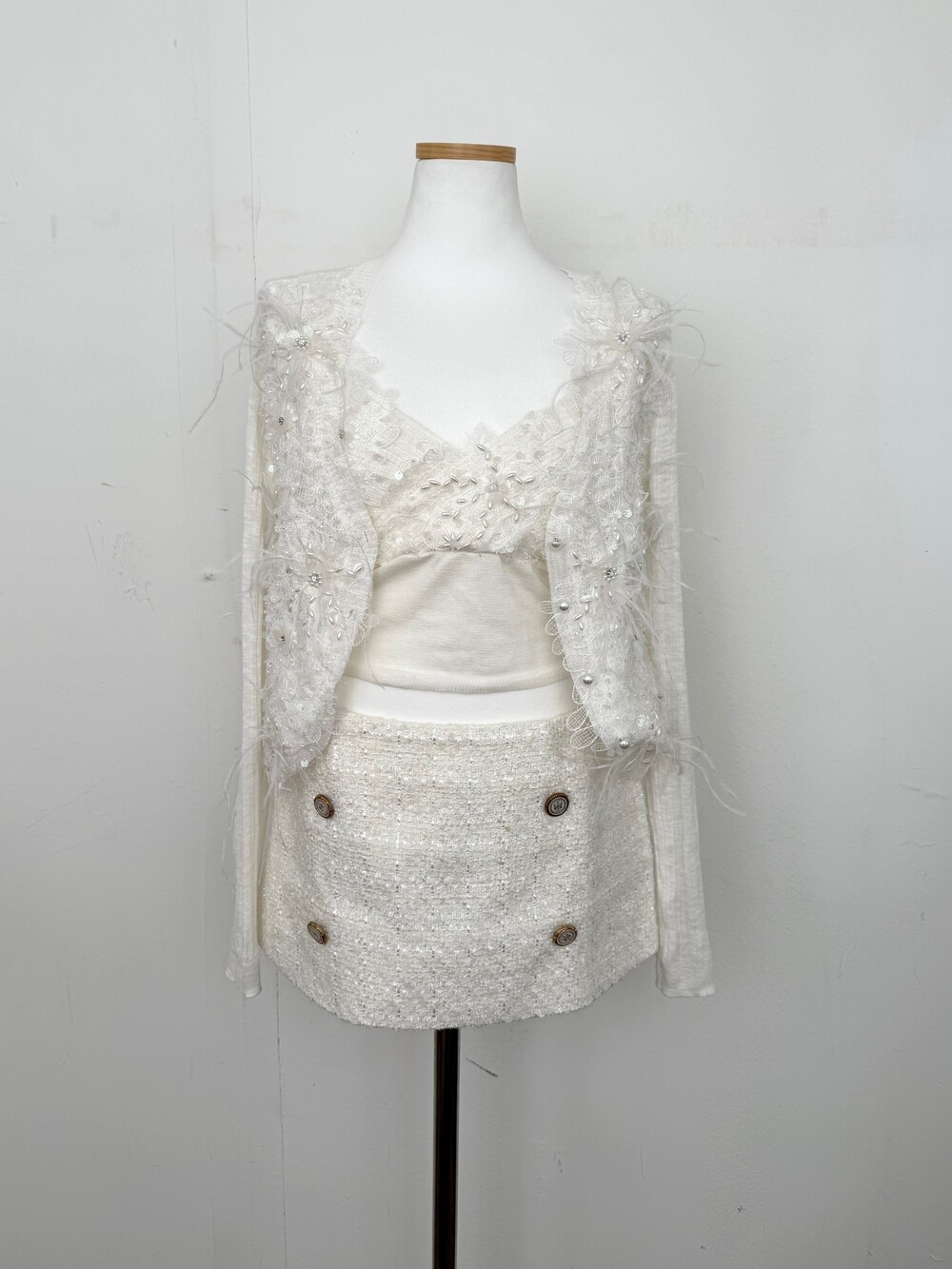 깃털 무드의 스팽글 트리밍이 돋보이는 세트입니다
