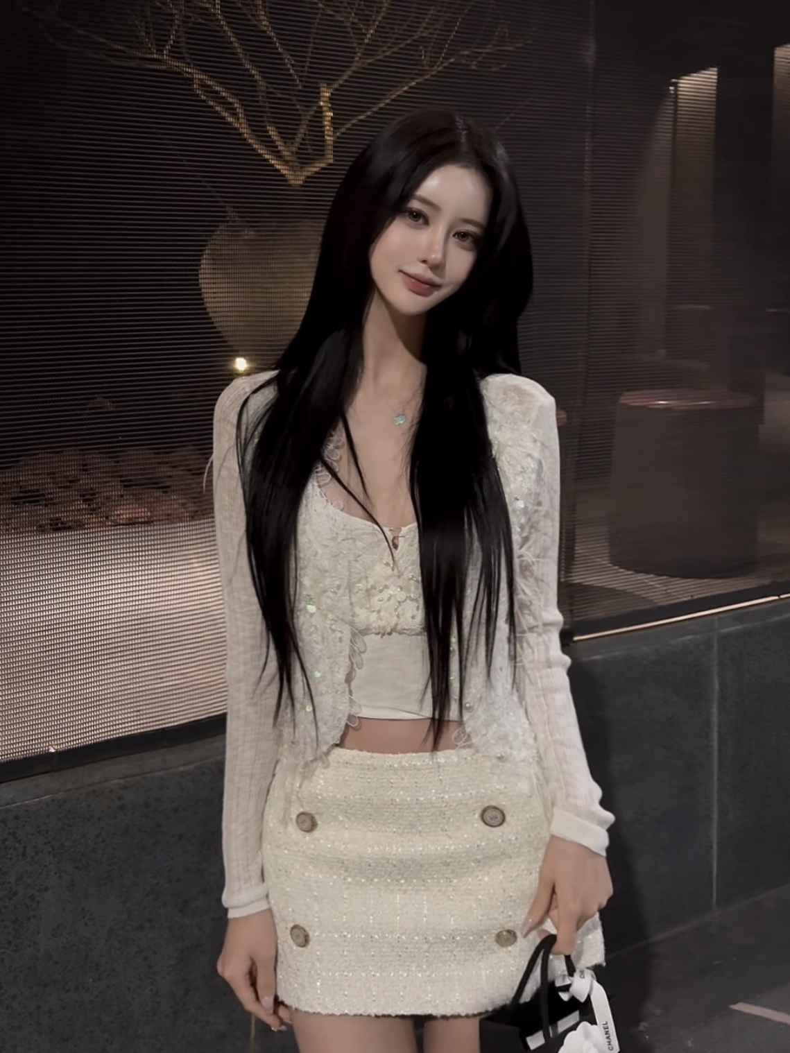 크롭 슬리브리스와 롱슬리브 가디건 세트 구성으로