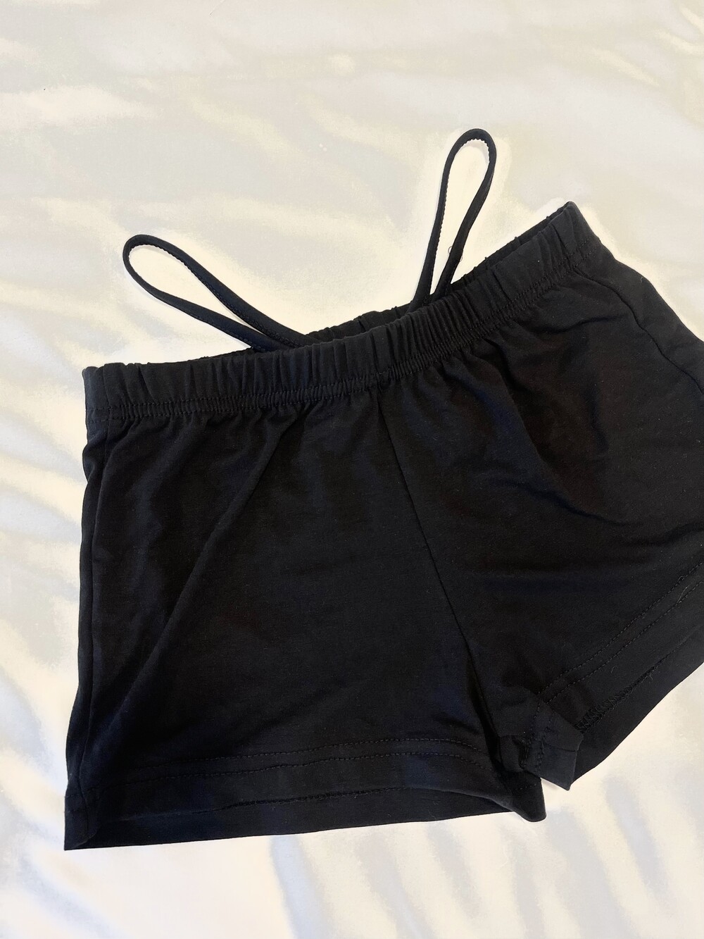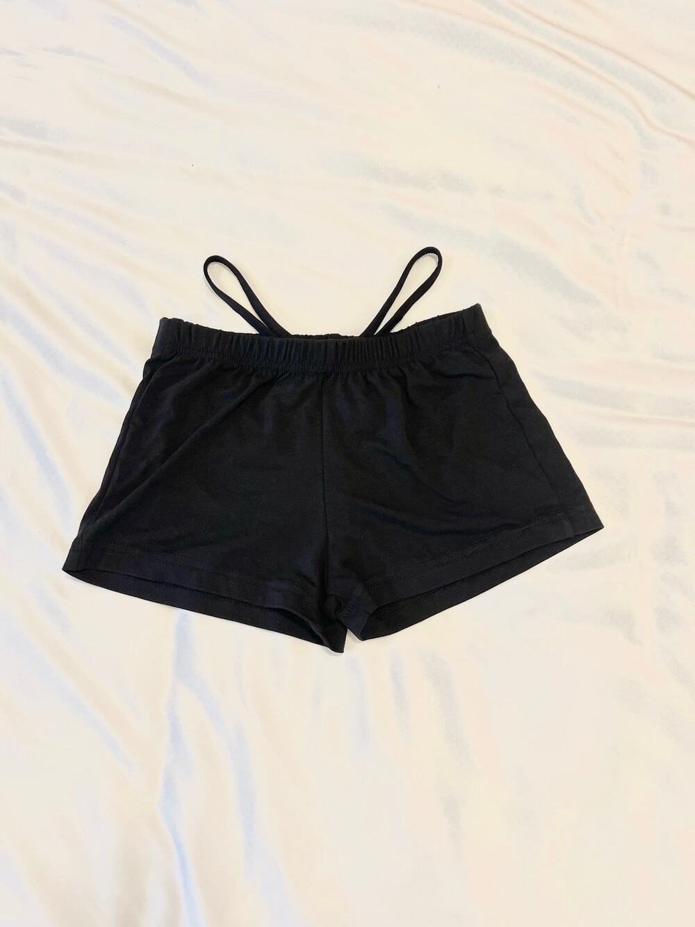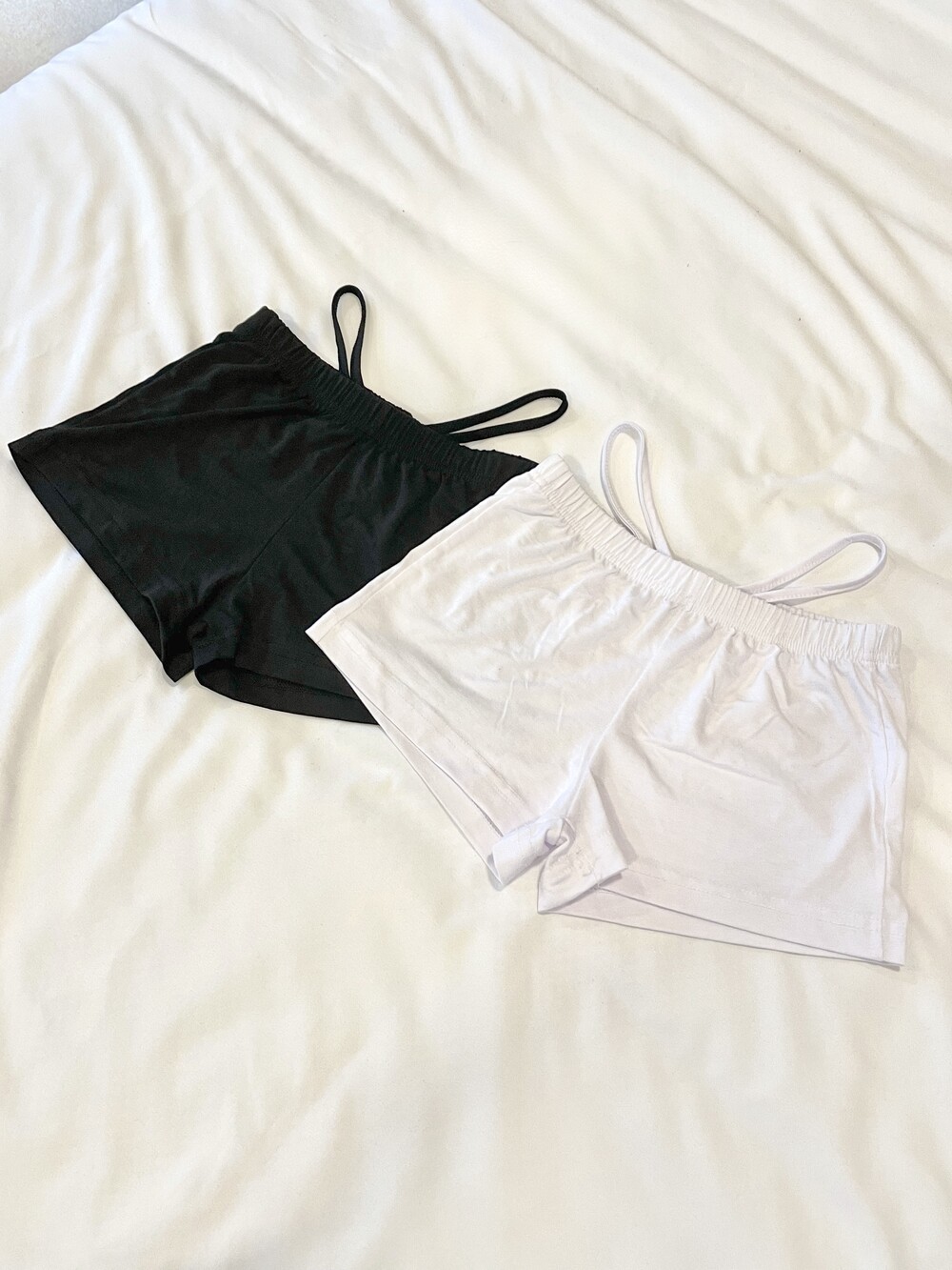 로우웨이스트 하의와 레이어드하기 좋은 스트랩 숏팬츠