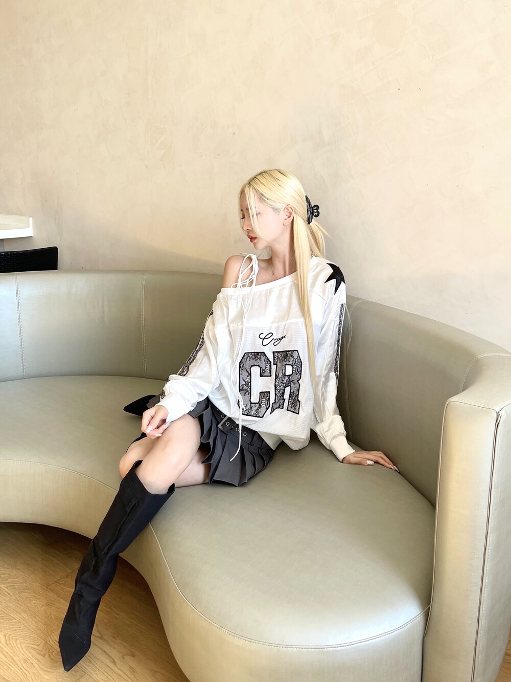 부착 레이어링된 아일렛 벨트 디자인이 돋보이는 제품