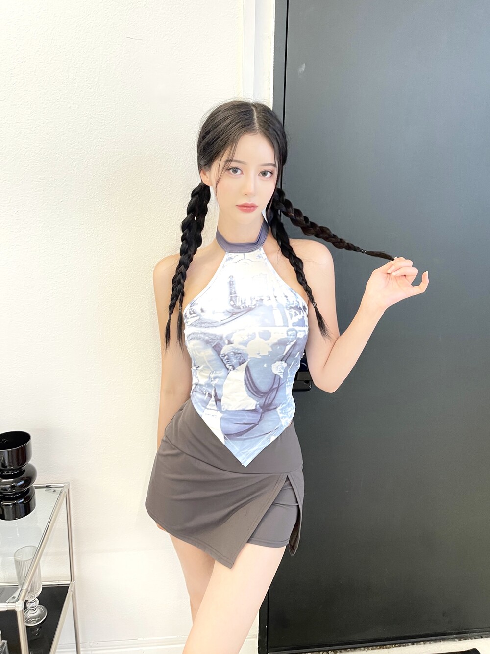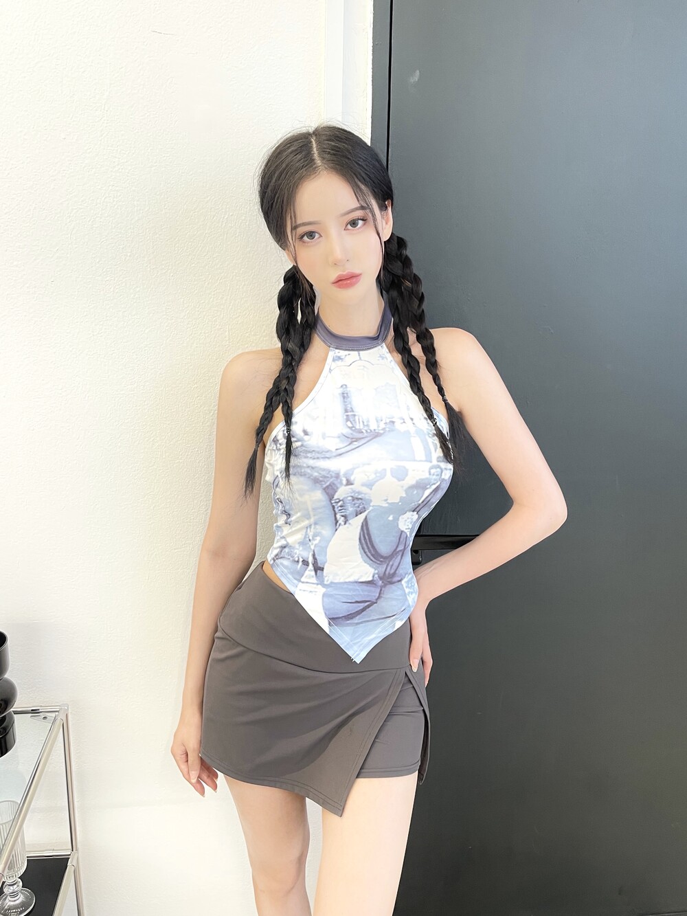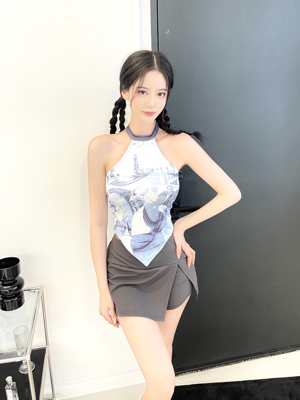 슬릿 스커트가 레이어드된 듯 한 디자인