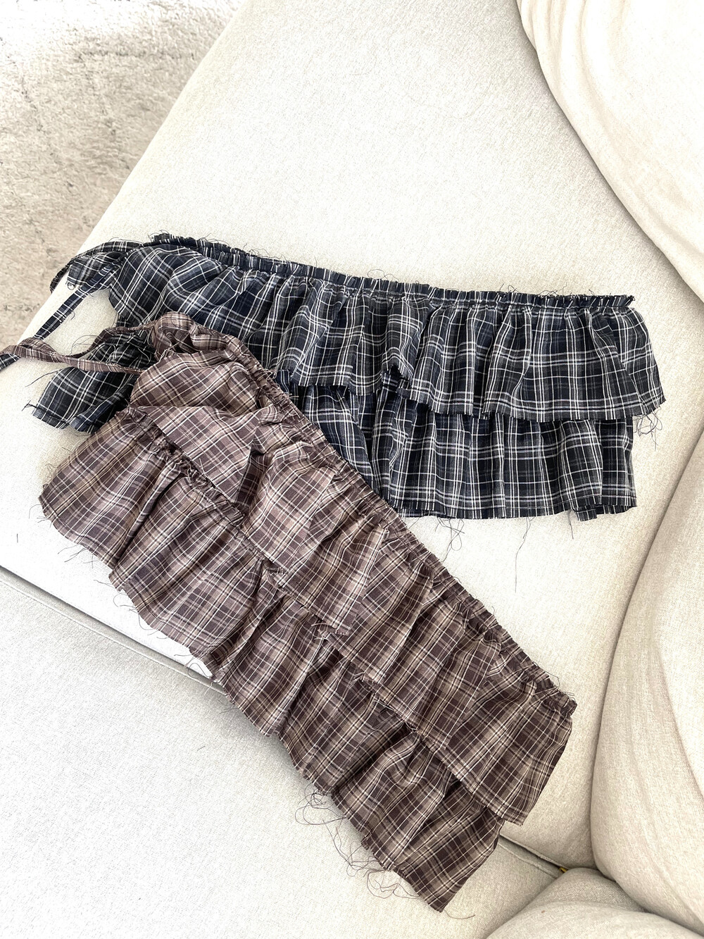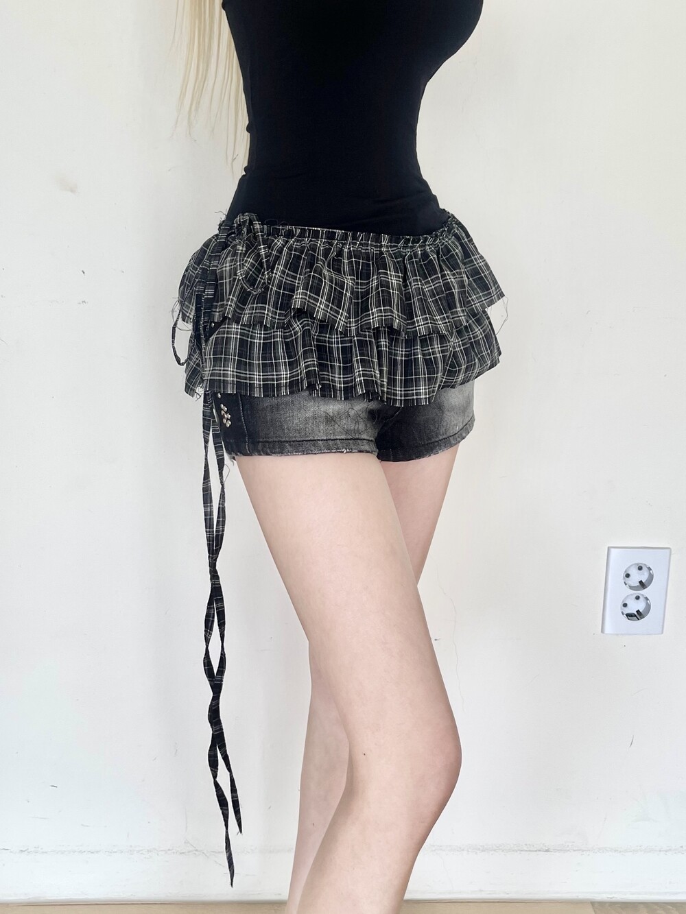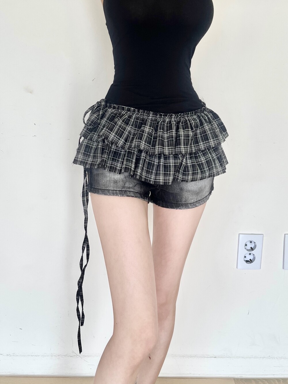 1490. 체크 캉캉 프릴 레이어드 스커트 (2color)