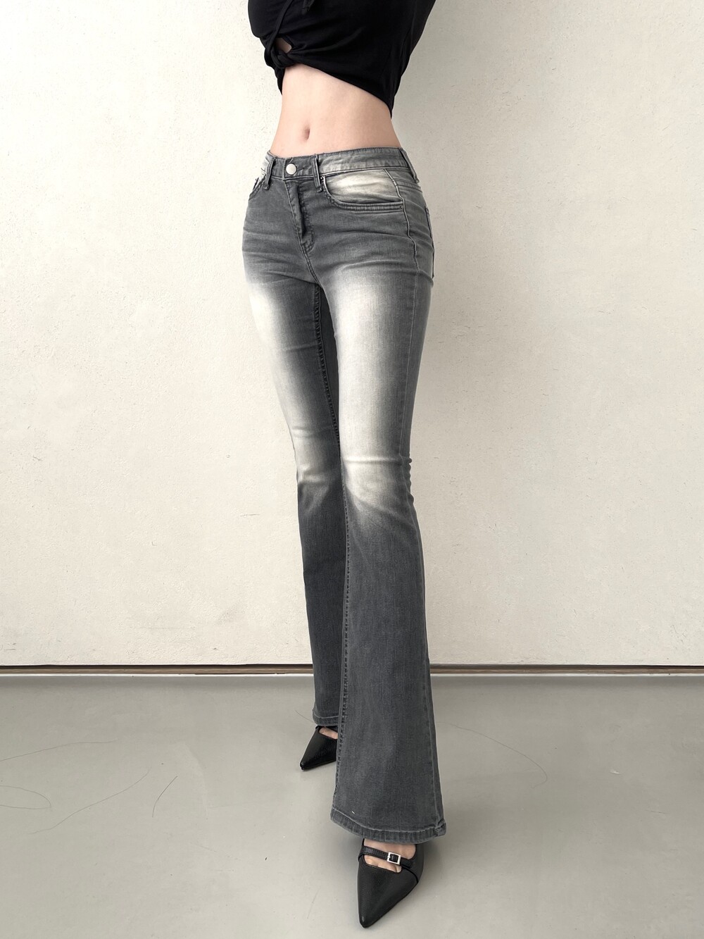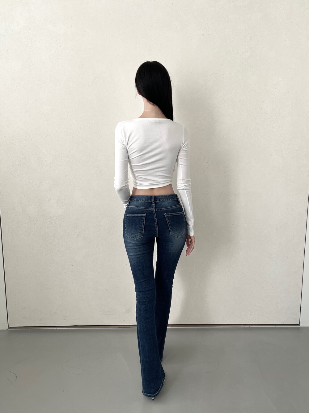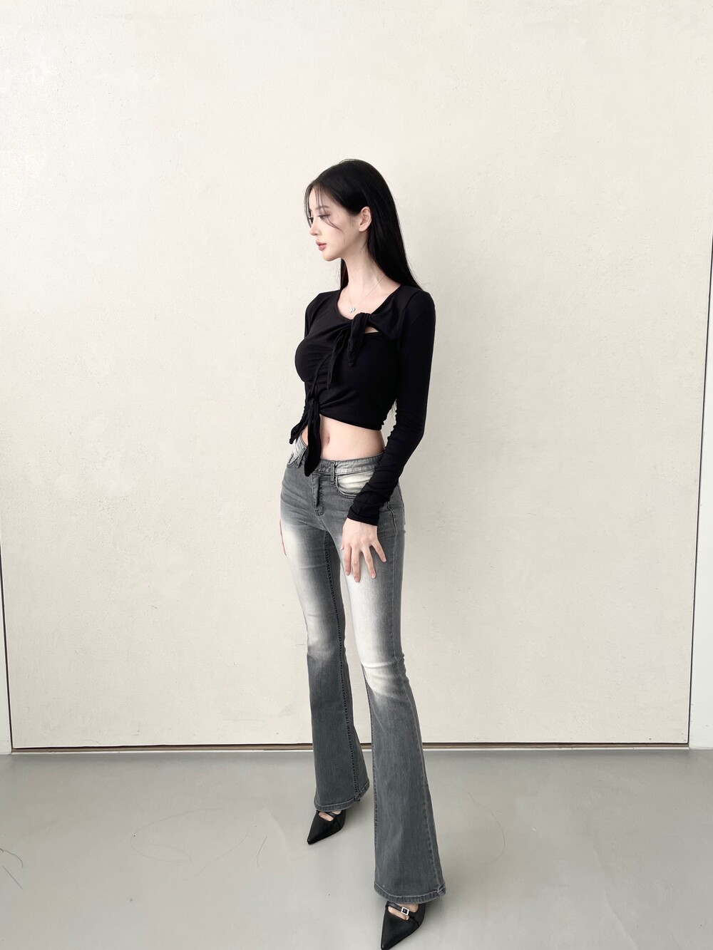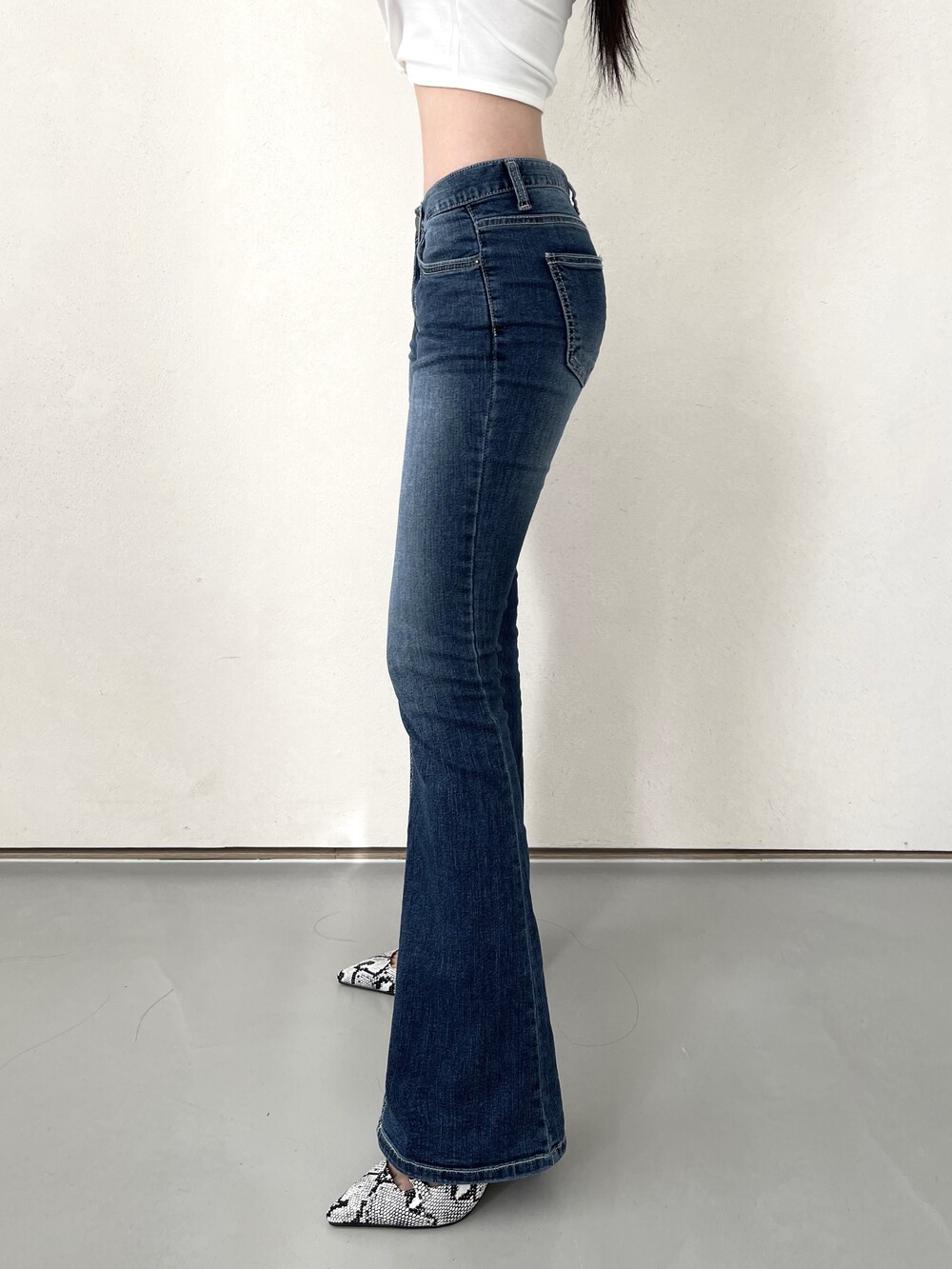 하이라이트 스판 로우 데님 부츠컷 팬츠