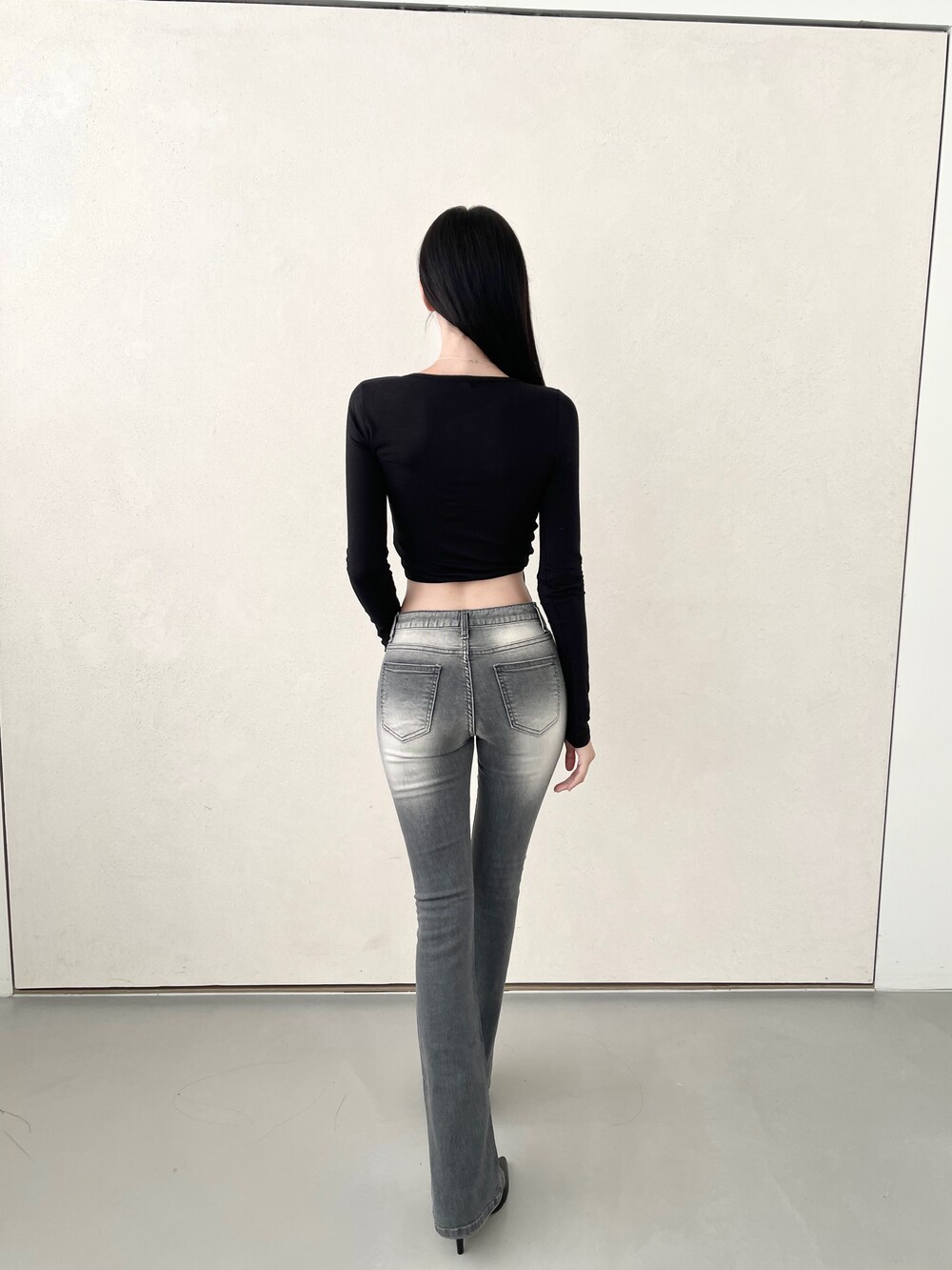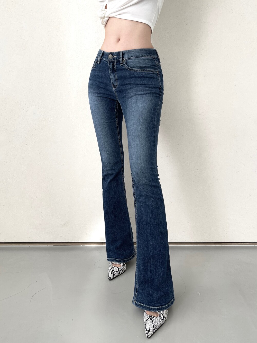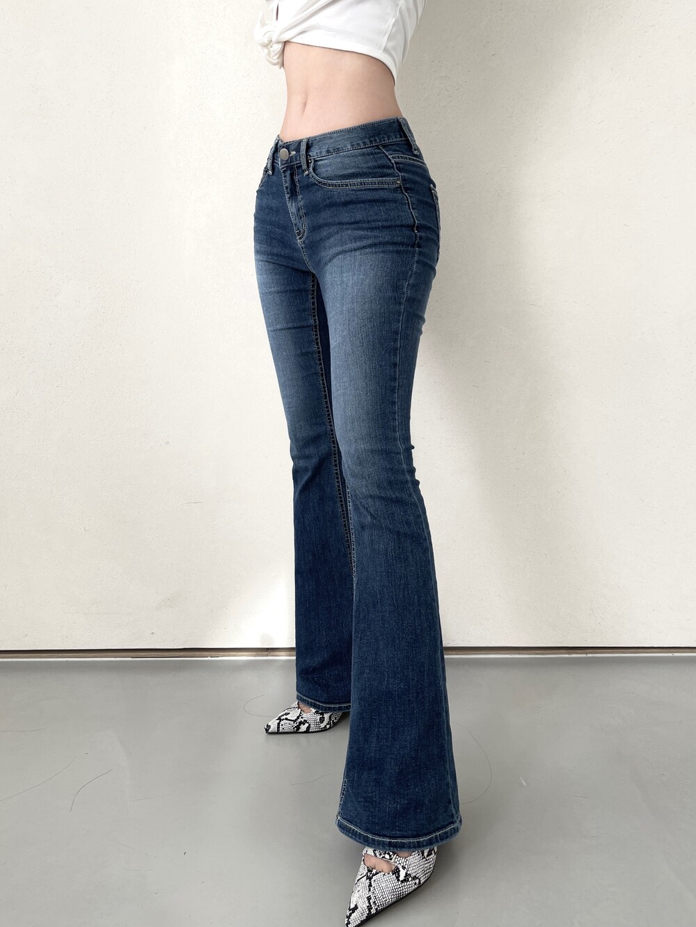 하이라이트 스판 로우 데님 부츠컷 팬츠