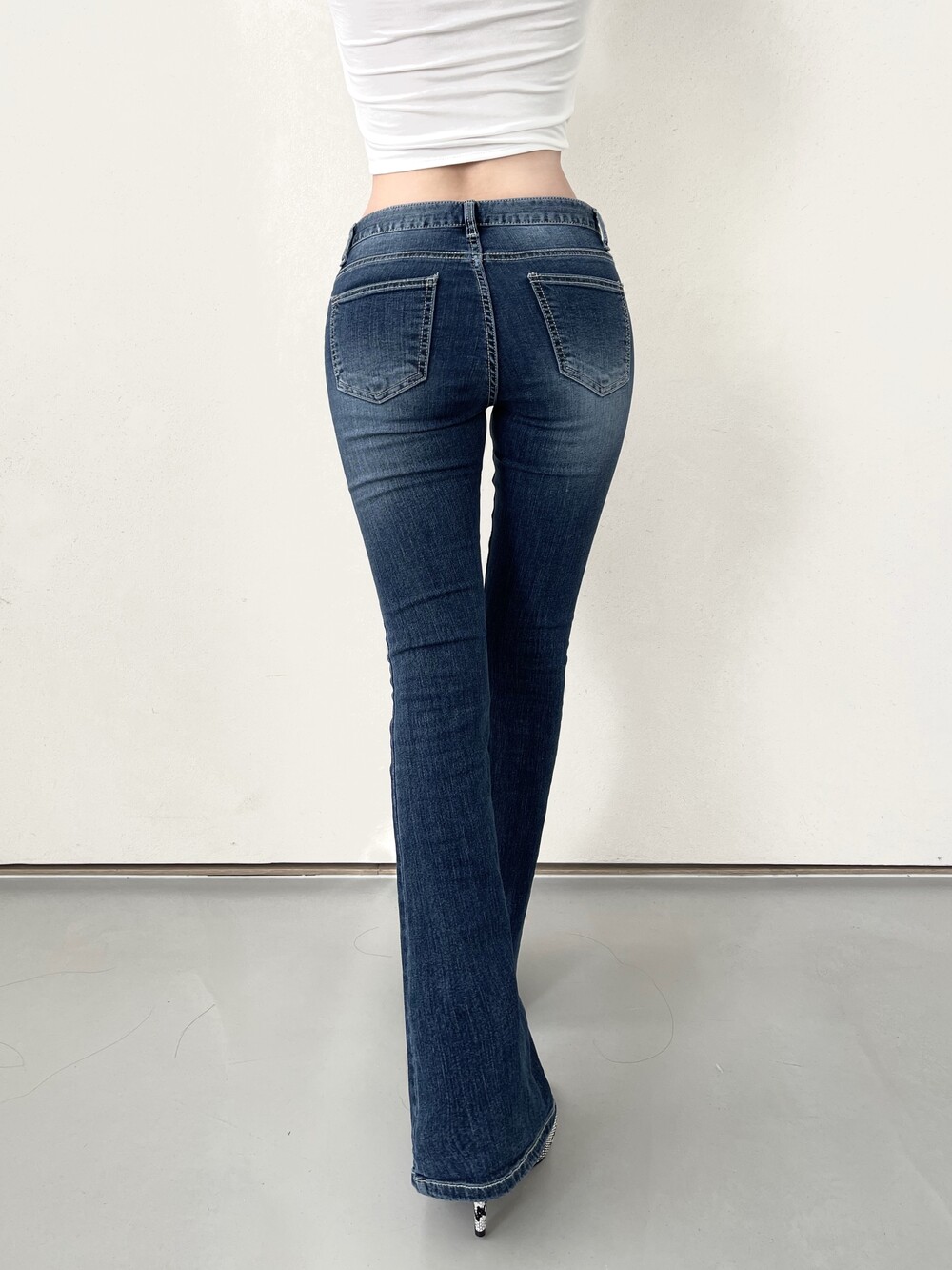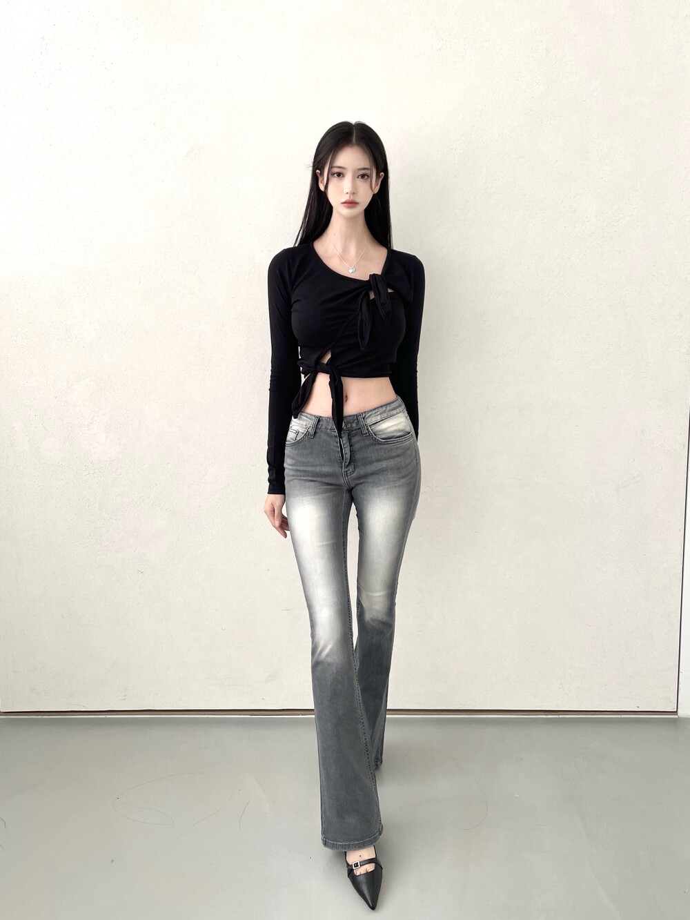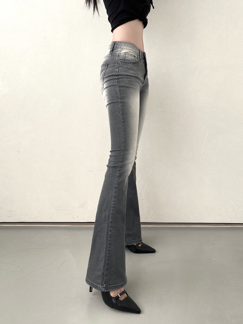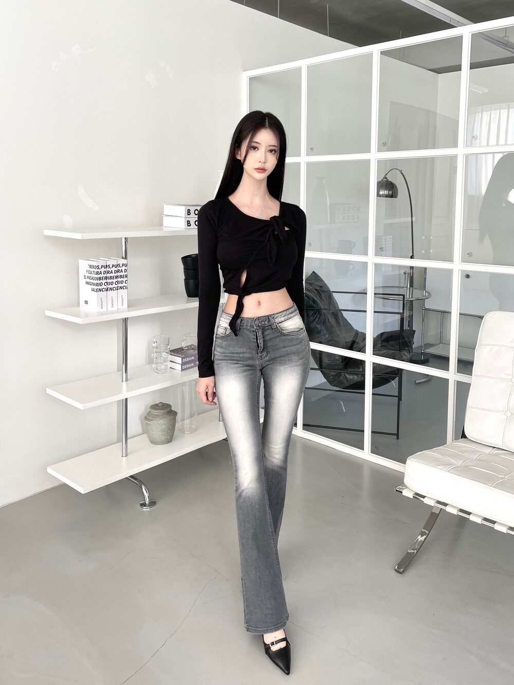 하이라이트 스판 로우 데님 부츠컷 팬츠