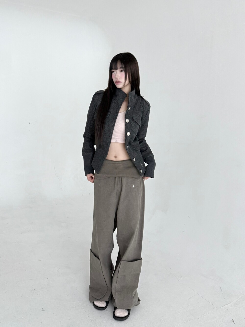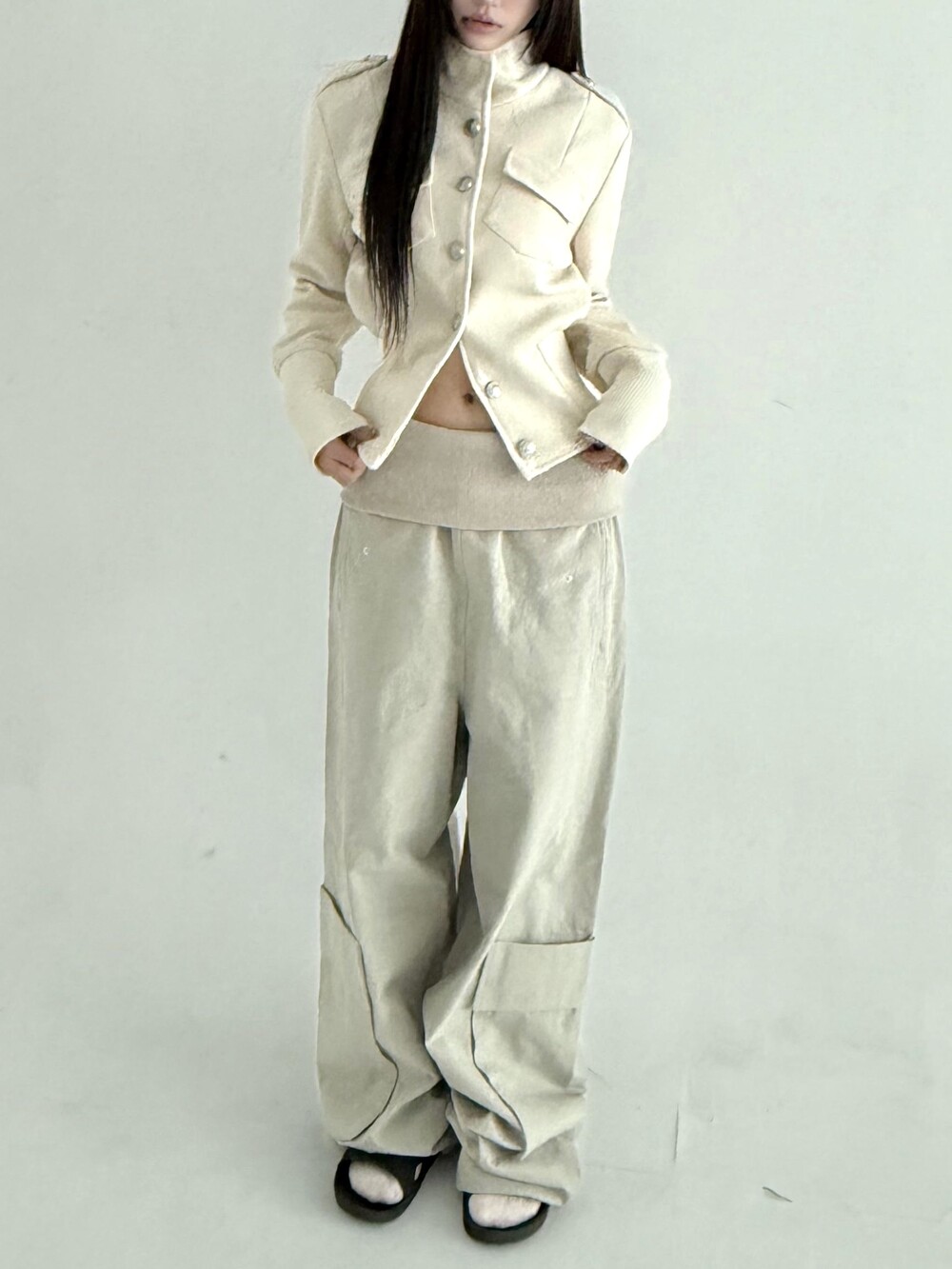 밑단 시보리 디테일로 잘록해보이는 허리라인