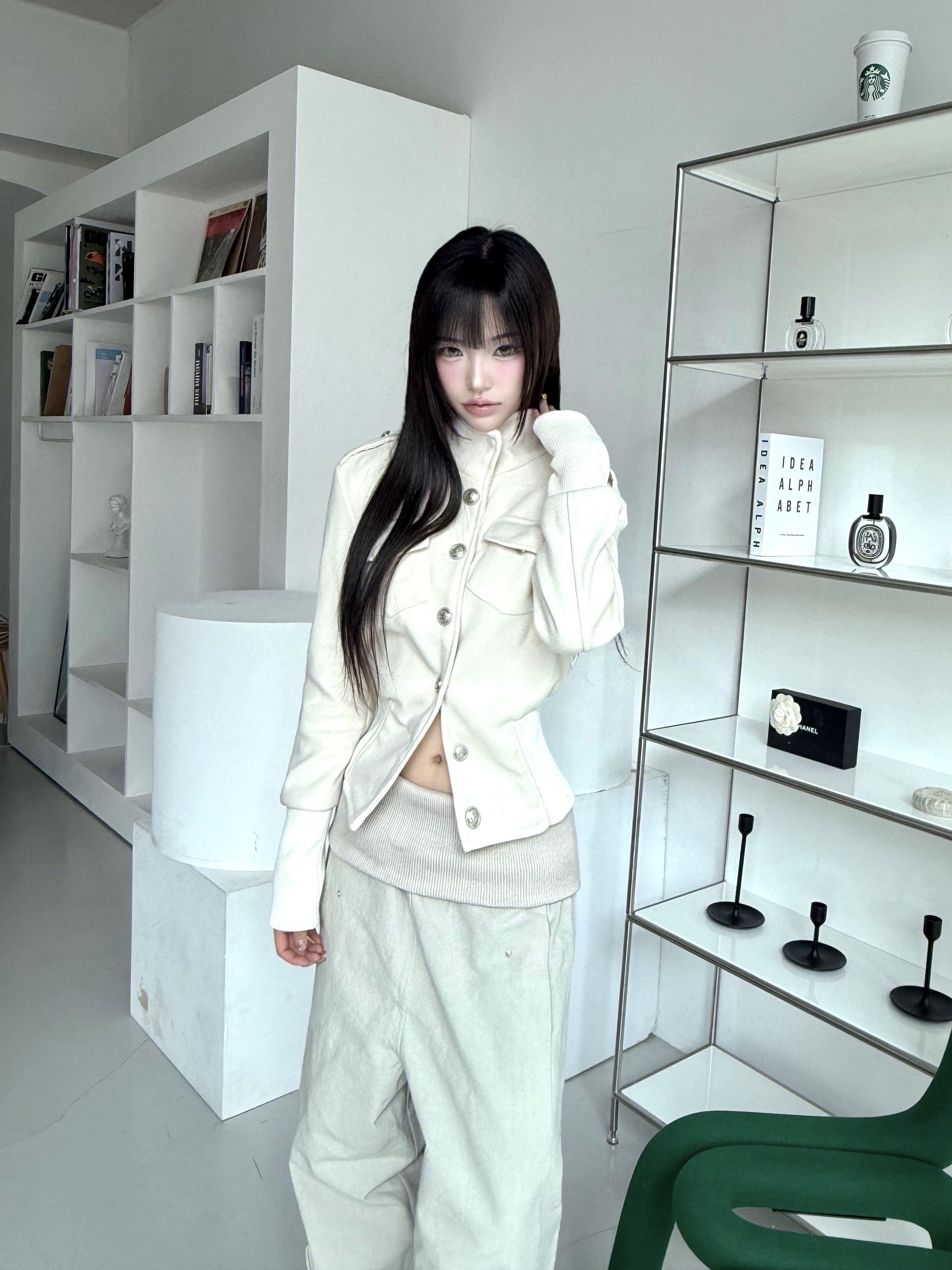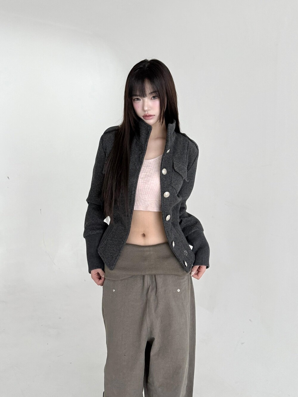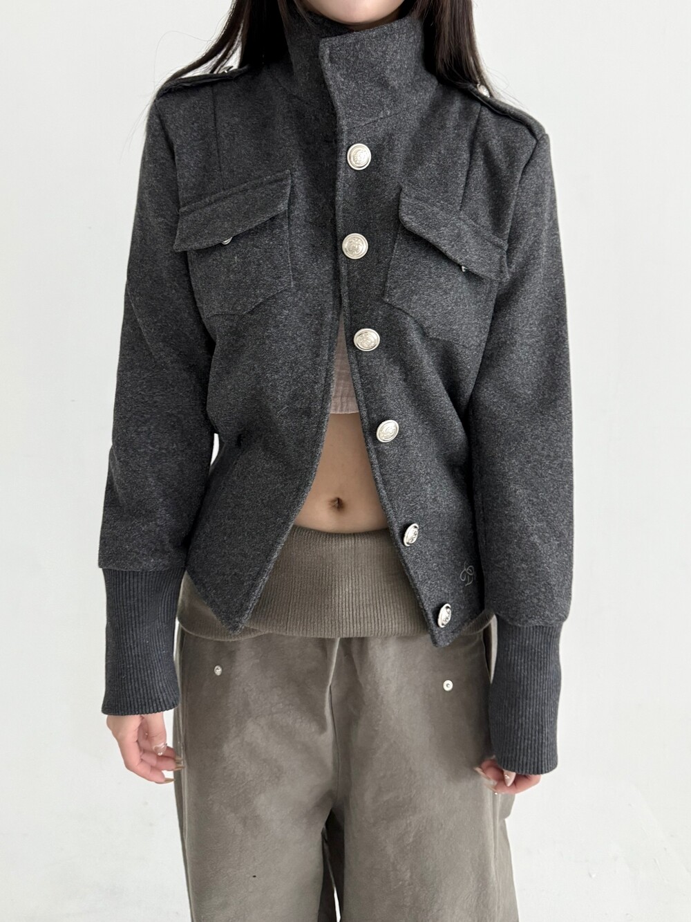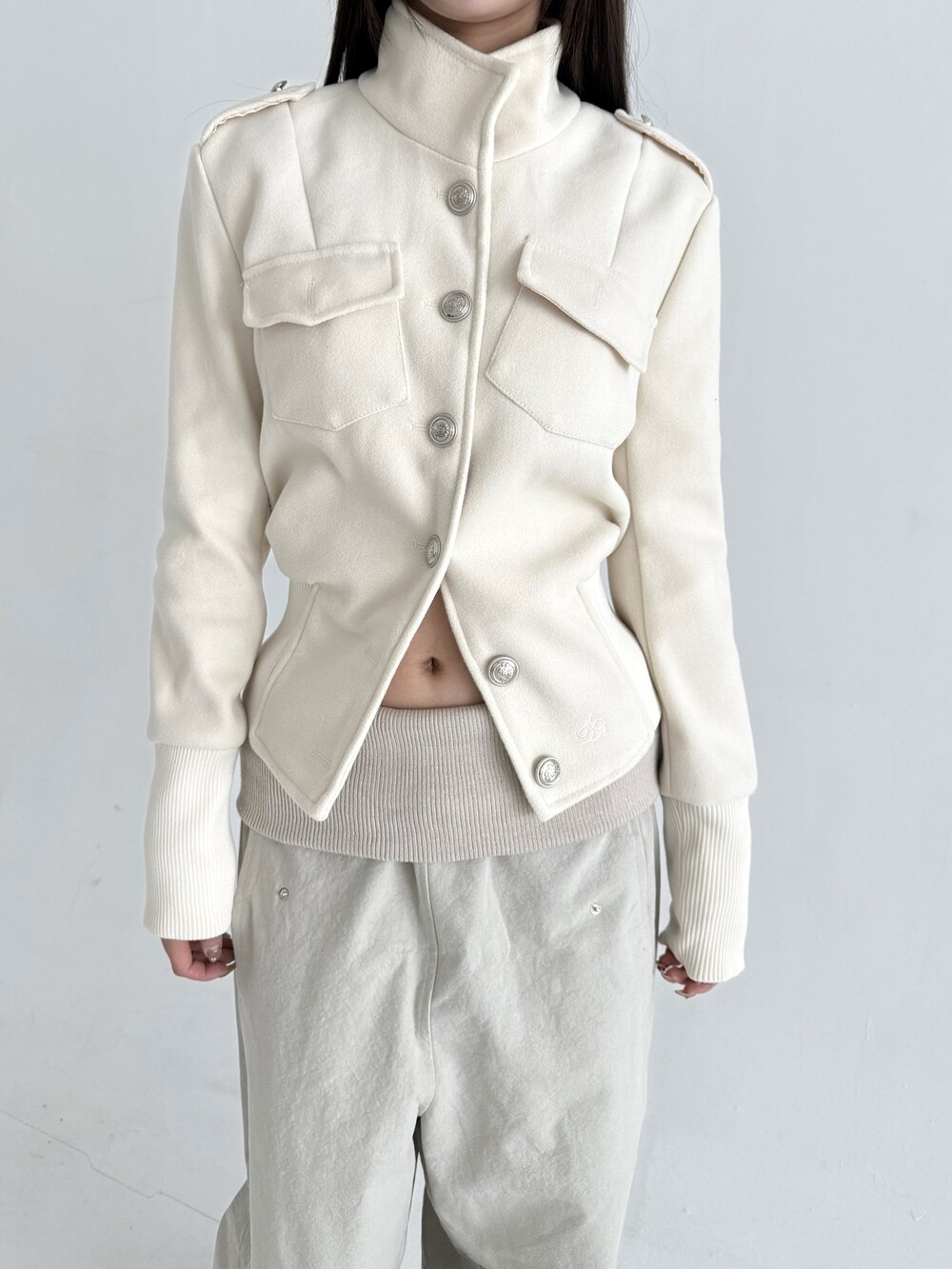 1540. Stand collar button jk (2color)