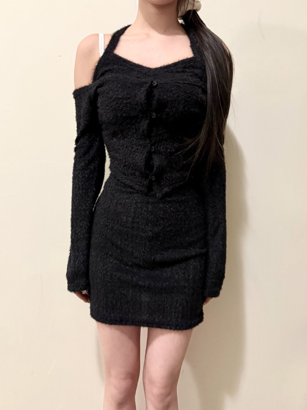 1665. Fur halter off button ops (2color)