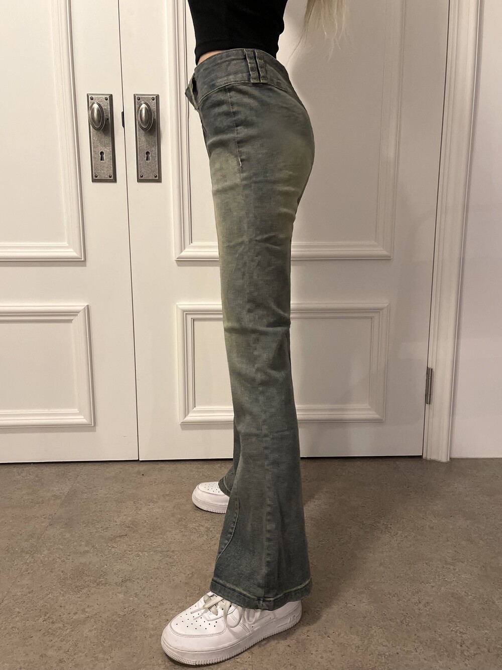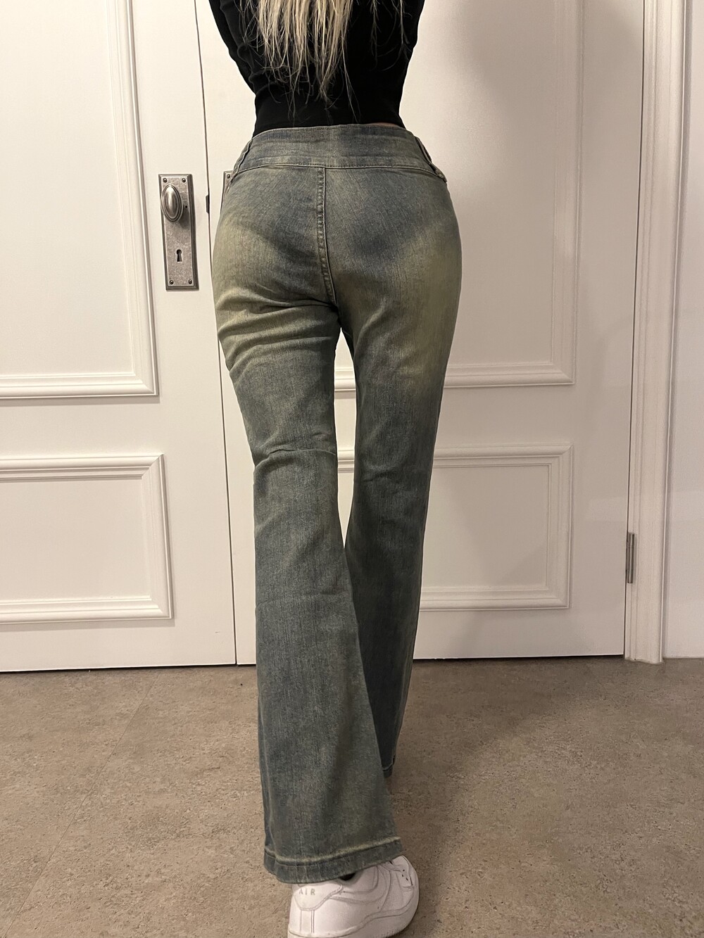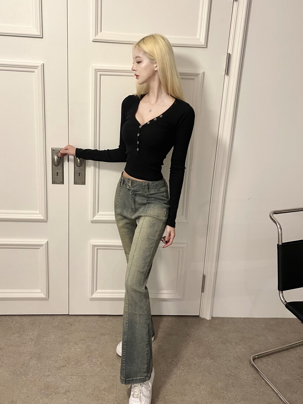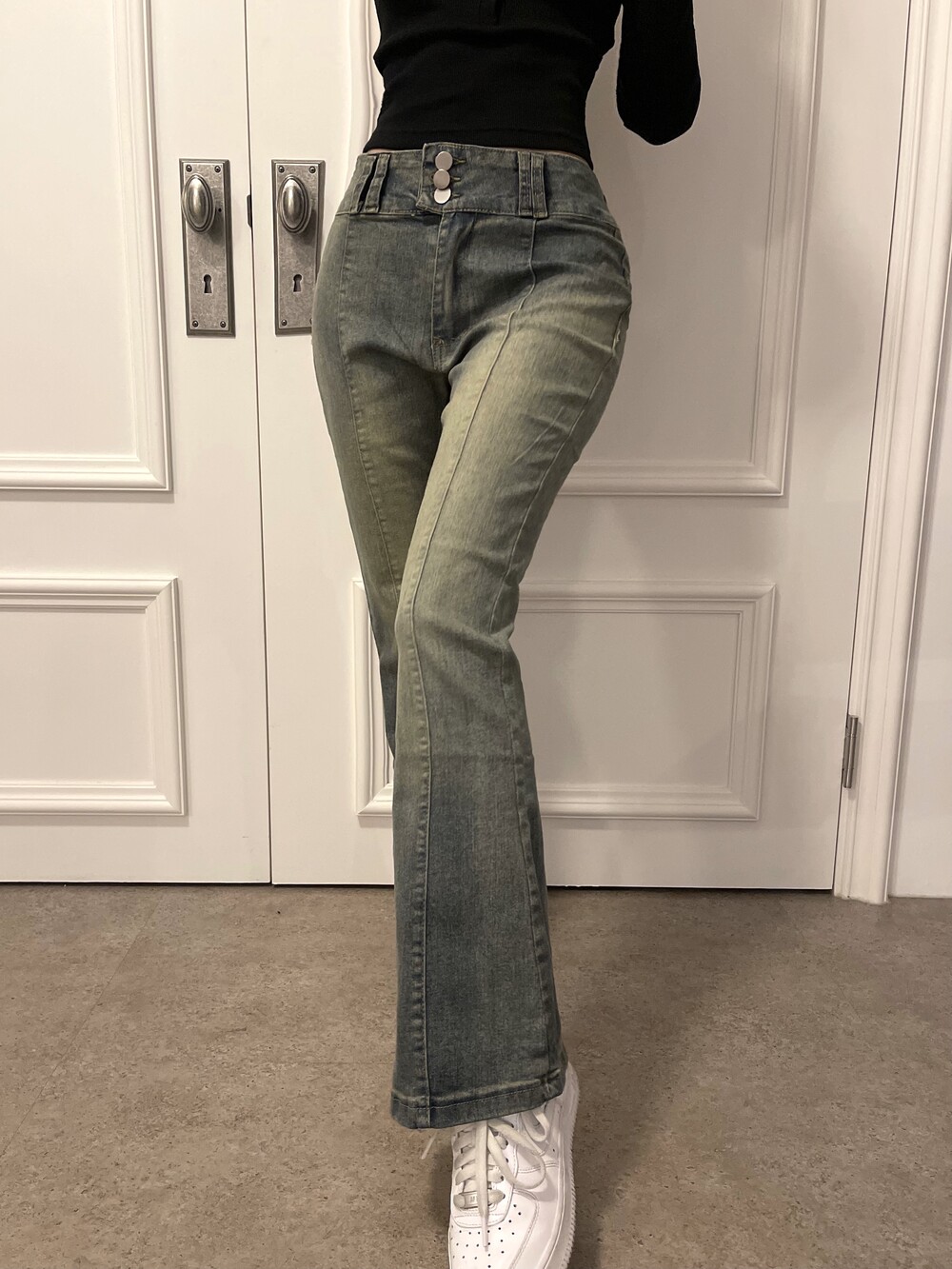 프론트 절개 워싱 부츠컷 데님 팬츠
