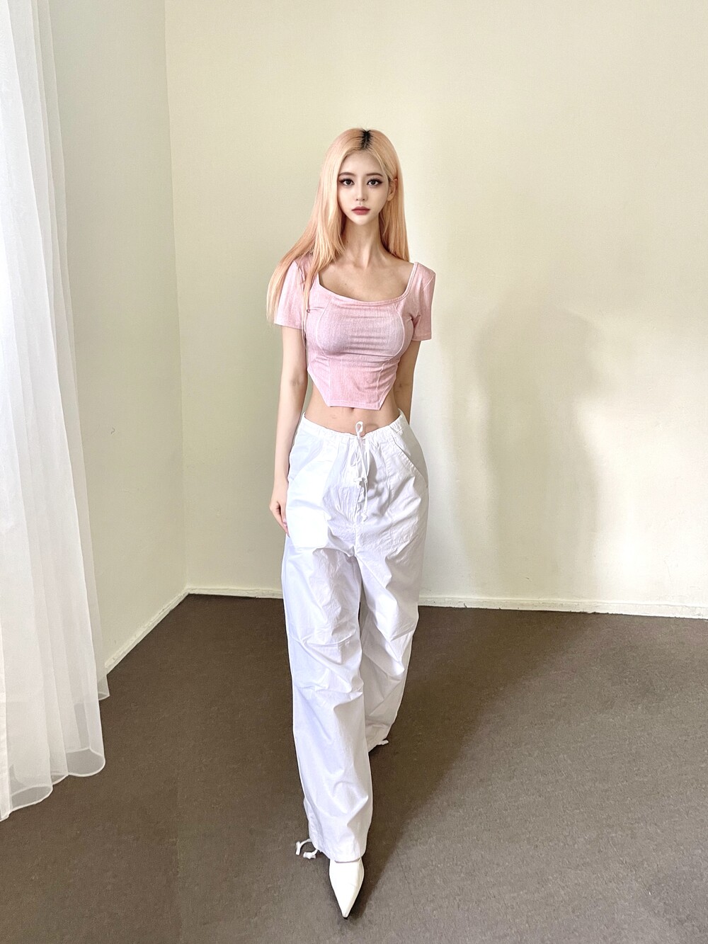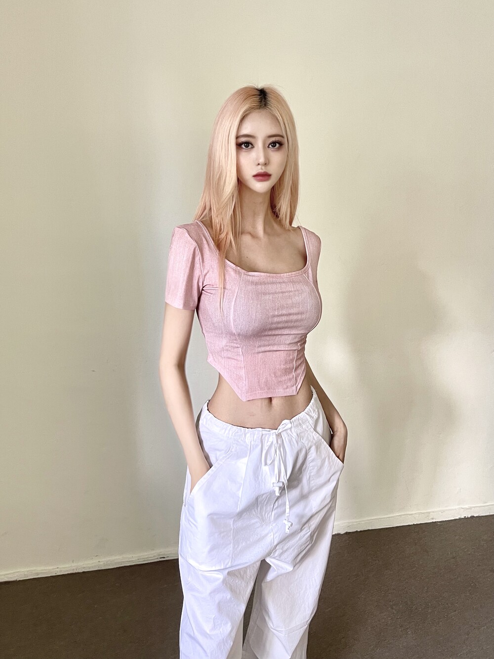 딥한 스퀘어넥으로 시원해보이는 실루엣