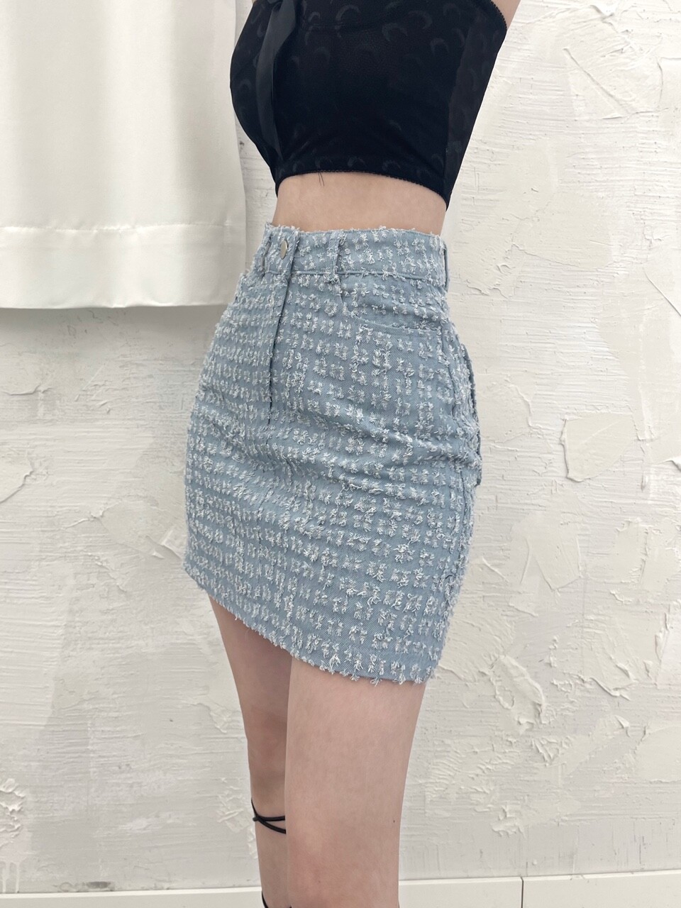 와플 데미지 패브릭에 불규칙한 워싱이 더해져
