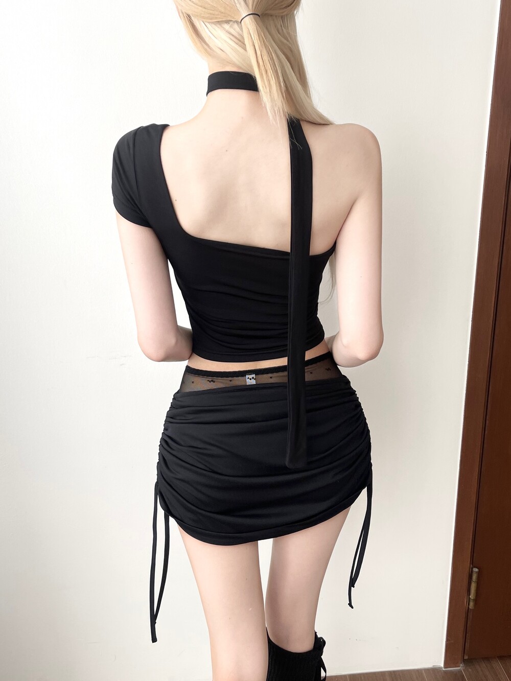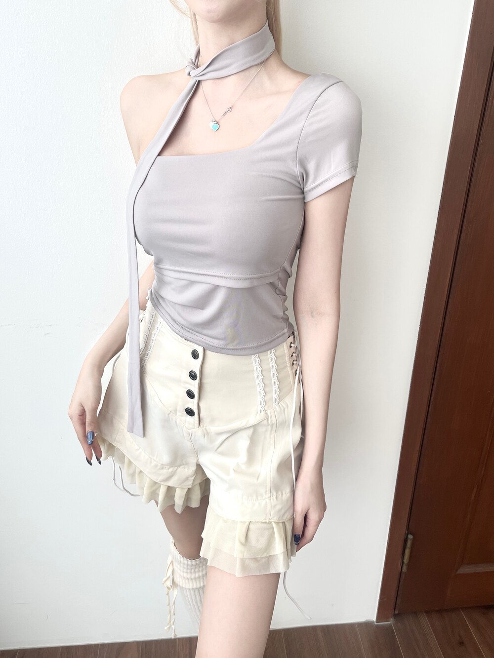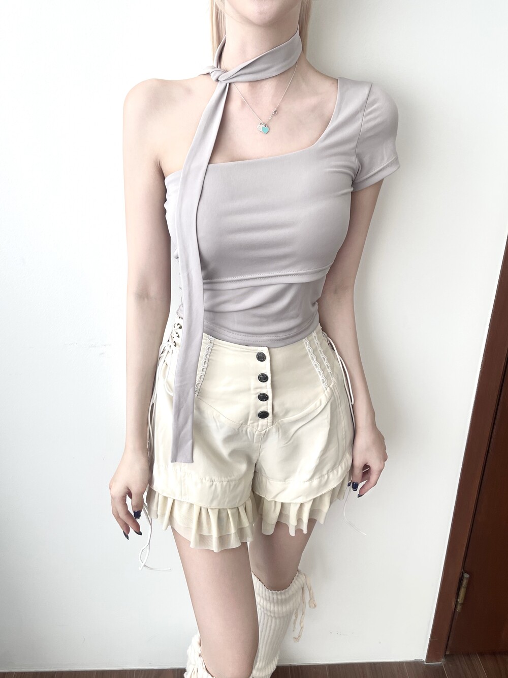 언발 원숄더 스퀘어 스판 스카프 티셔츠 탑 세트