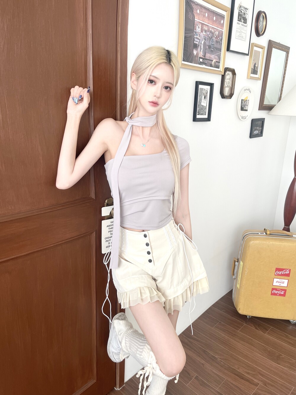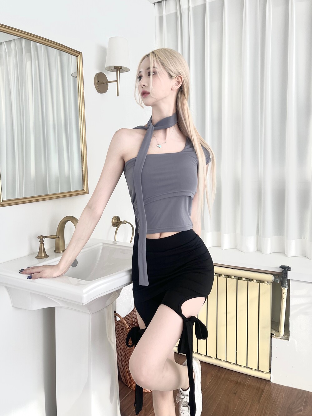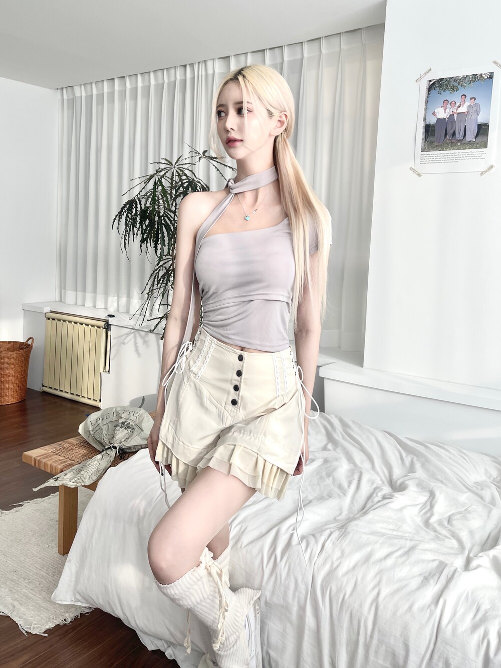 윗단 덧대어져있는 이중 원단으로 이너 비침 없이 착용