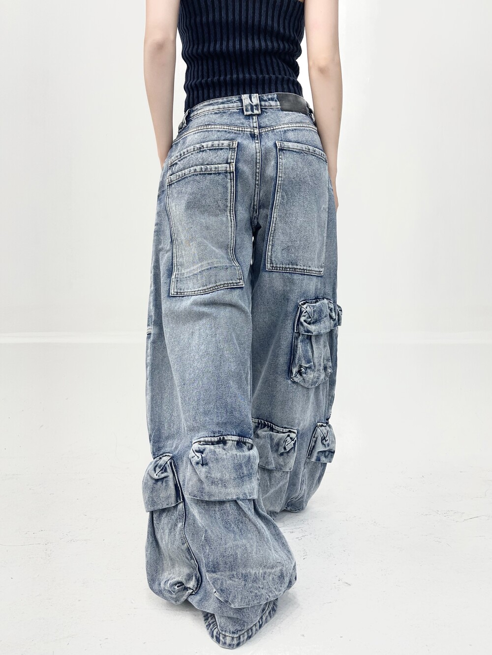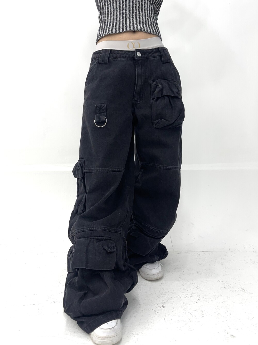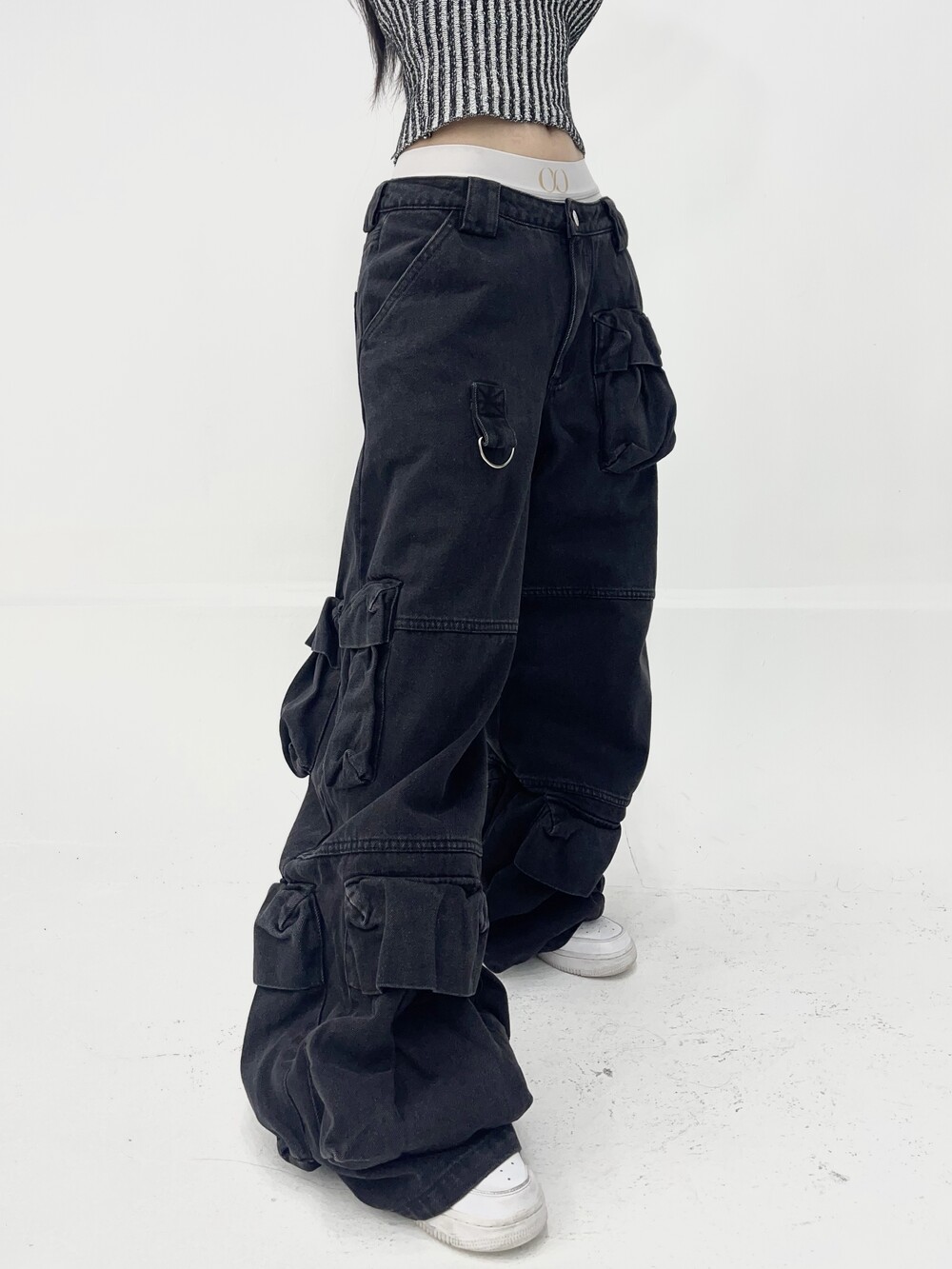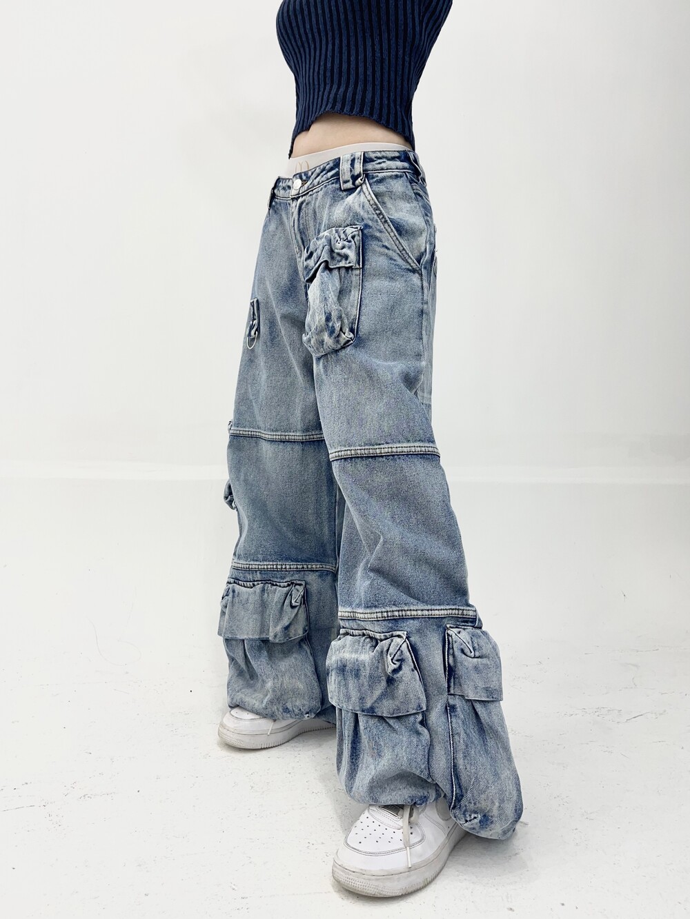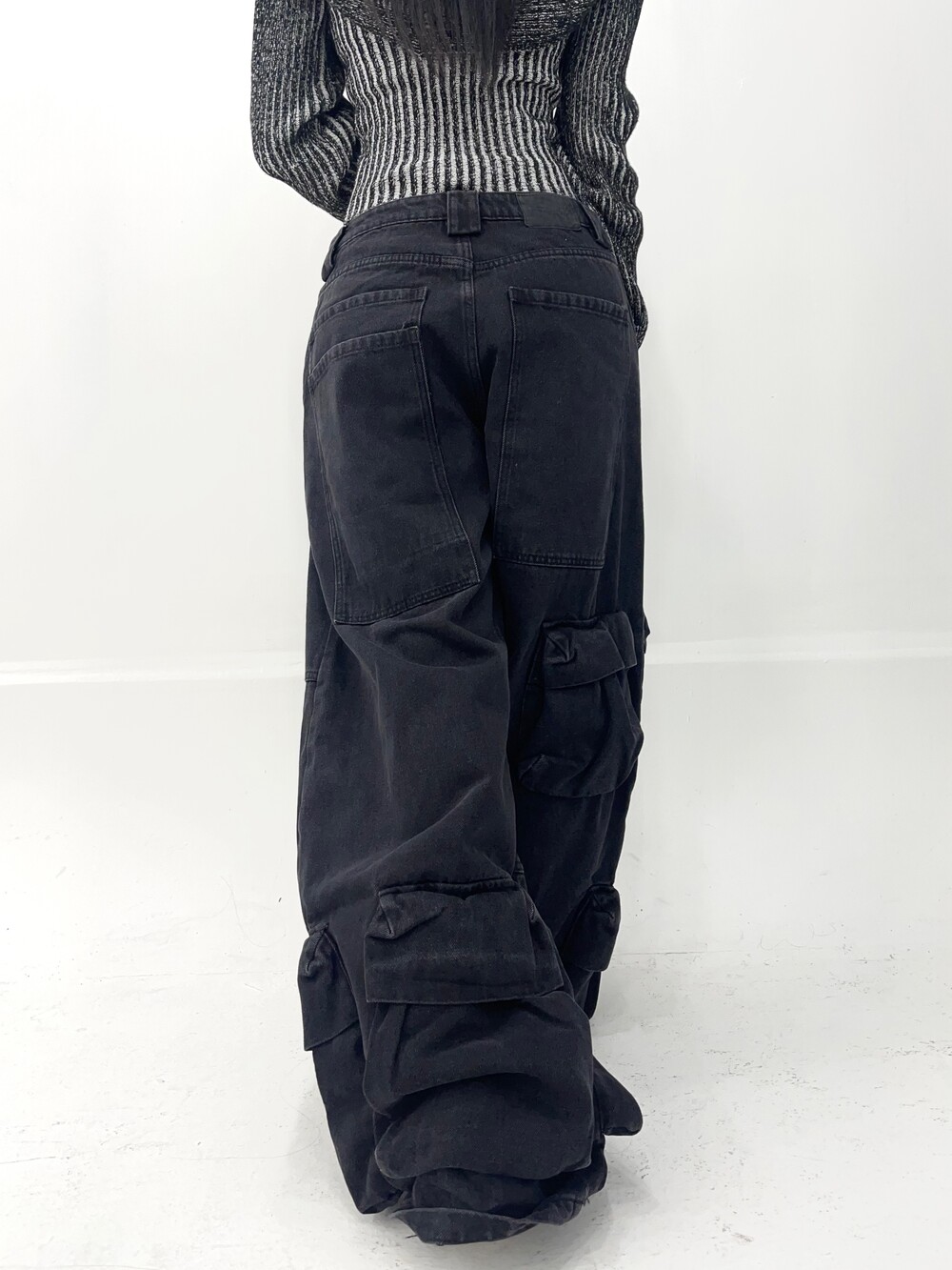 입체 포켓 멀티 카고 데님 와이드 팬츠