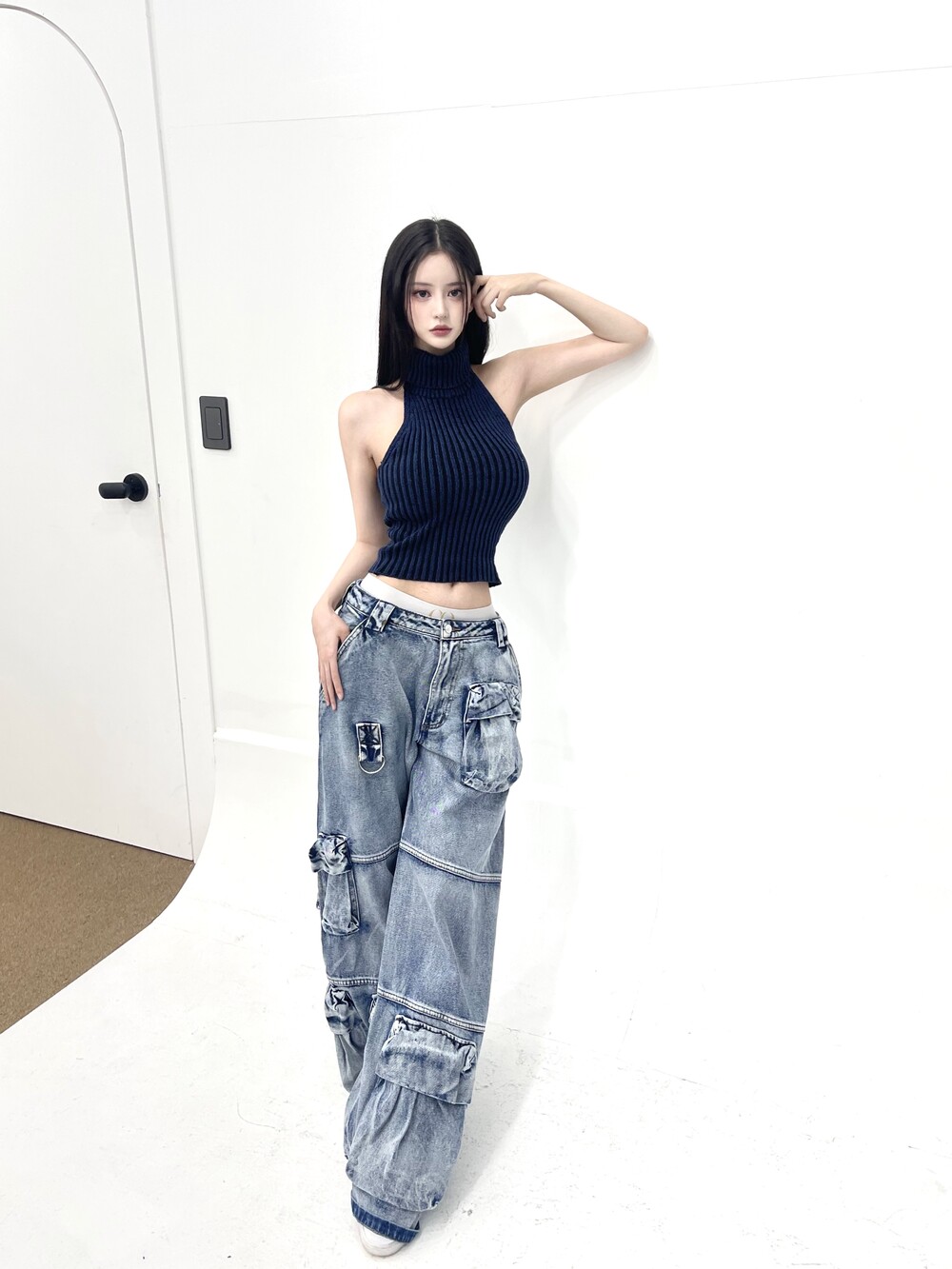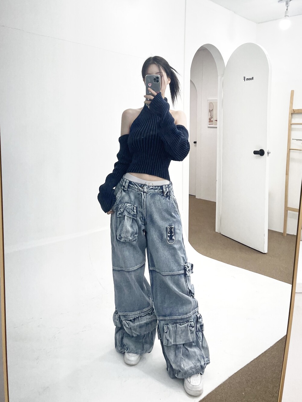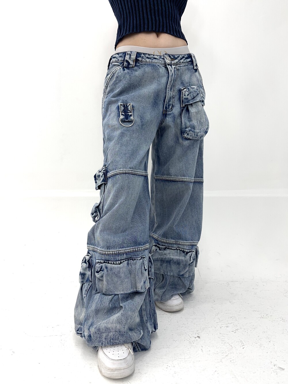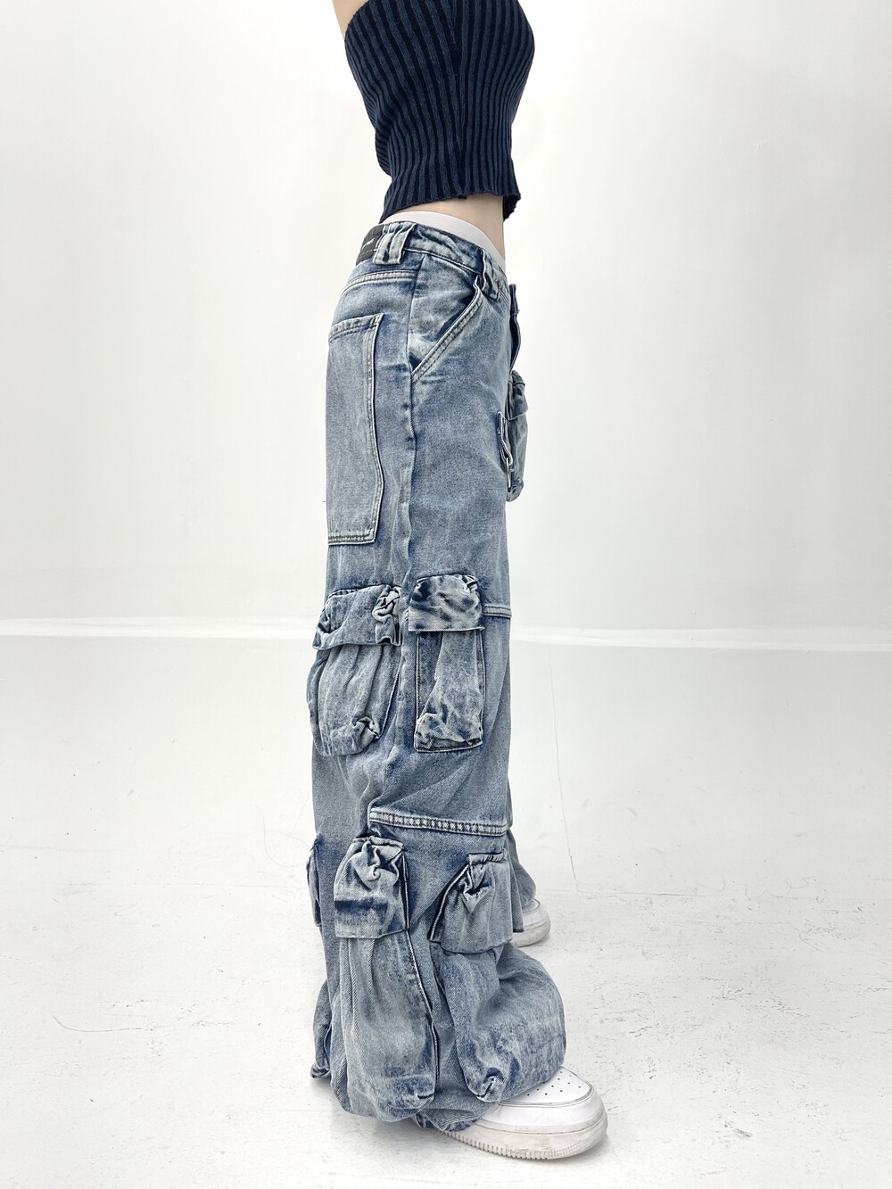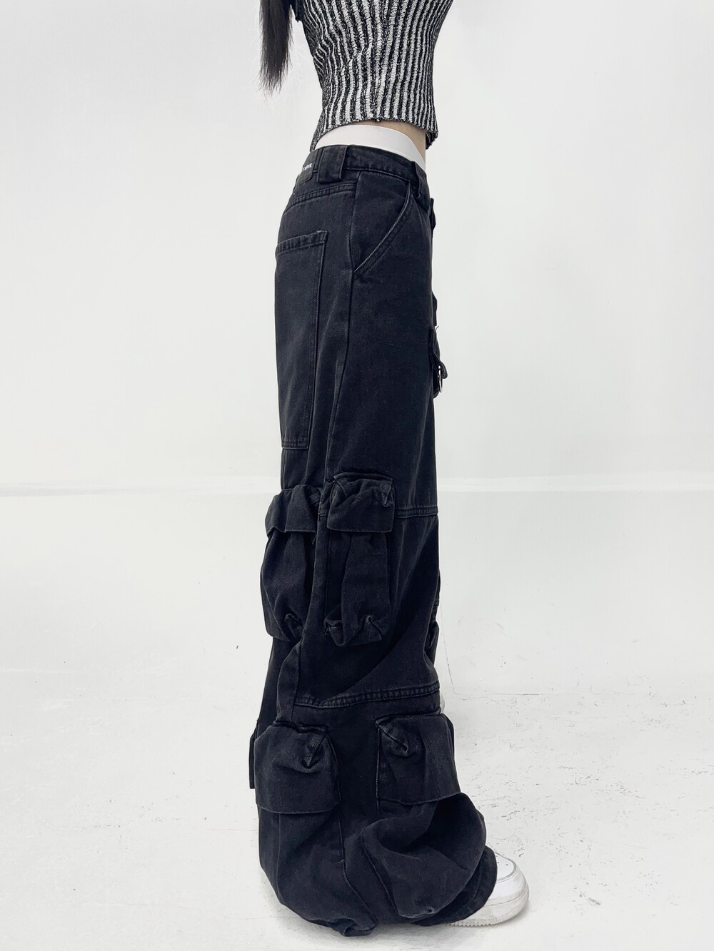 입체 포켓 멀티 카고 데님 와이드 팬츠