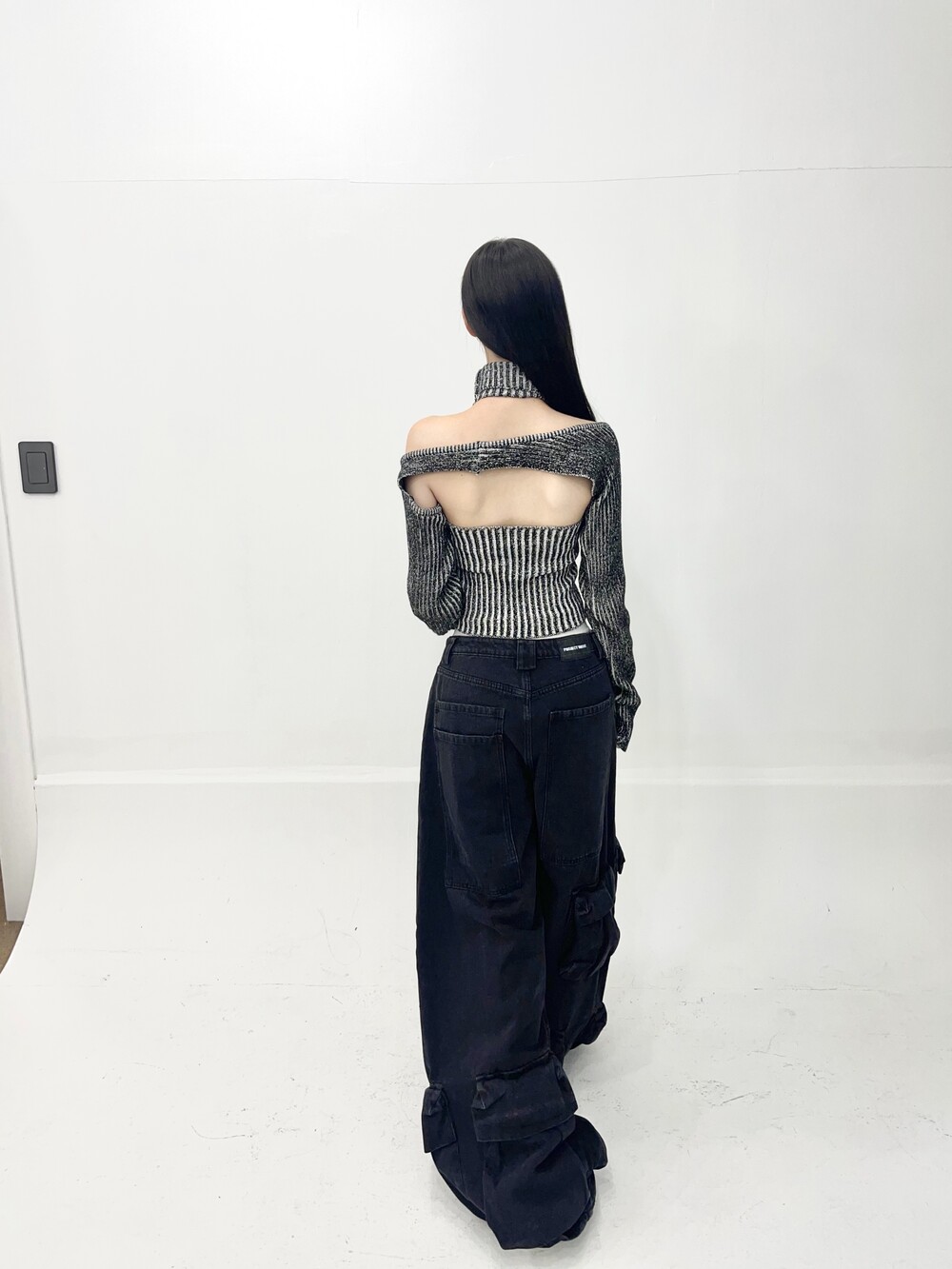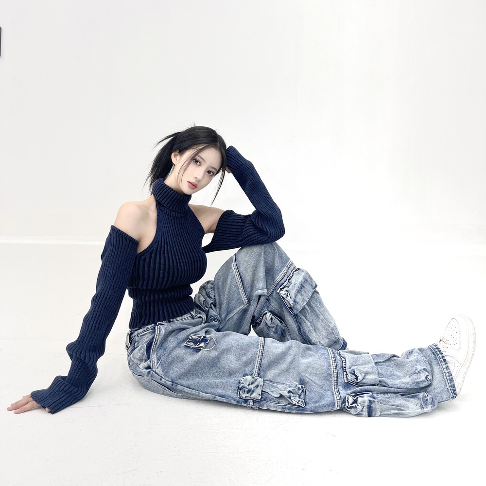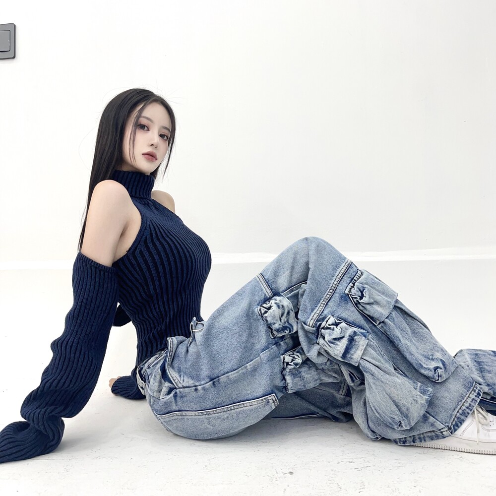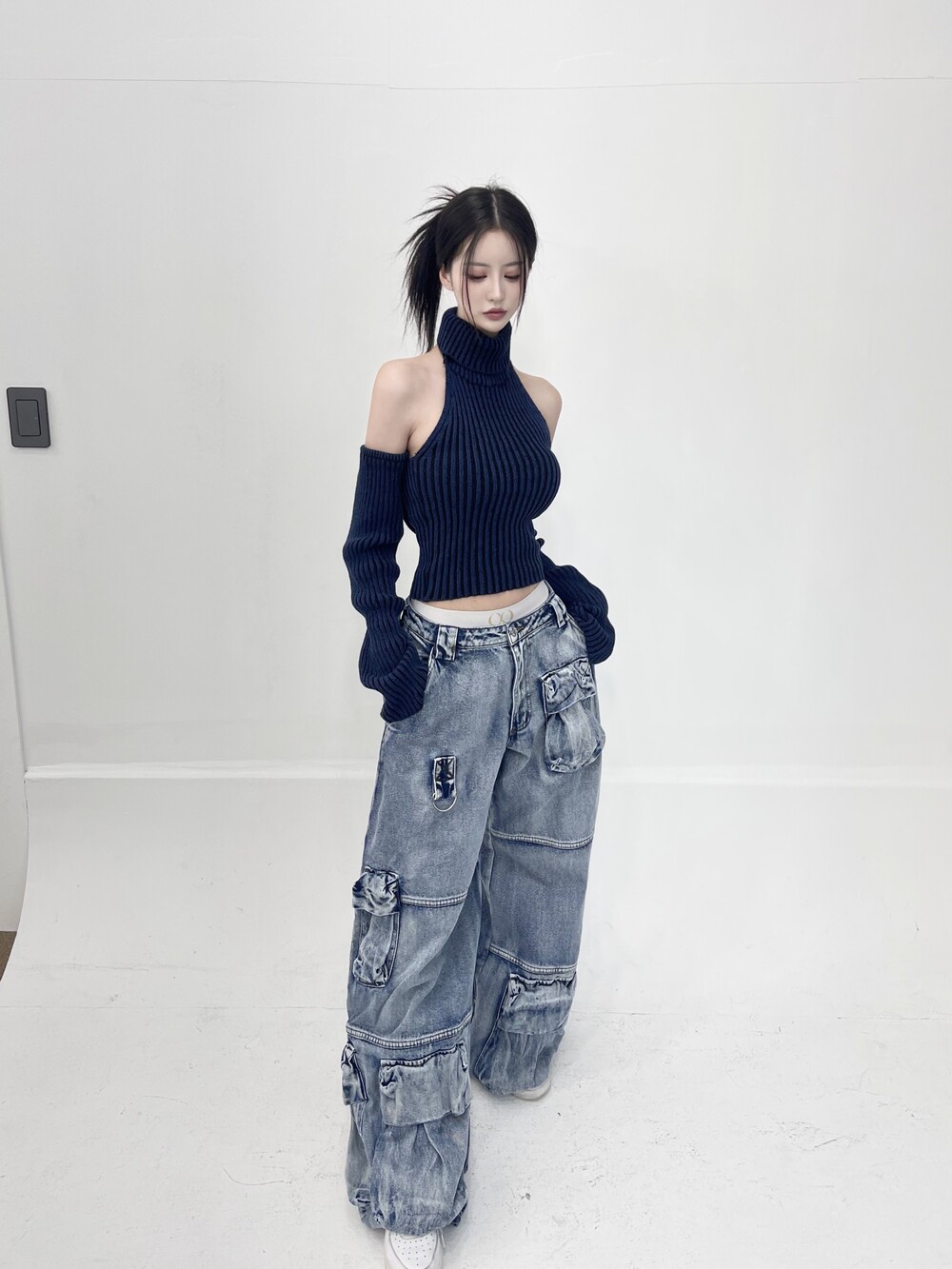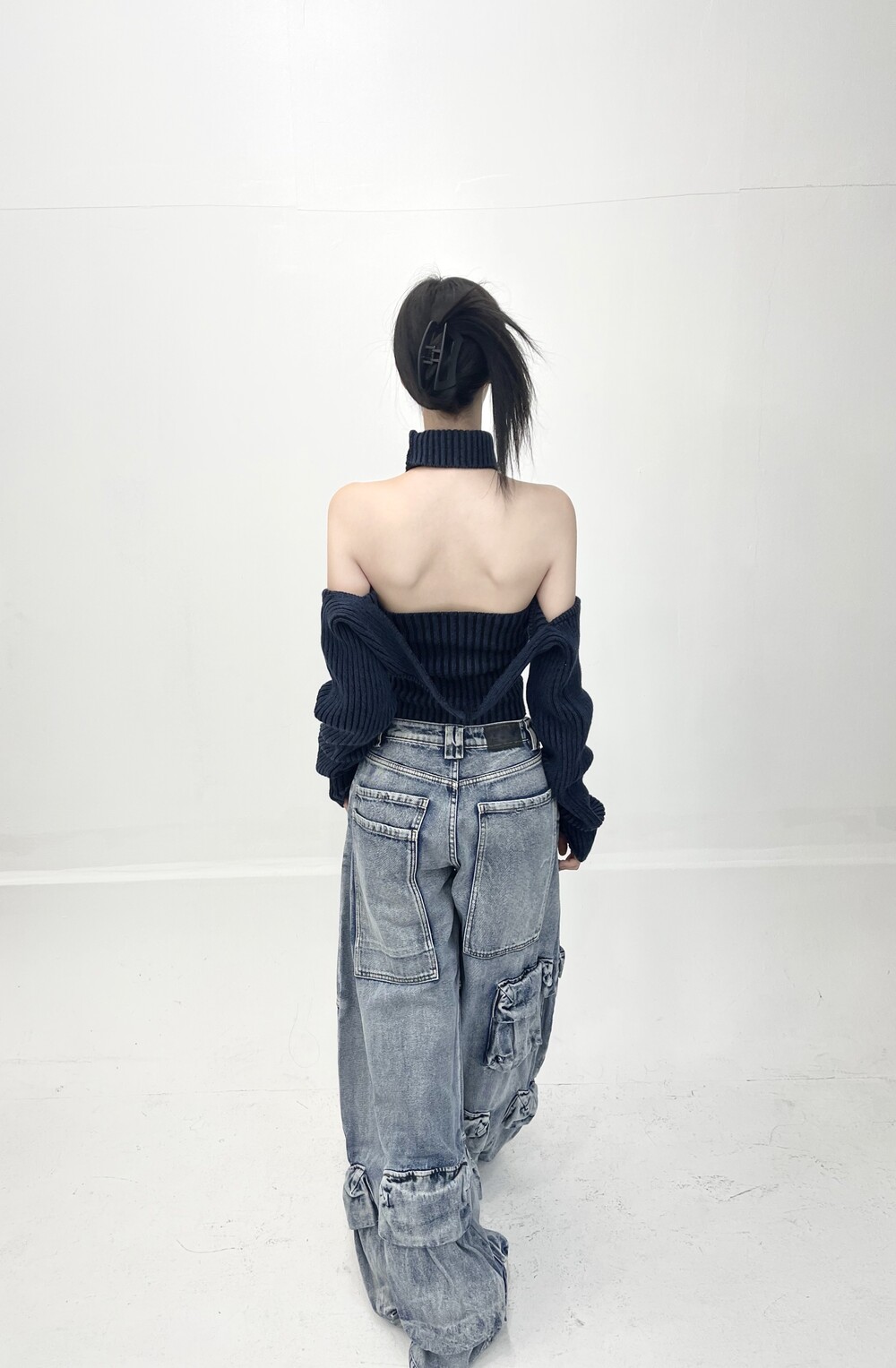 입체 포켓 멀티 카고 데님 와이드 팬츠