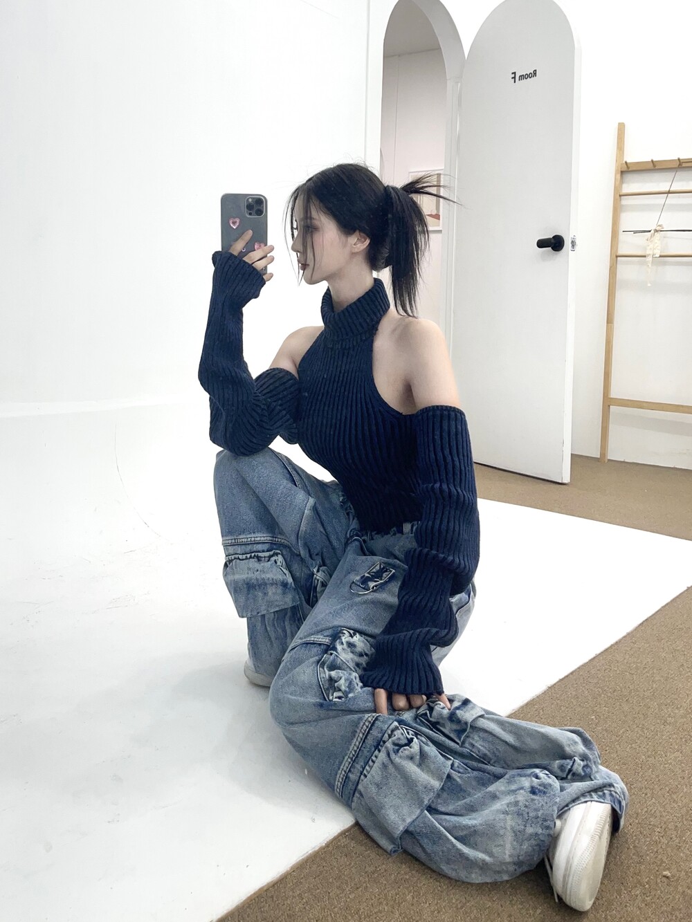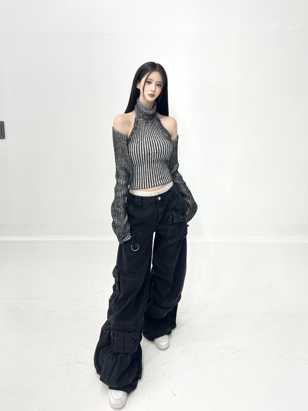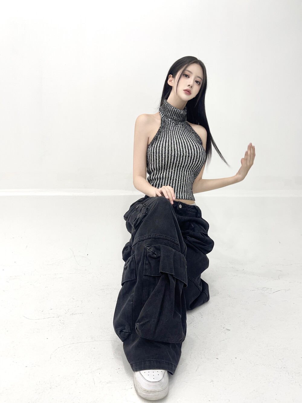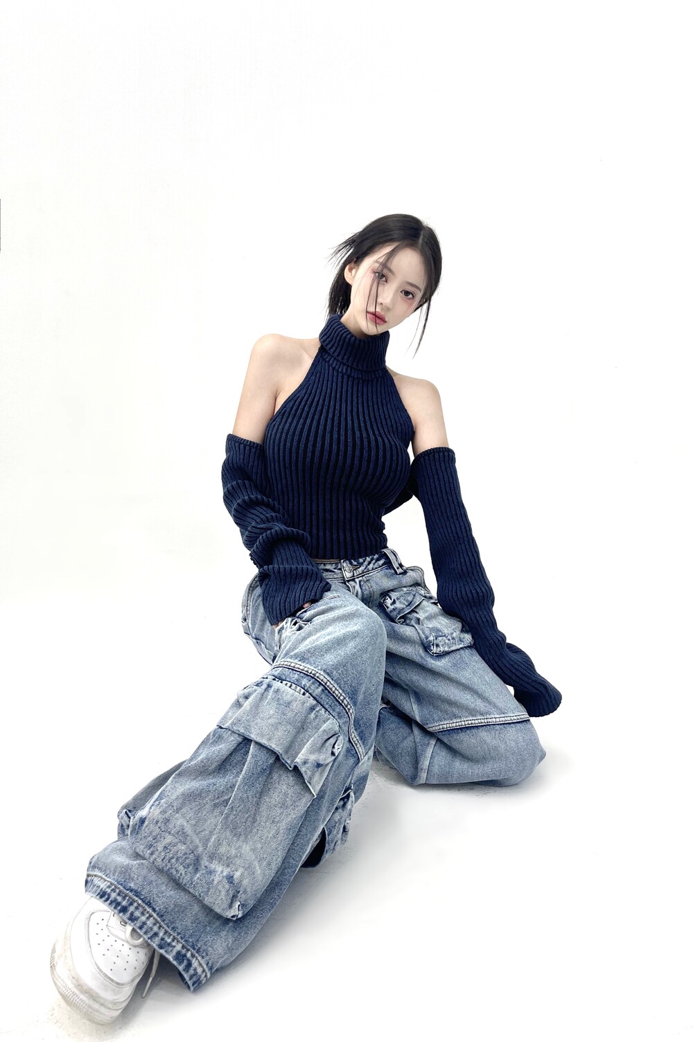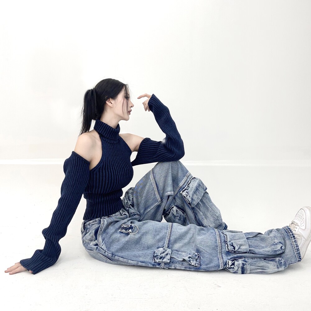 입체 포켓 멀티 카고 데님 와이드 팬츠