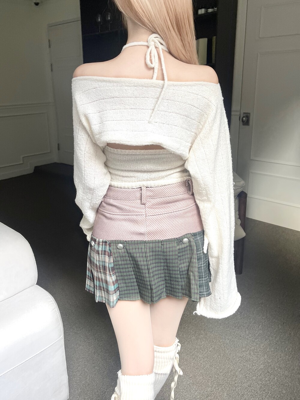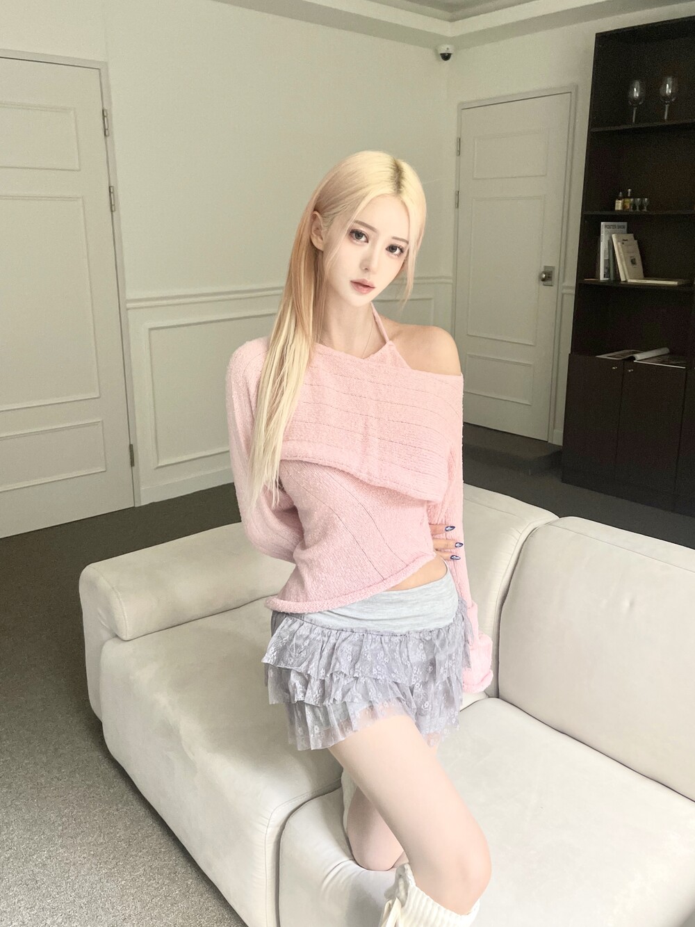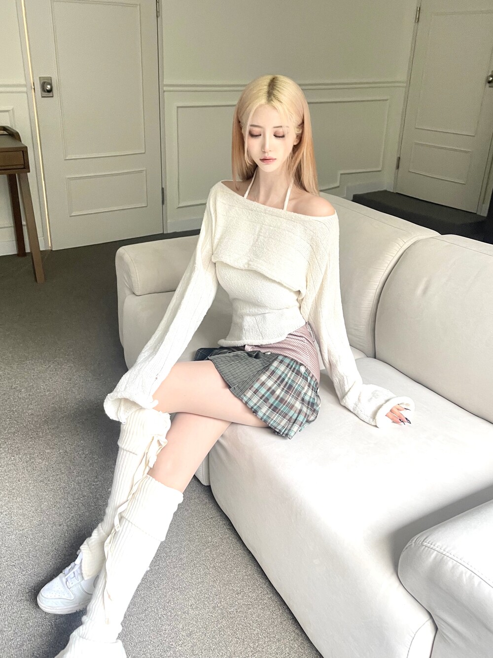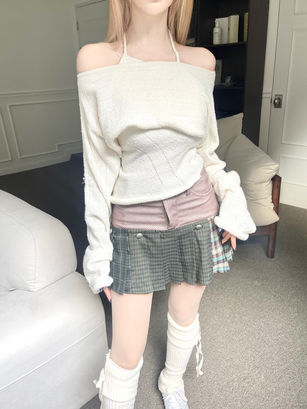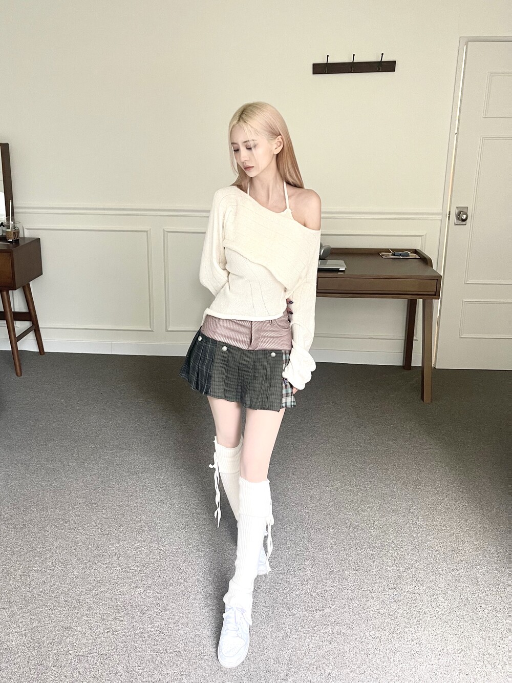 언발 홀터넥과 오프숄더 니트 세트 구성으로 이지한 착용