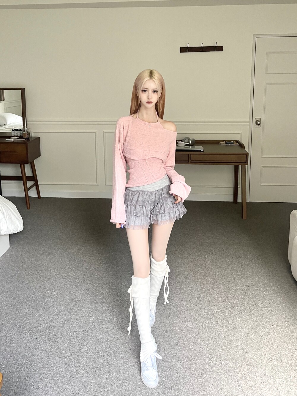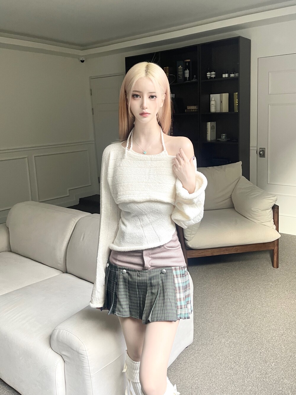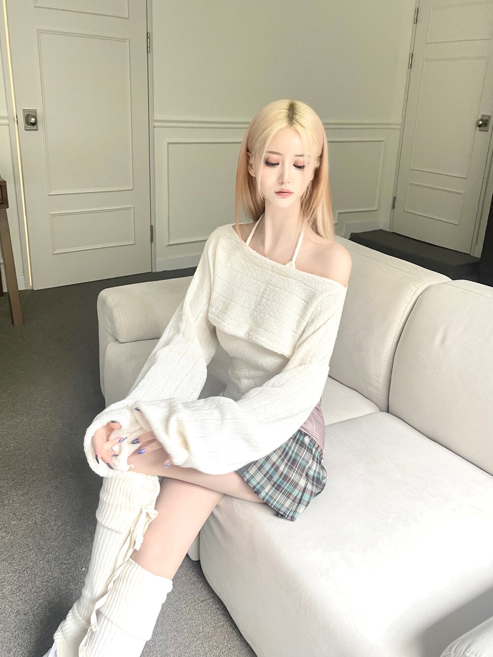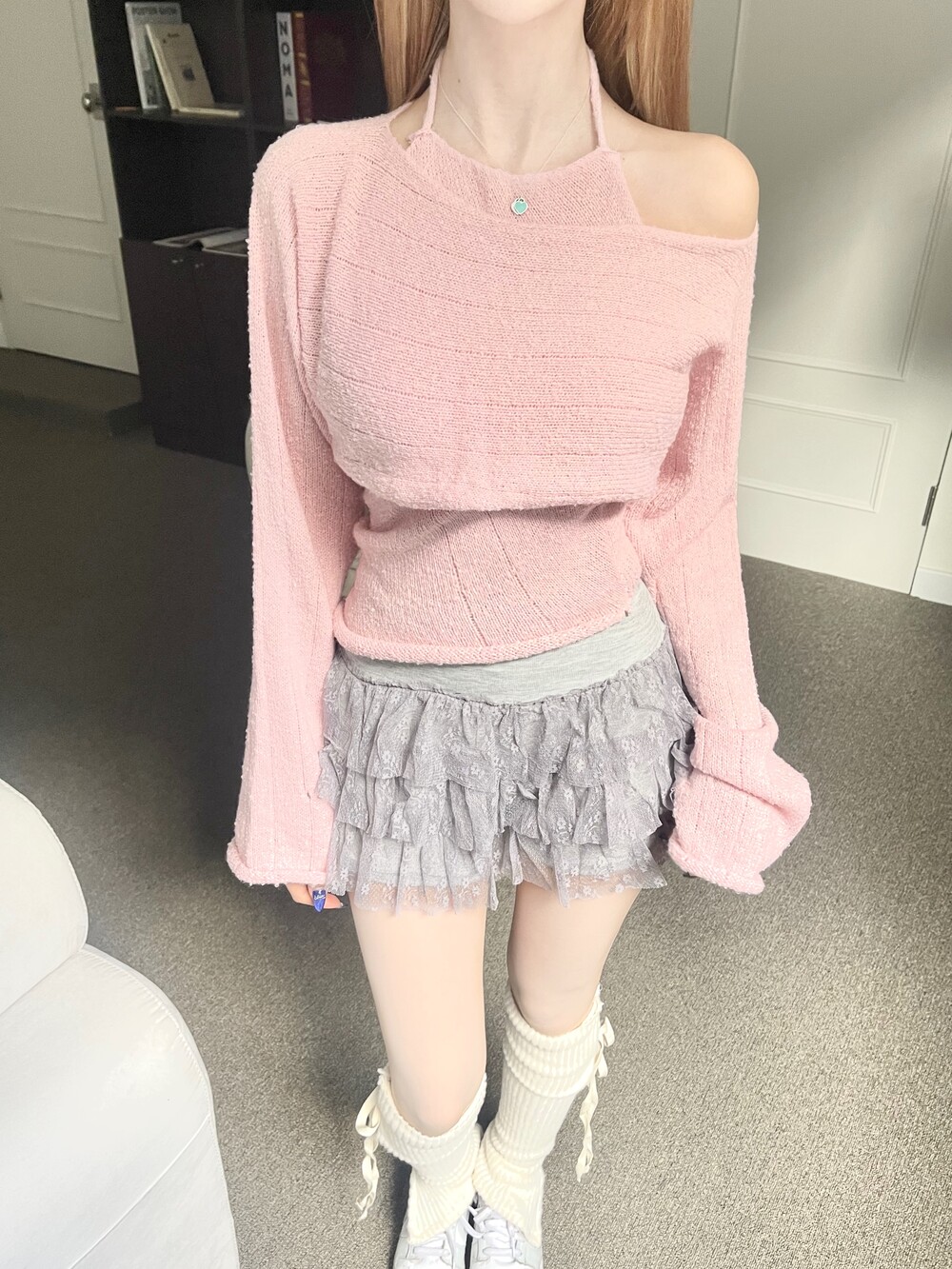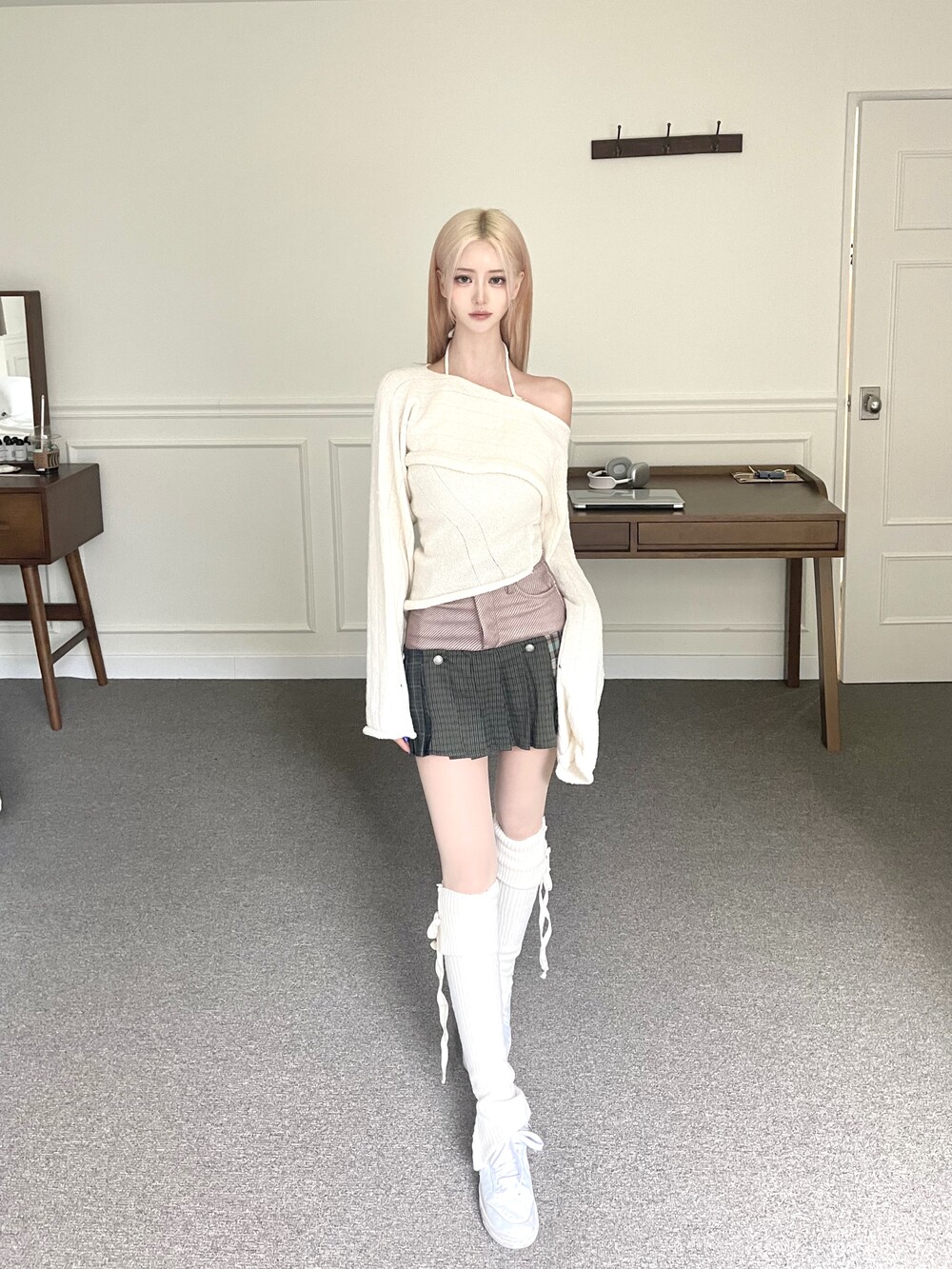 언발 홀터넥과 오프숄더 니트 세트 구성으로 이지한 착용
