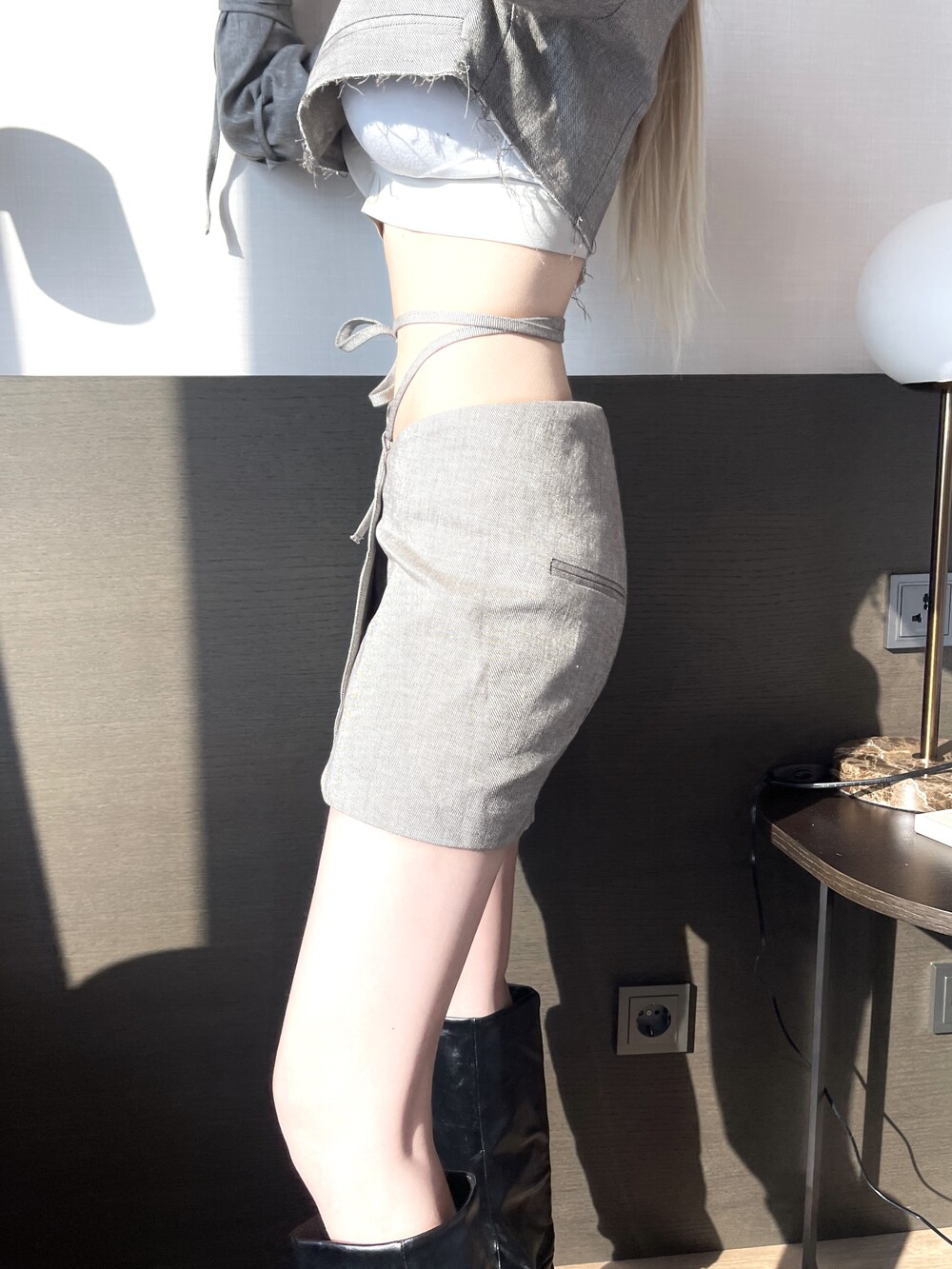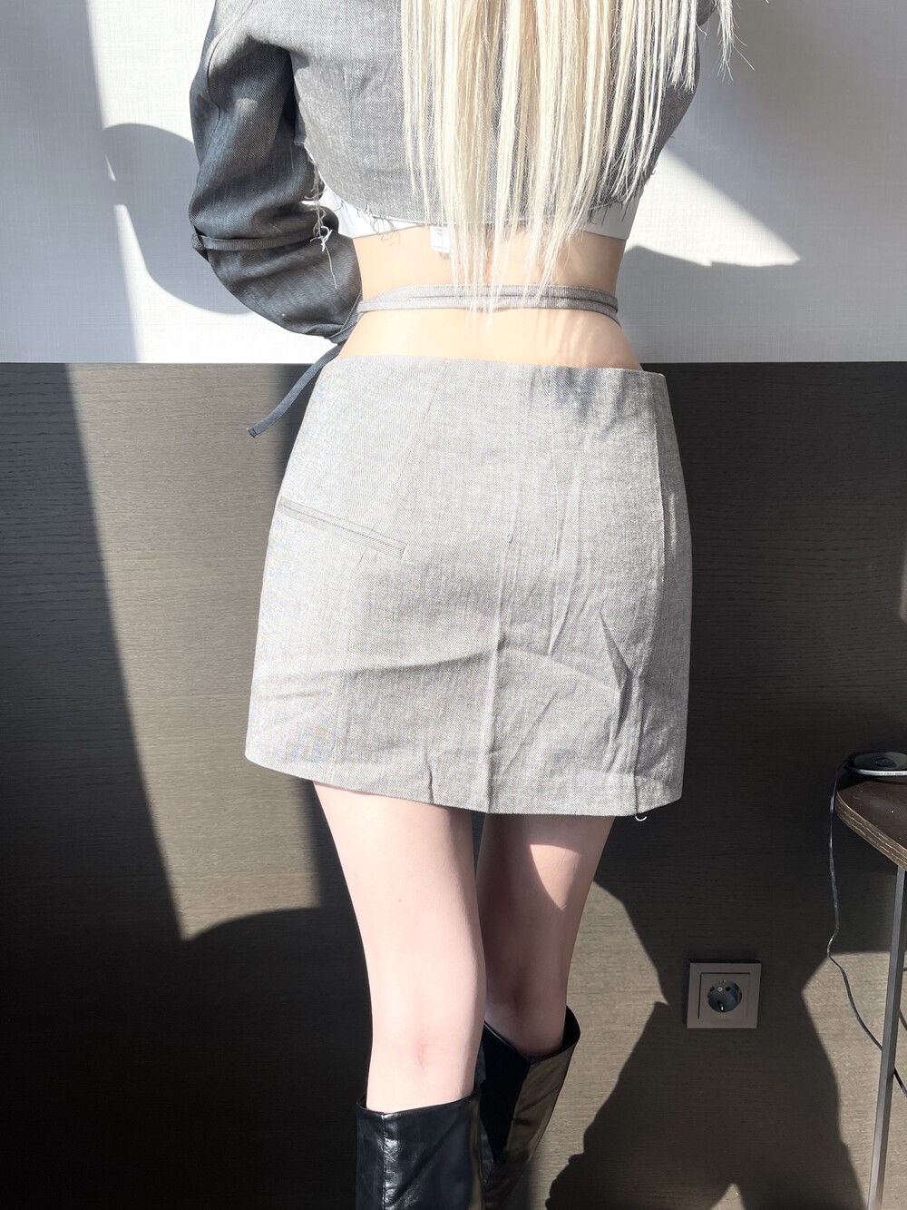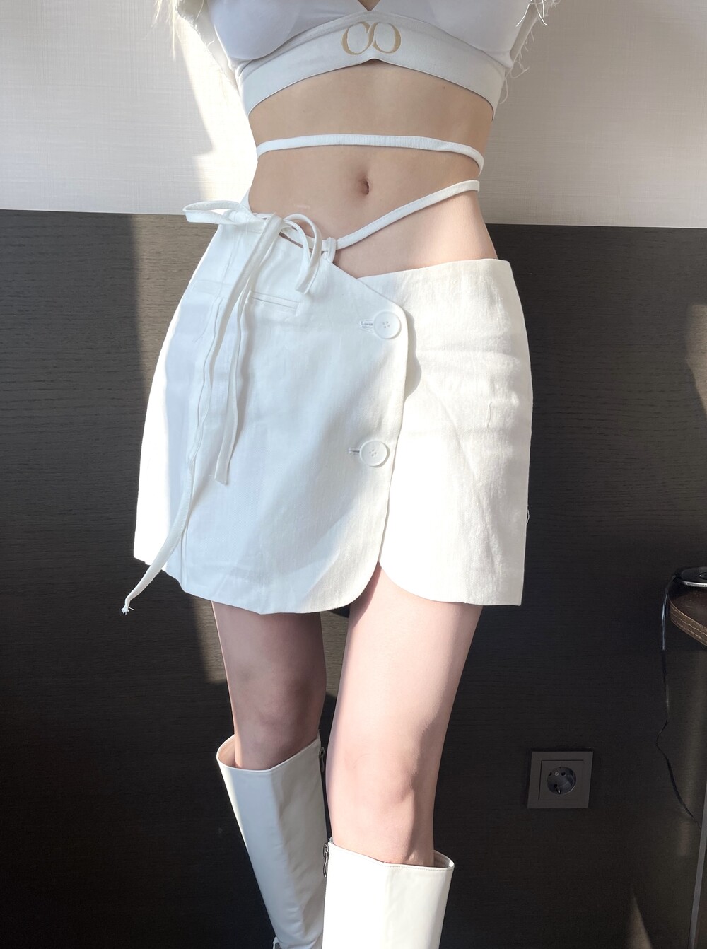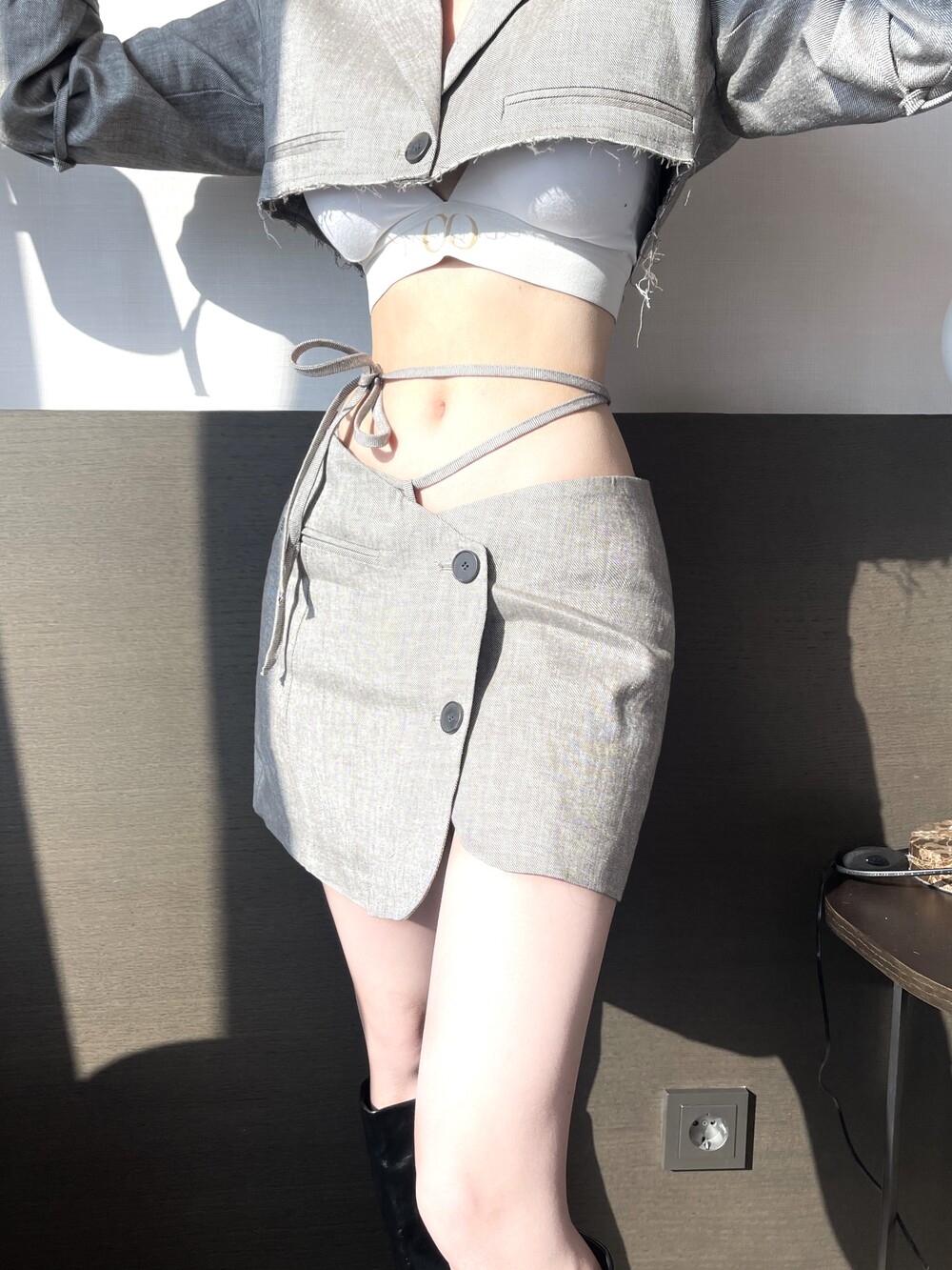 로프 스트랩 버튼 미니 스커트