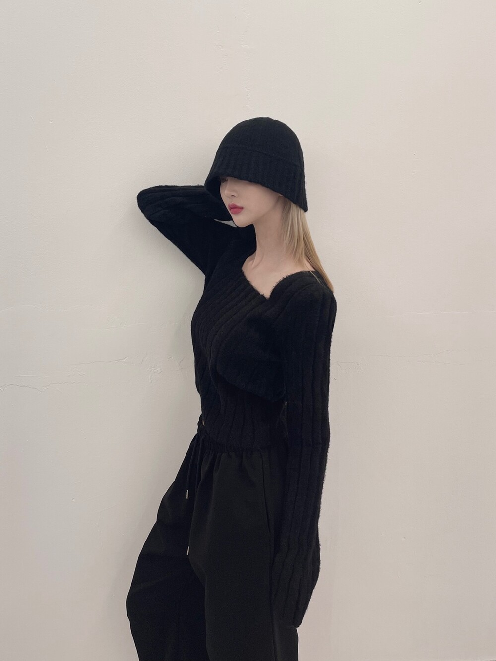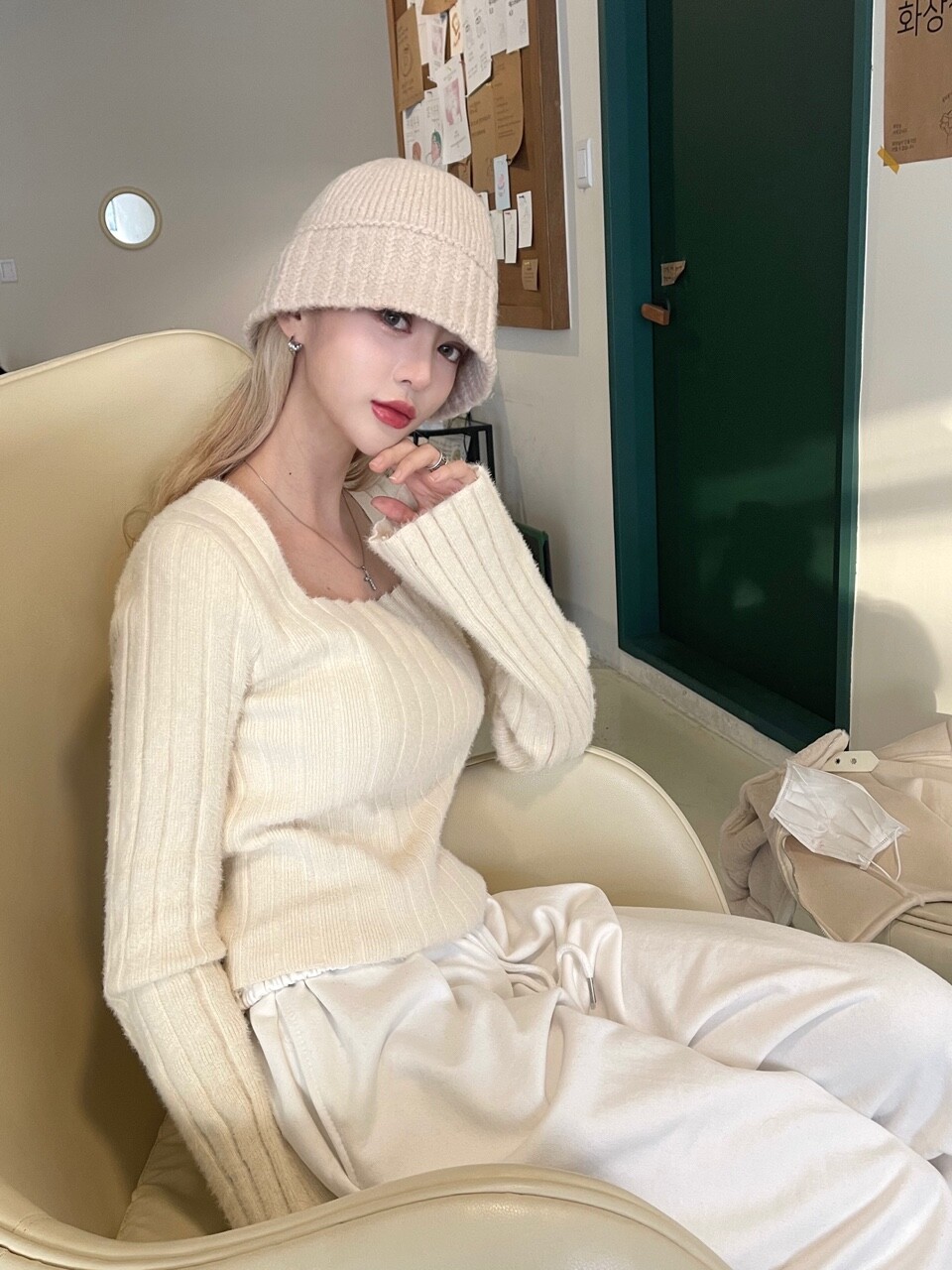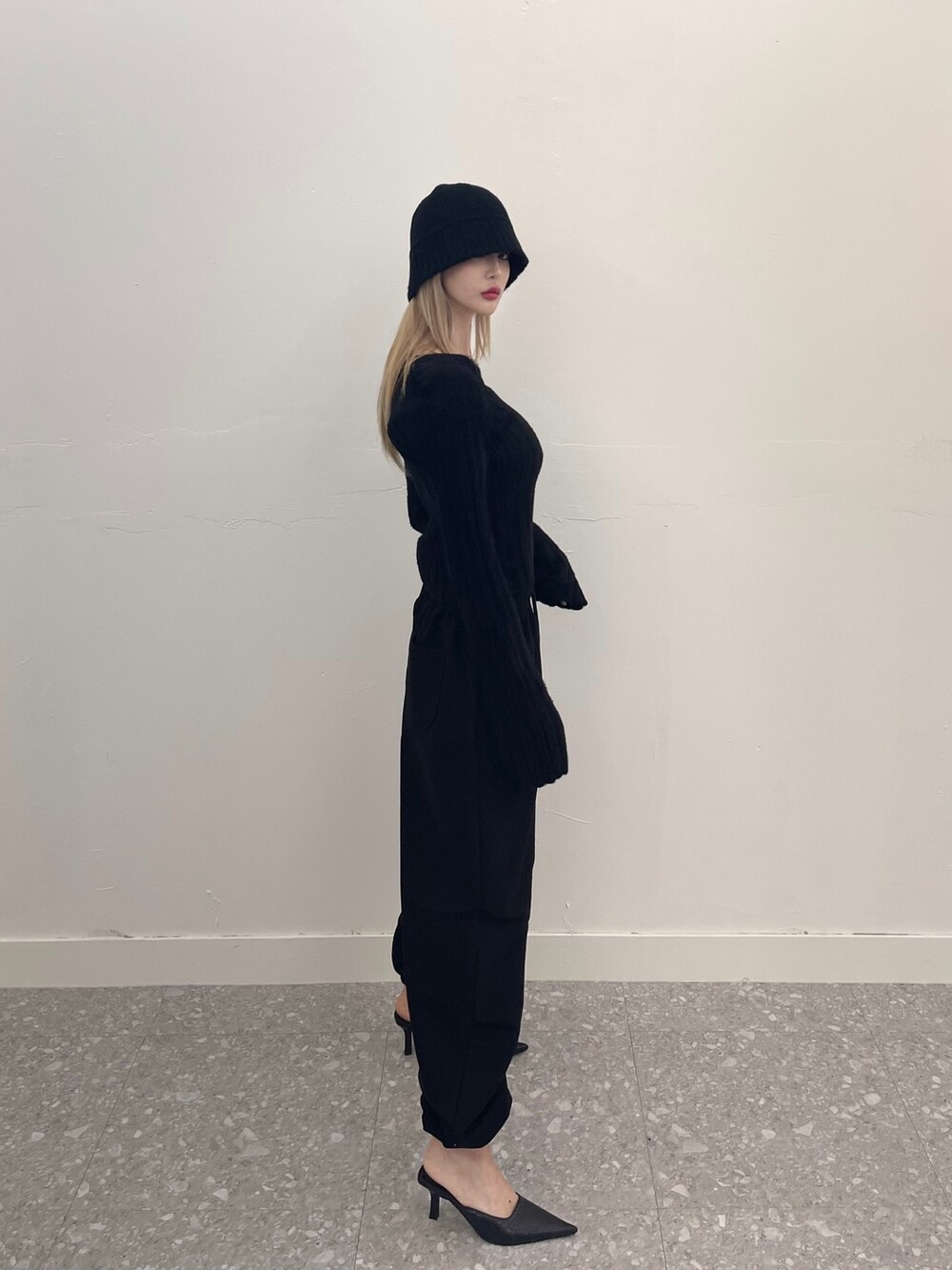 아방한 핏감/롱한 소매로 상체를 여리여리하게 연출(체형보완효과)