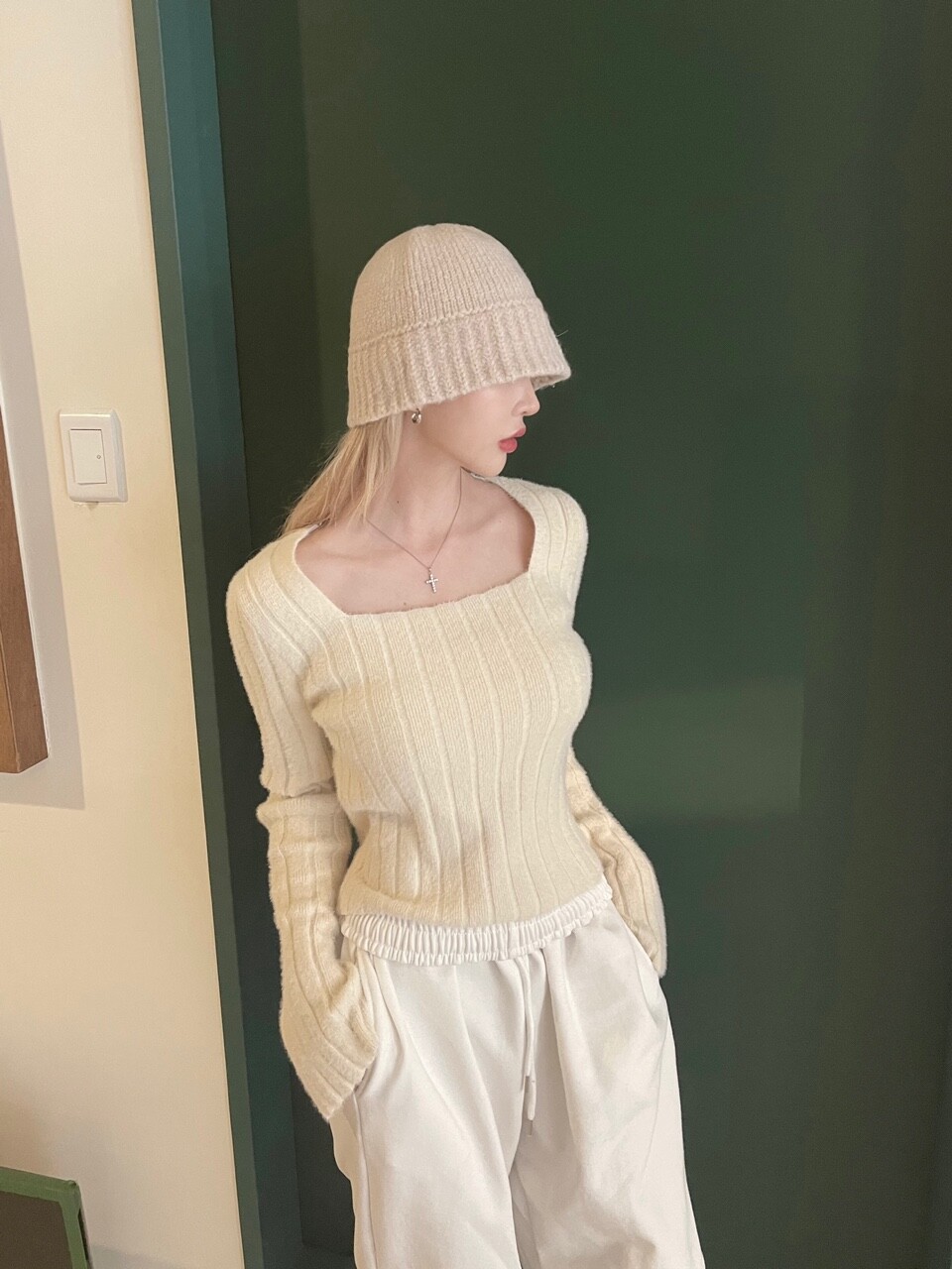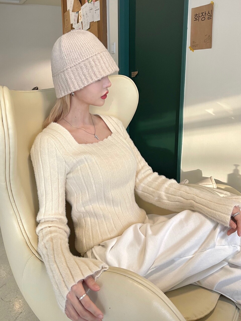 딥 와이드 스퀘어넥으로 트렌디하면서도 넥라인이 시원해보이는 효과