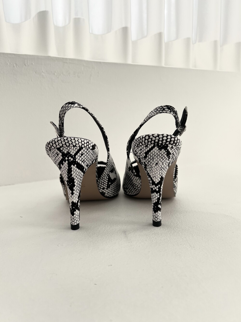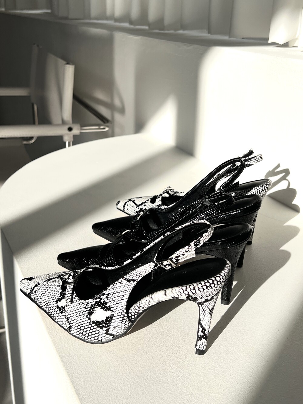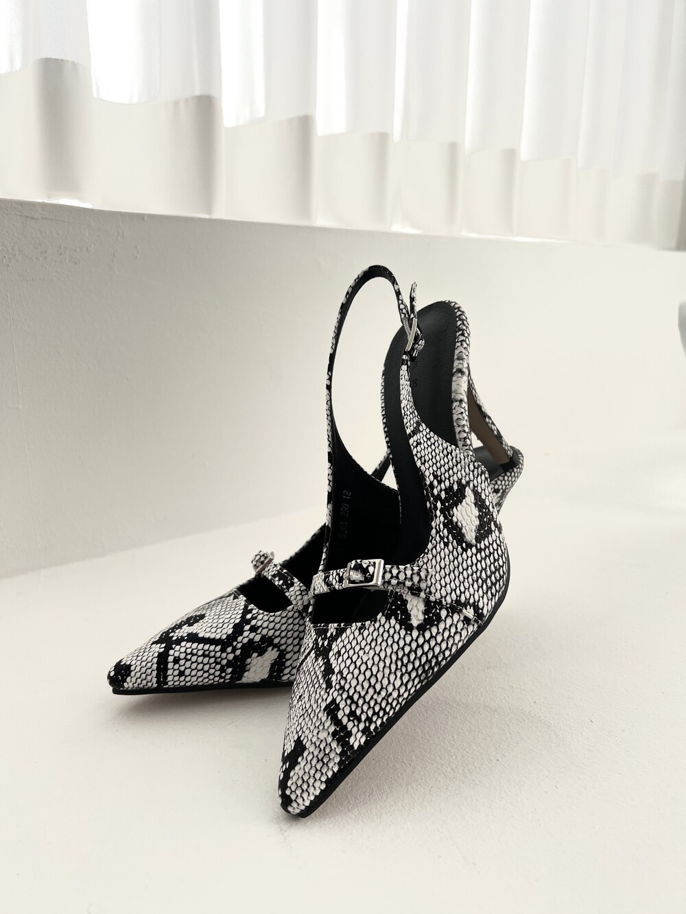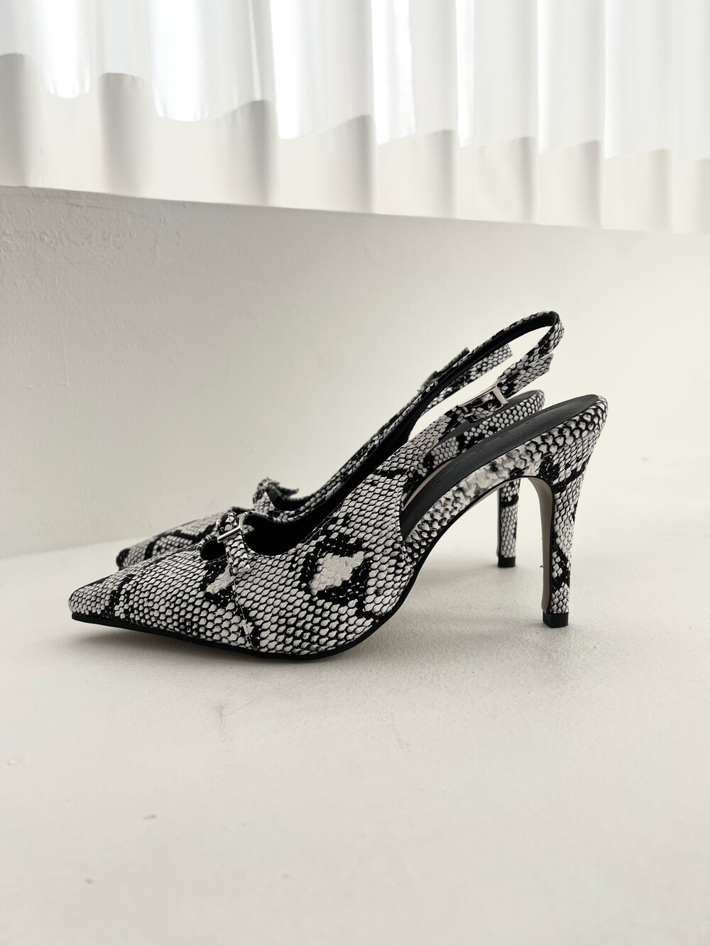 실버 버클 파이톤 스틸레토 슬링백 힐