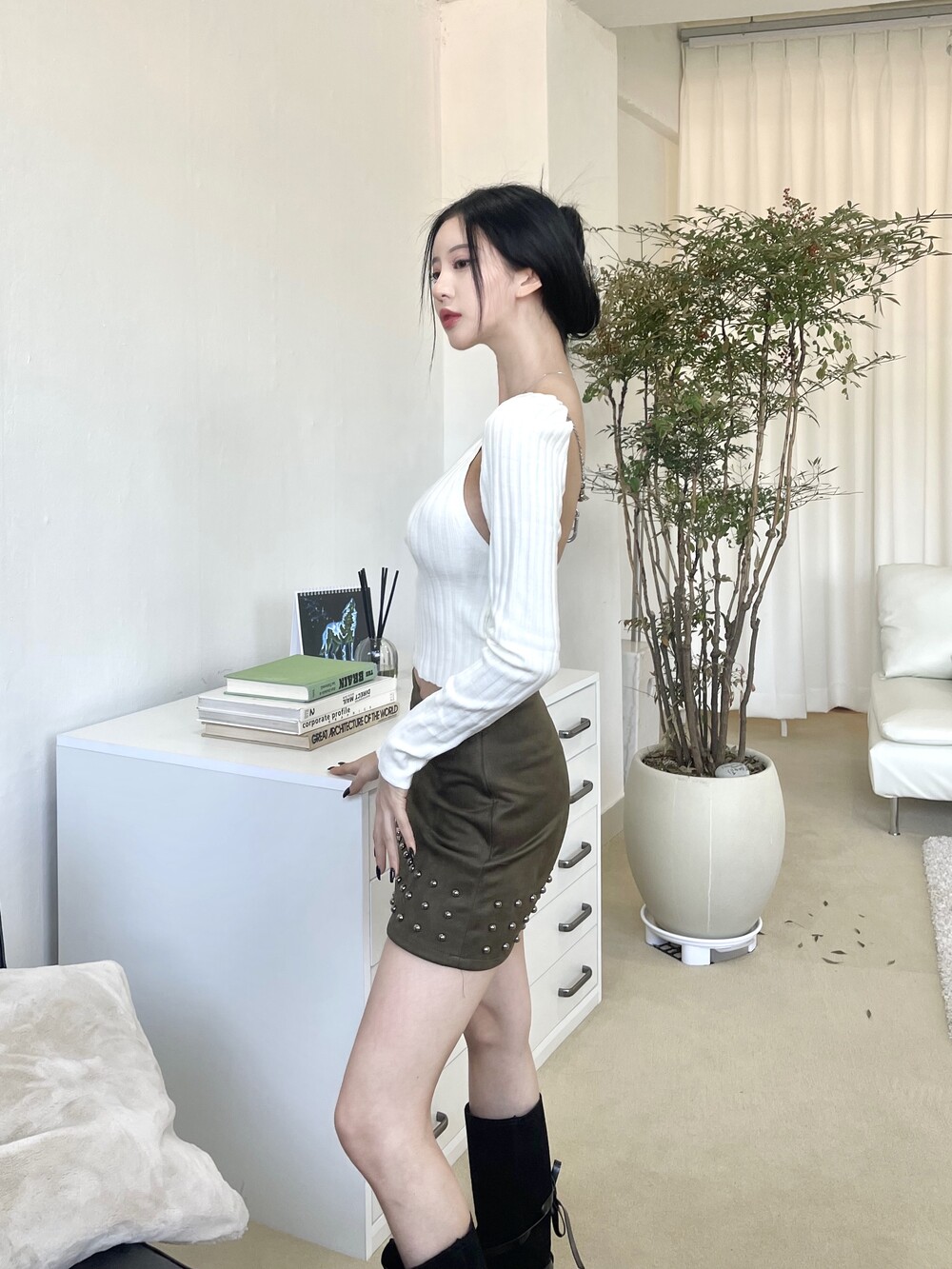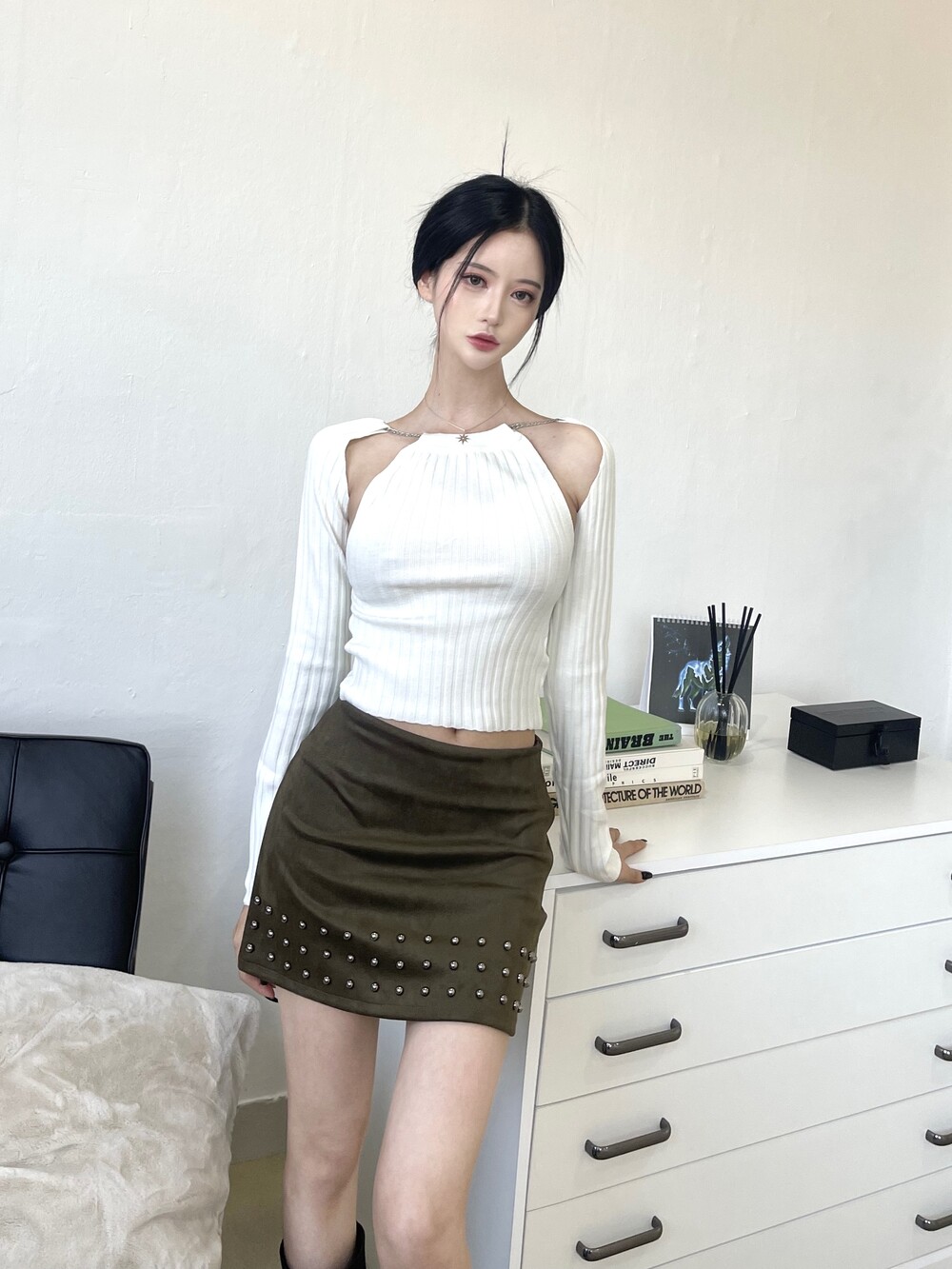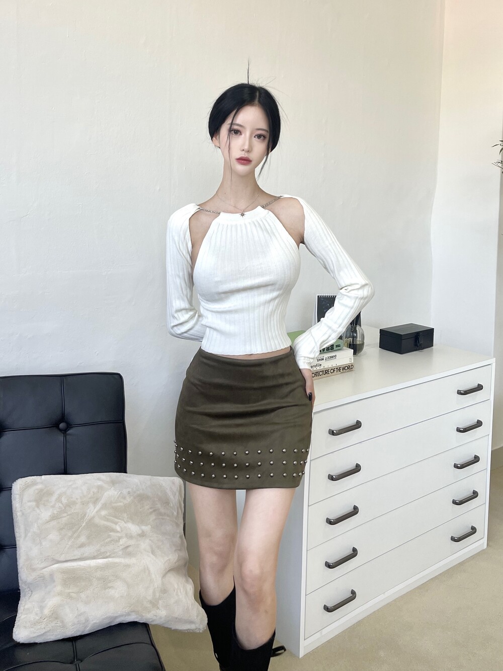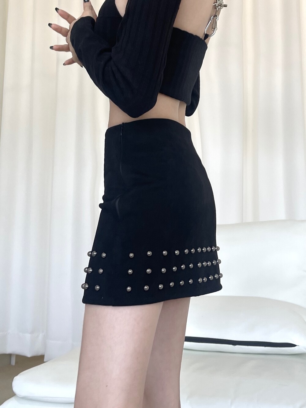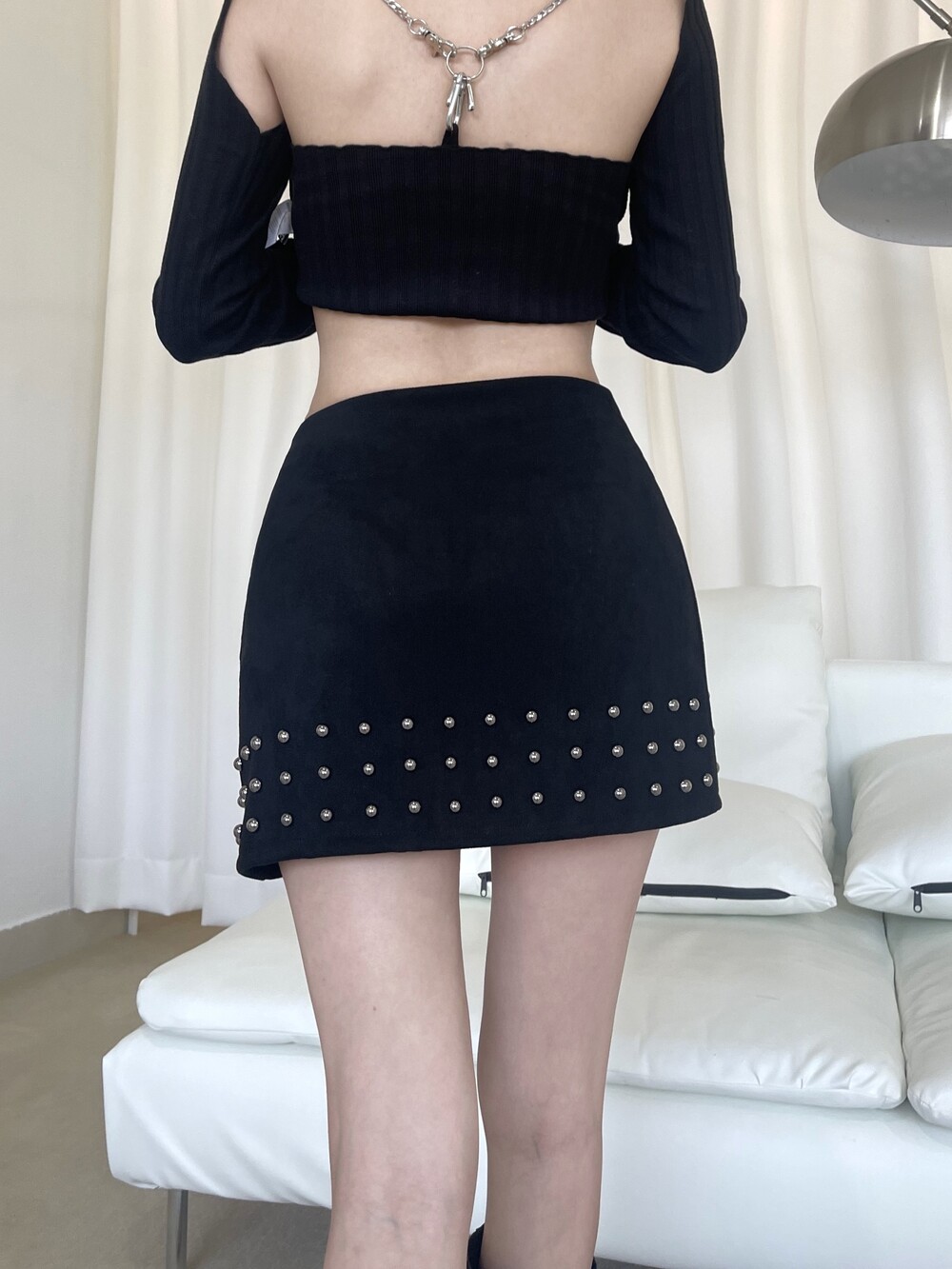 스터드 스웨이드 미니 스커트
