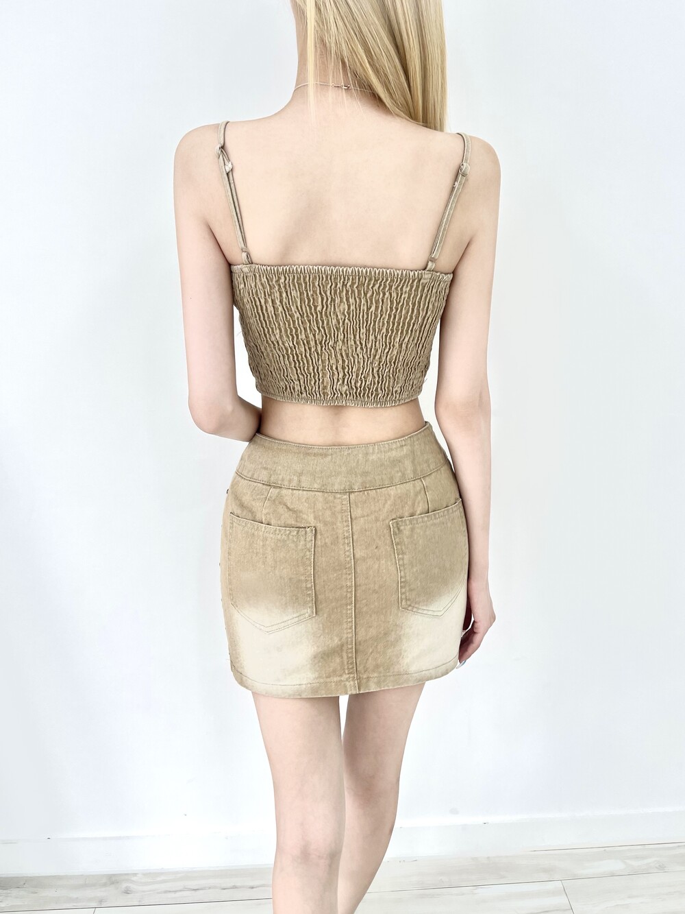 샌드 워싱 데님 스터드 코르셋 탑 스커트 투피스