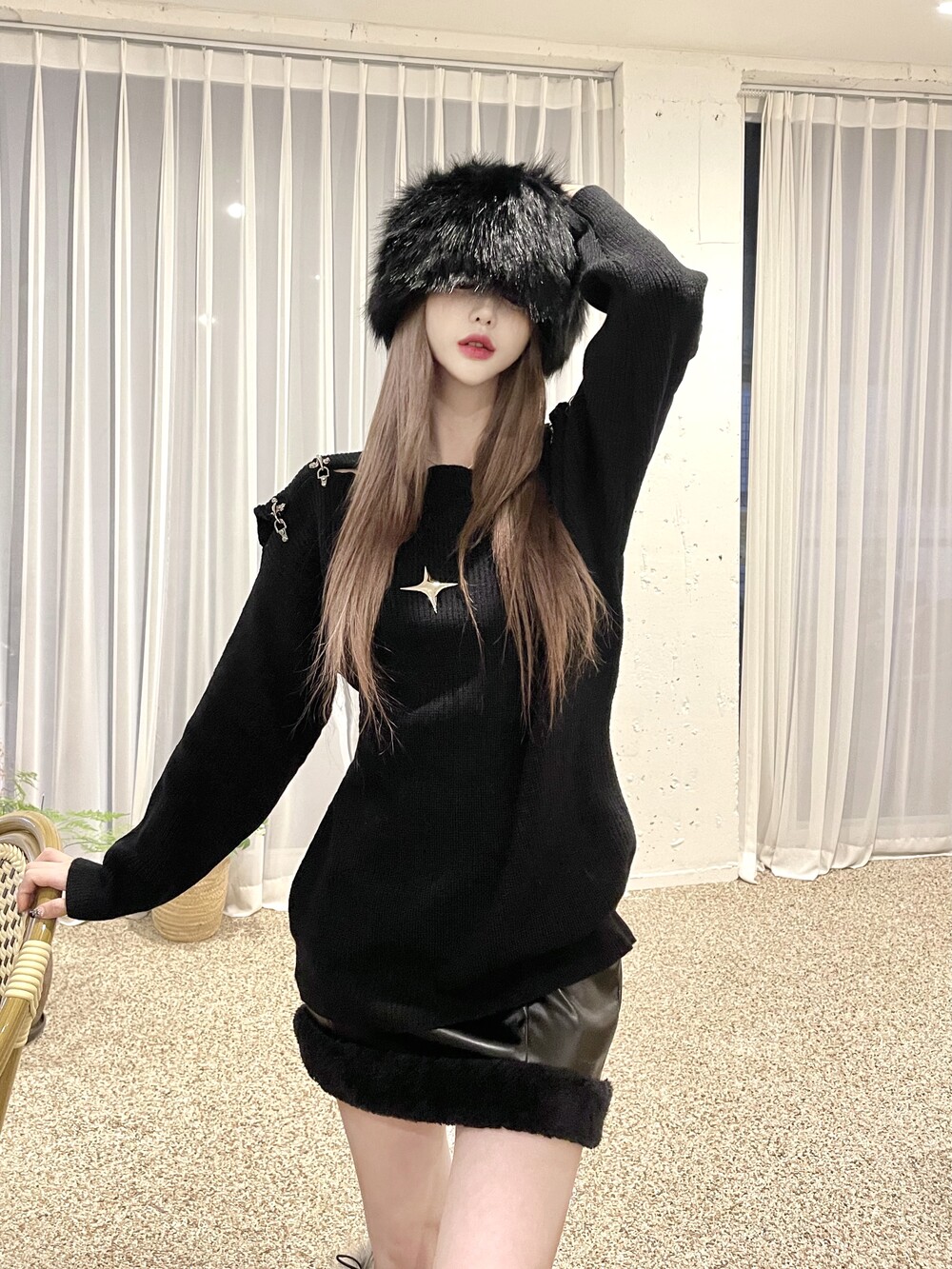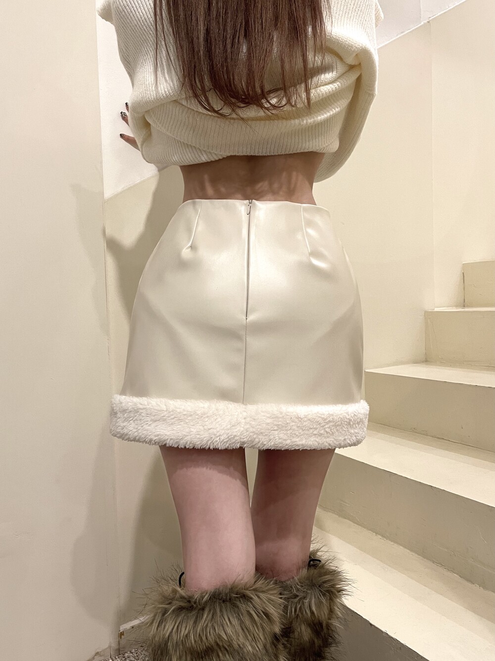 유연한 레더 소재에 소프트한 퍼 디테일이 들어간 스커트로 센슈얼한 무드
