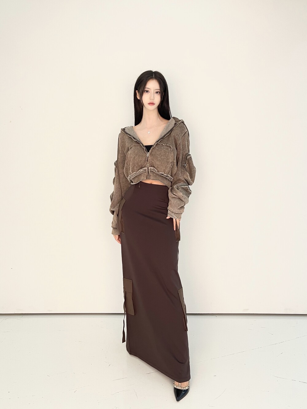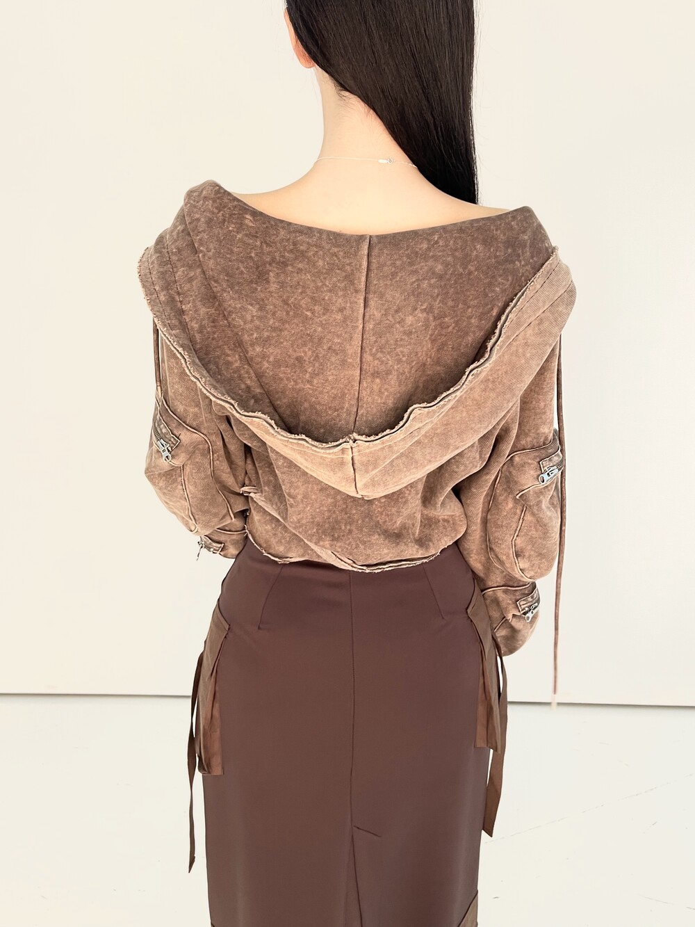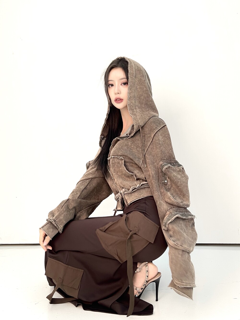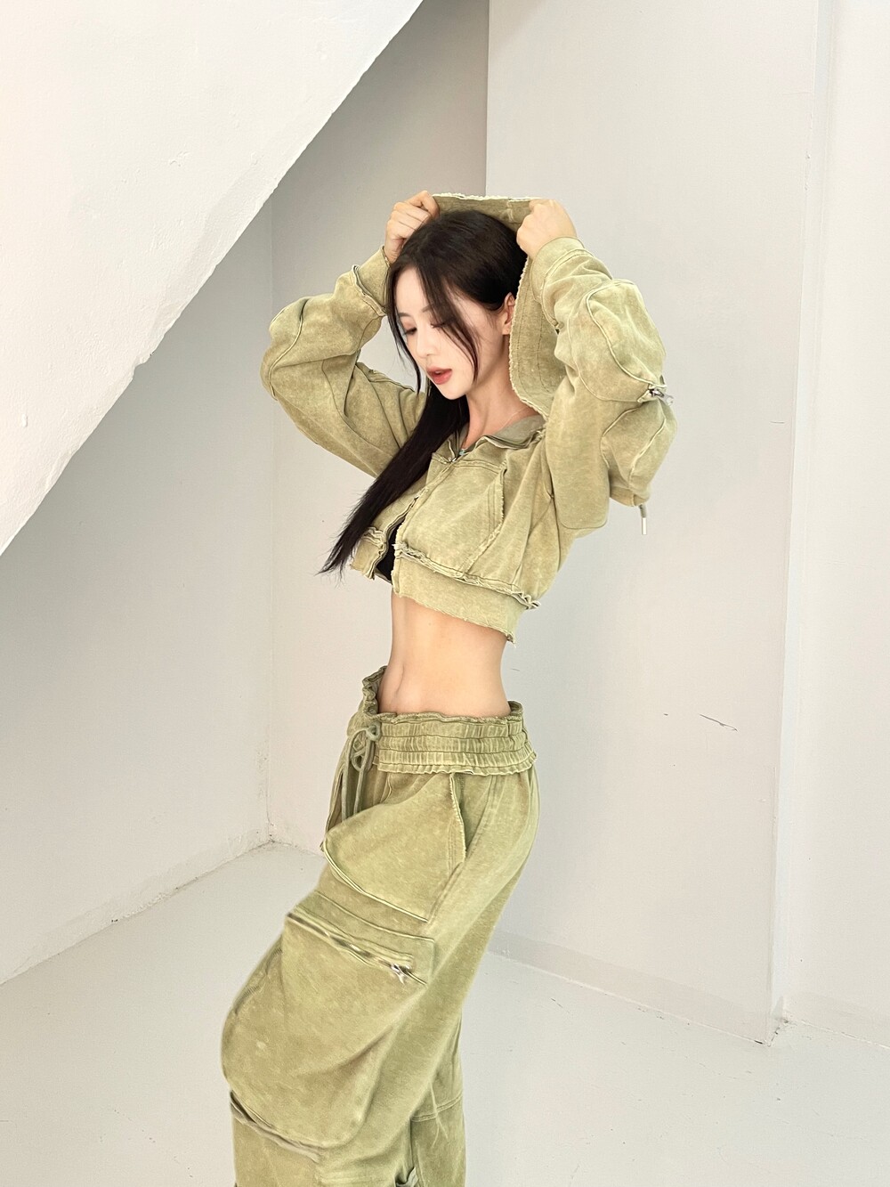 피그먼트 워싱 카고 크롭 후드집업