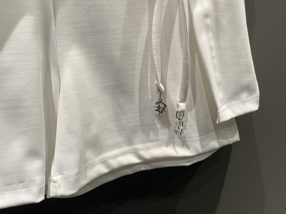 유니크한 실버 레터링 참이 스트링 끝에 붙어있어