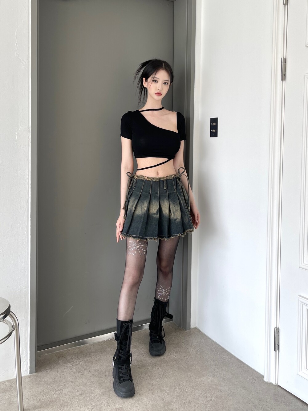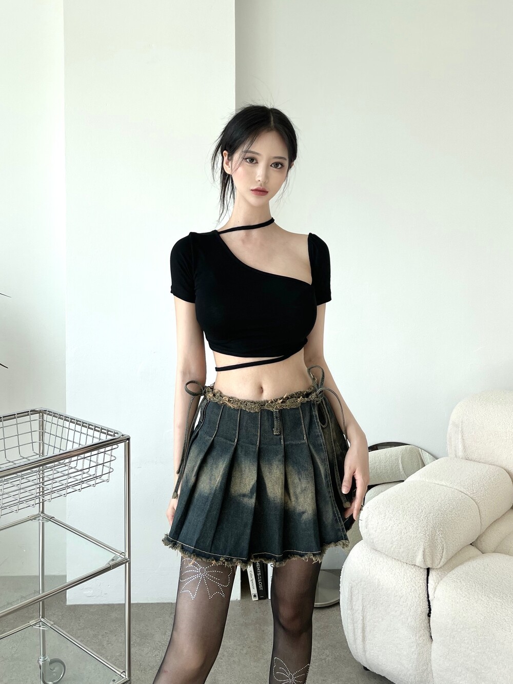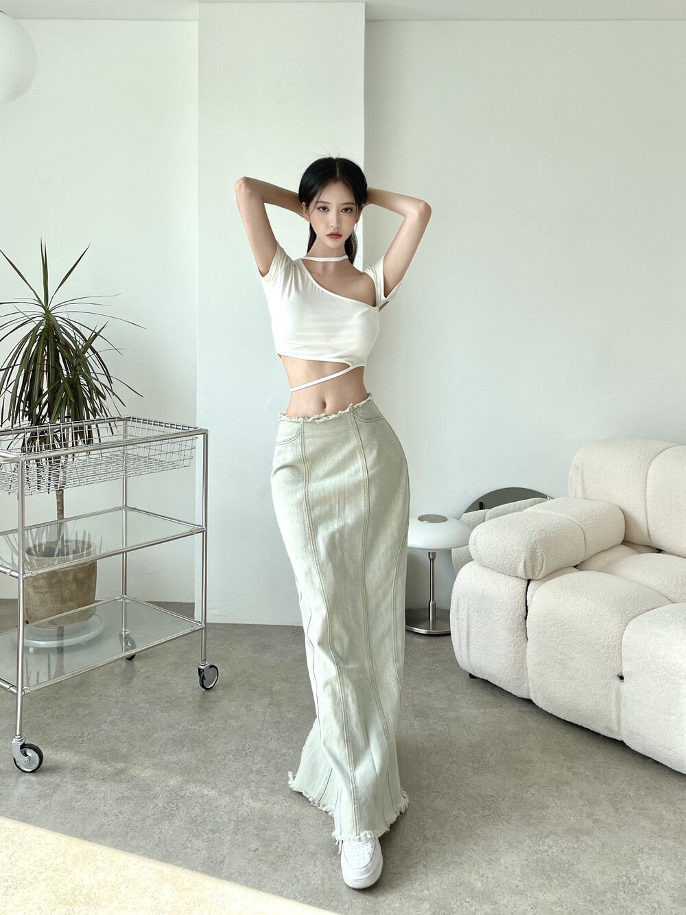 크롭 기장으로 팬츠, 스커트 모두 활용도 높은 탑