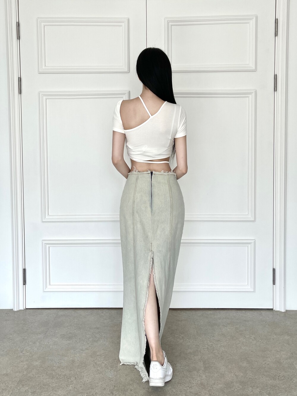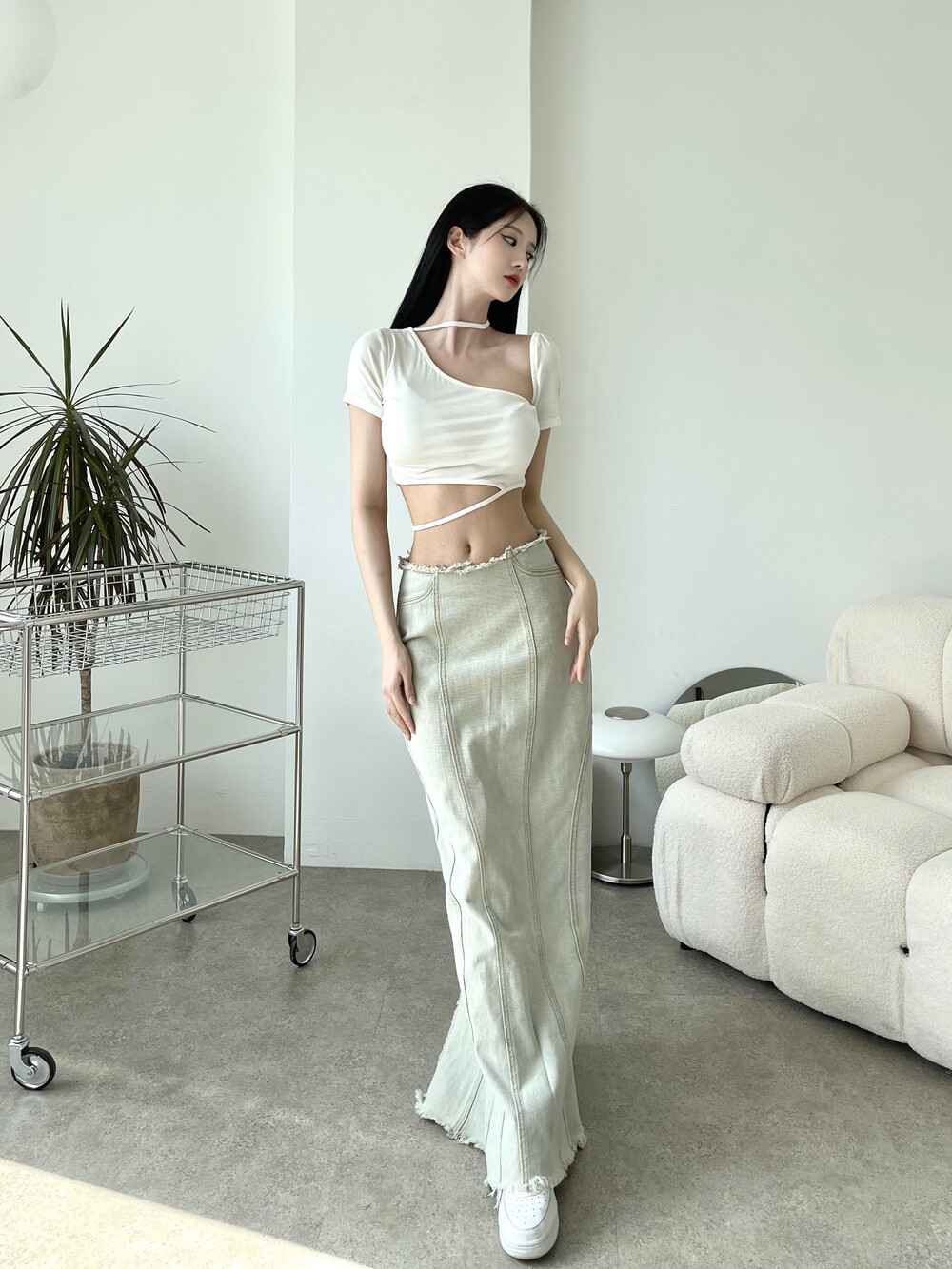 시크한 슬릿 디테일이 매력적인 오블리크 탑