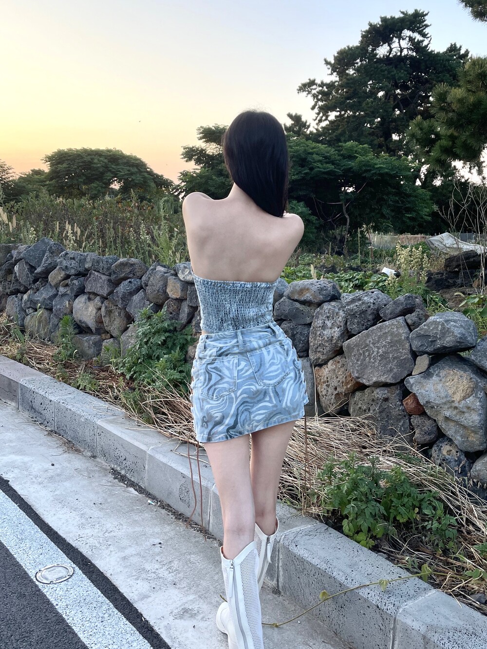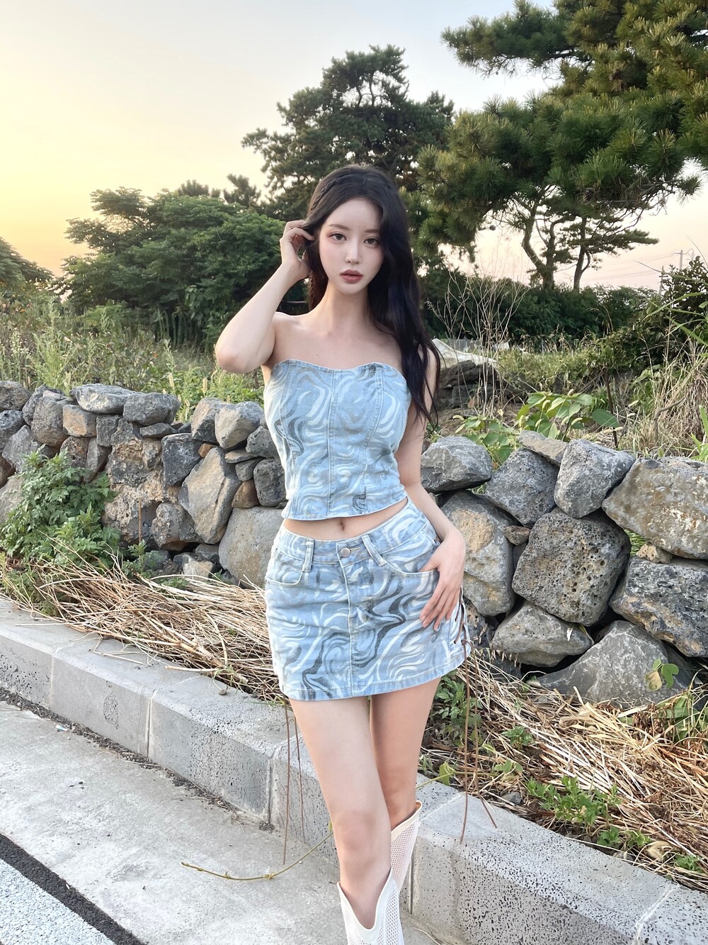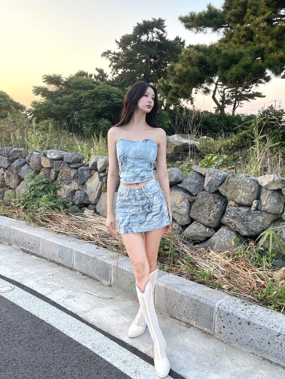 웨스턴 아일렛 데님 미니 스커트