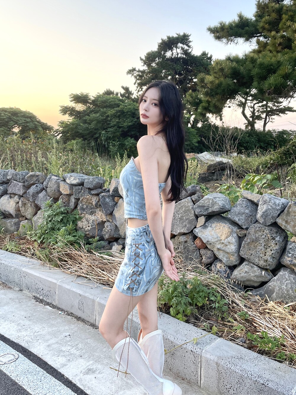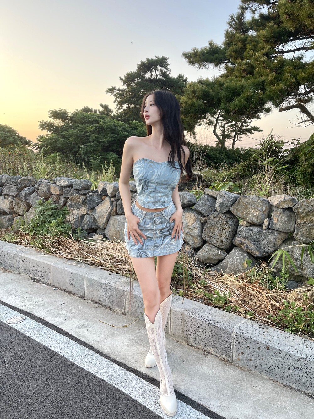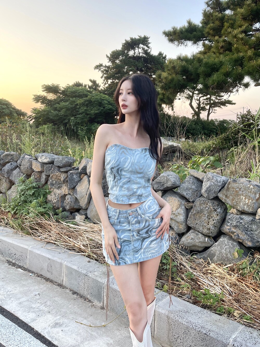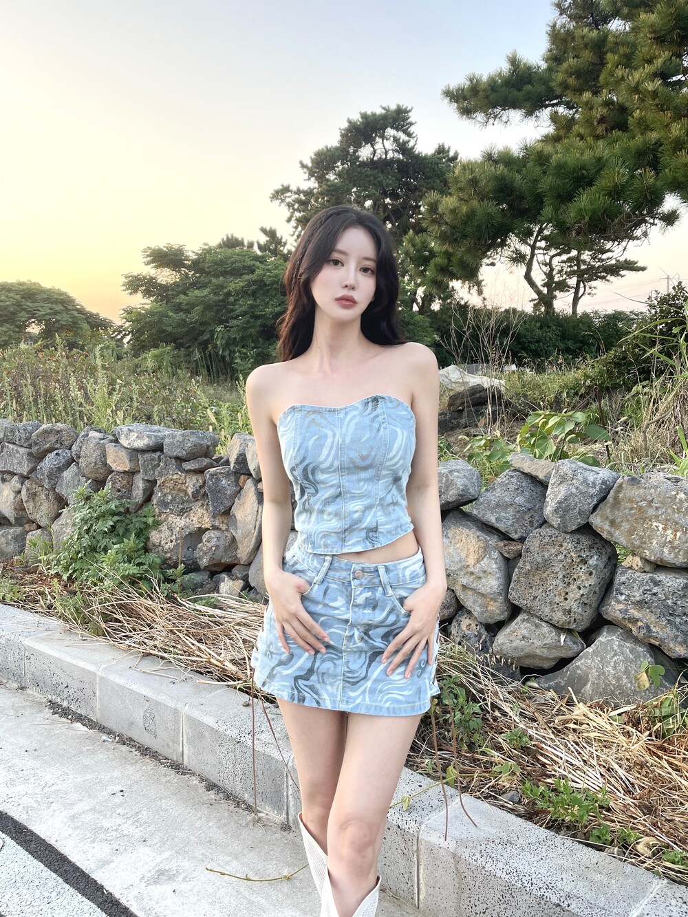 웨스턴 아일렛 데님 미니 스커트