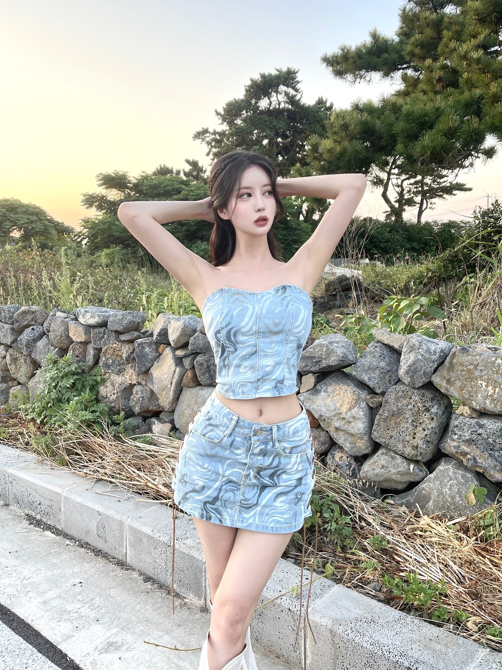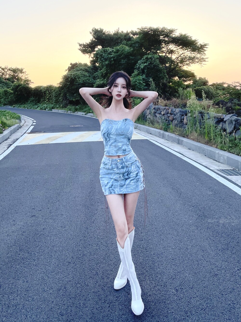 1014. Western corset denim crop top]