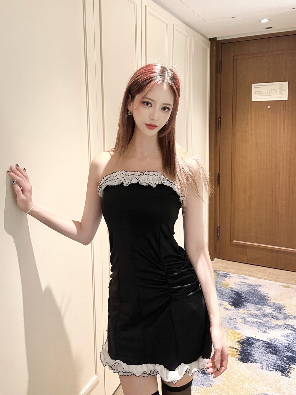 프릴 트리밍 장식 튜브탑 셔링 원피스
