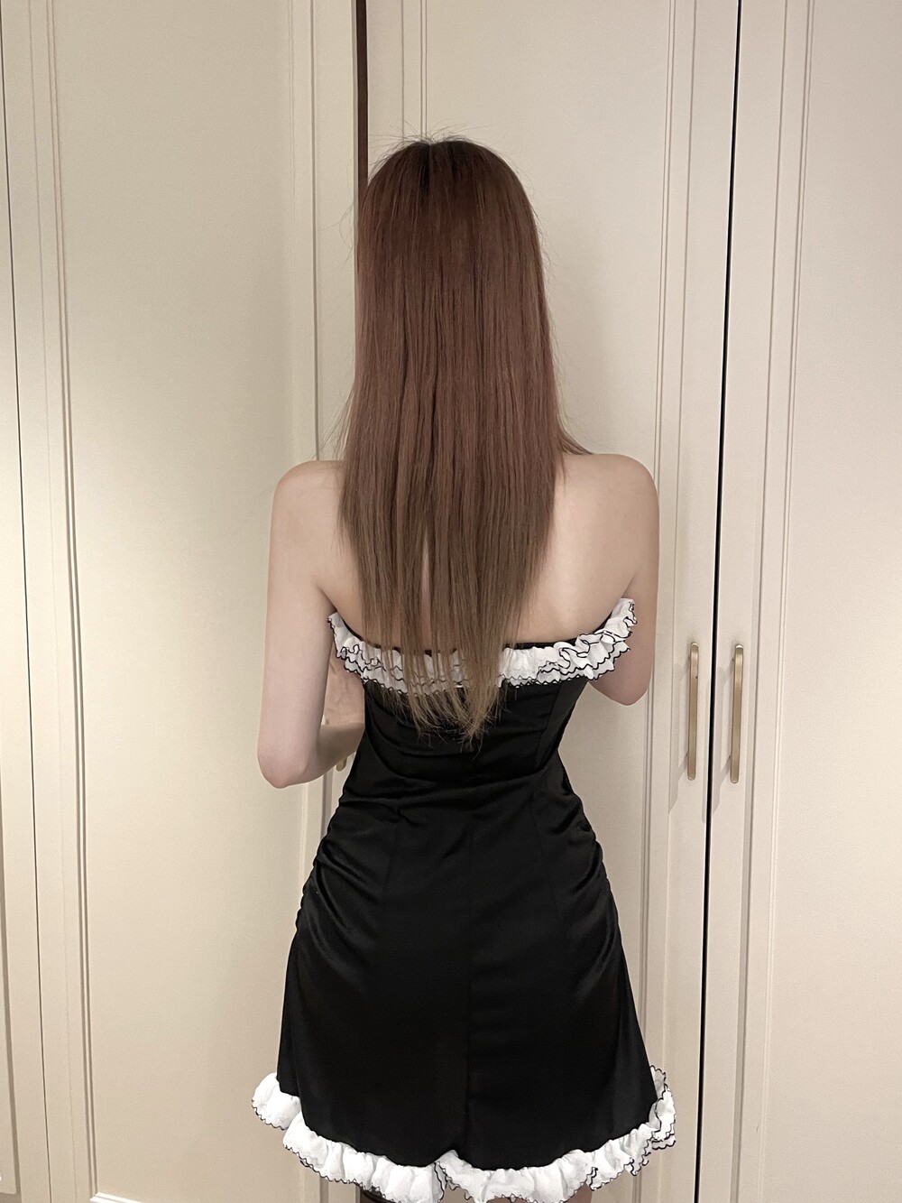 가슴라인과 밑단에 부착된 화이트 프릴이