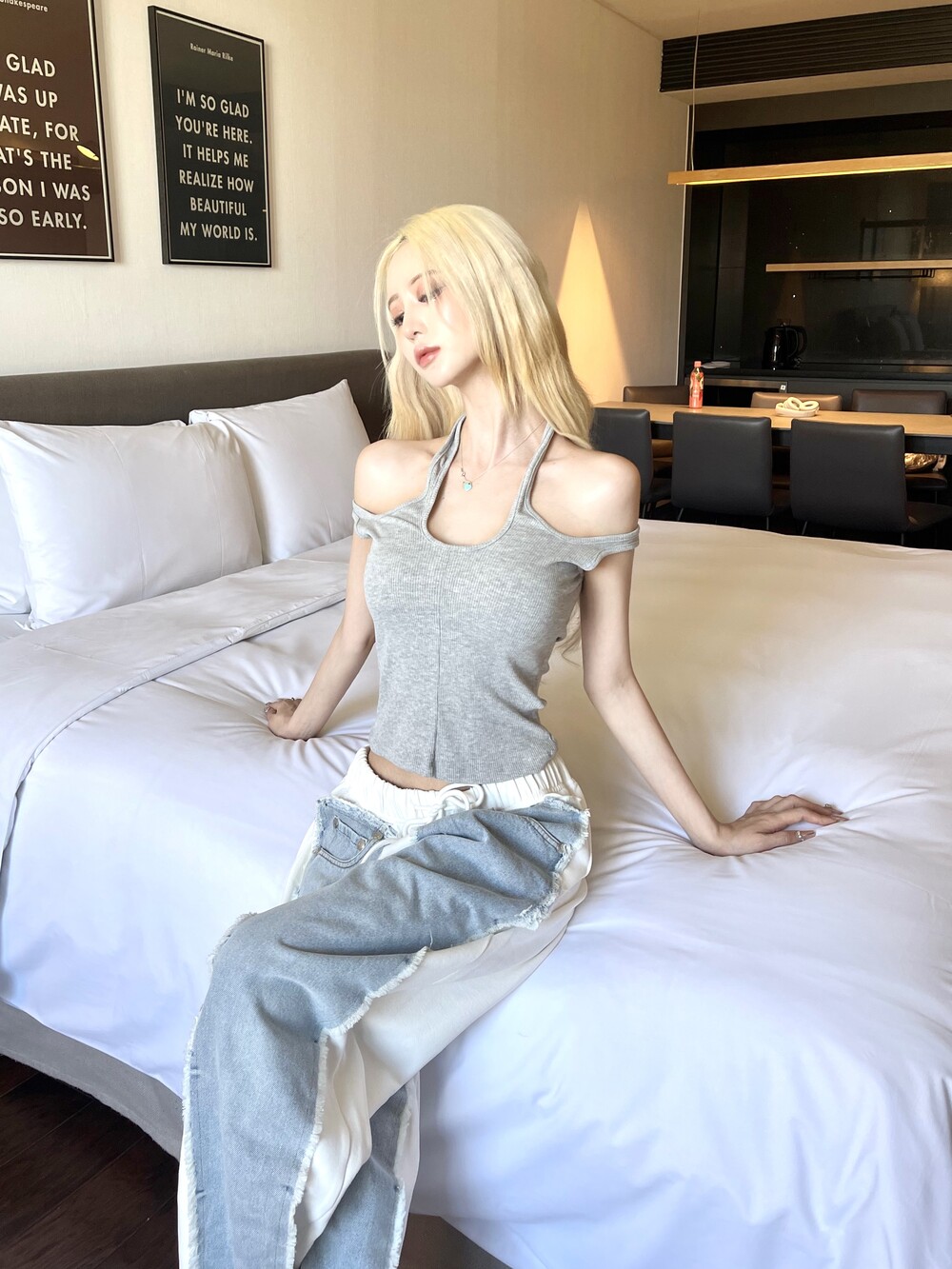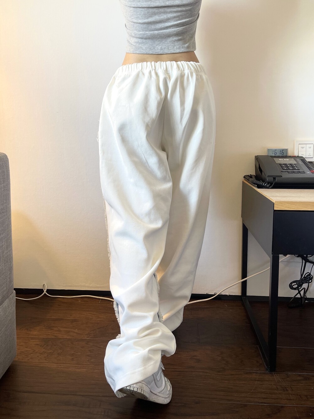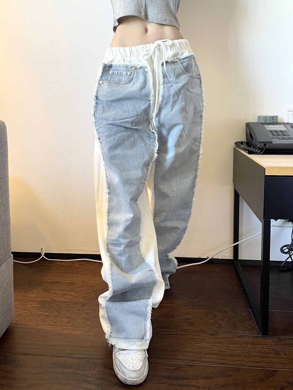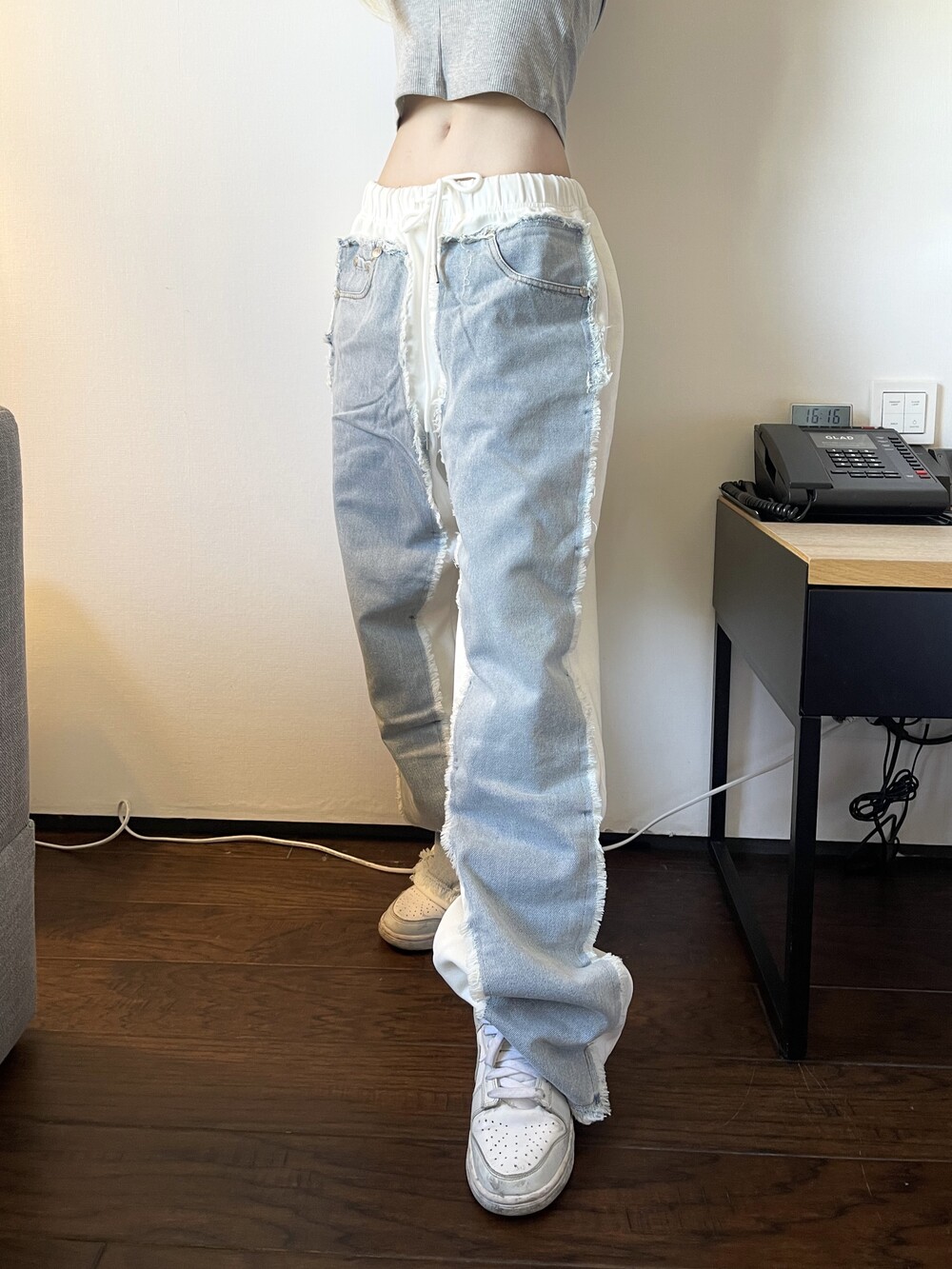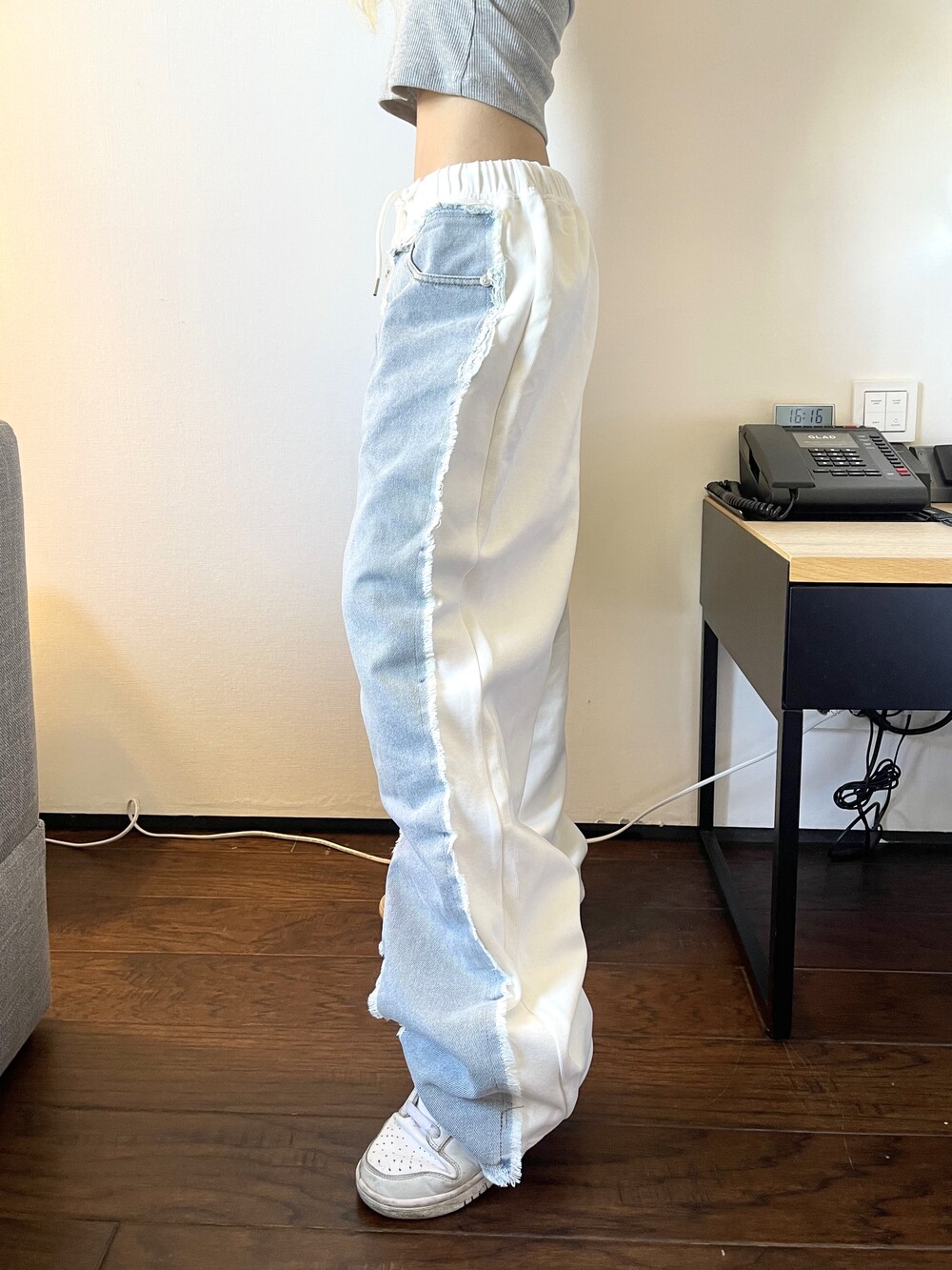 데님 패치 데미지 트레이닝 와이드 팬츠