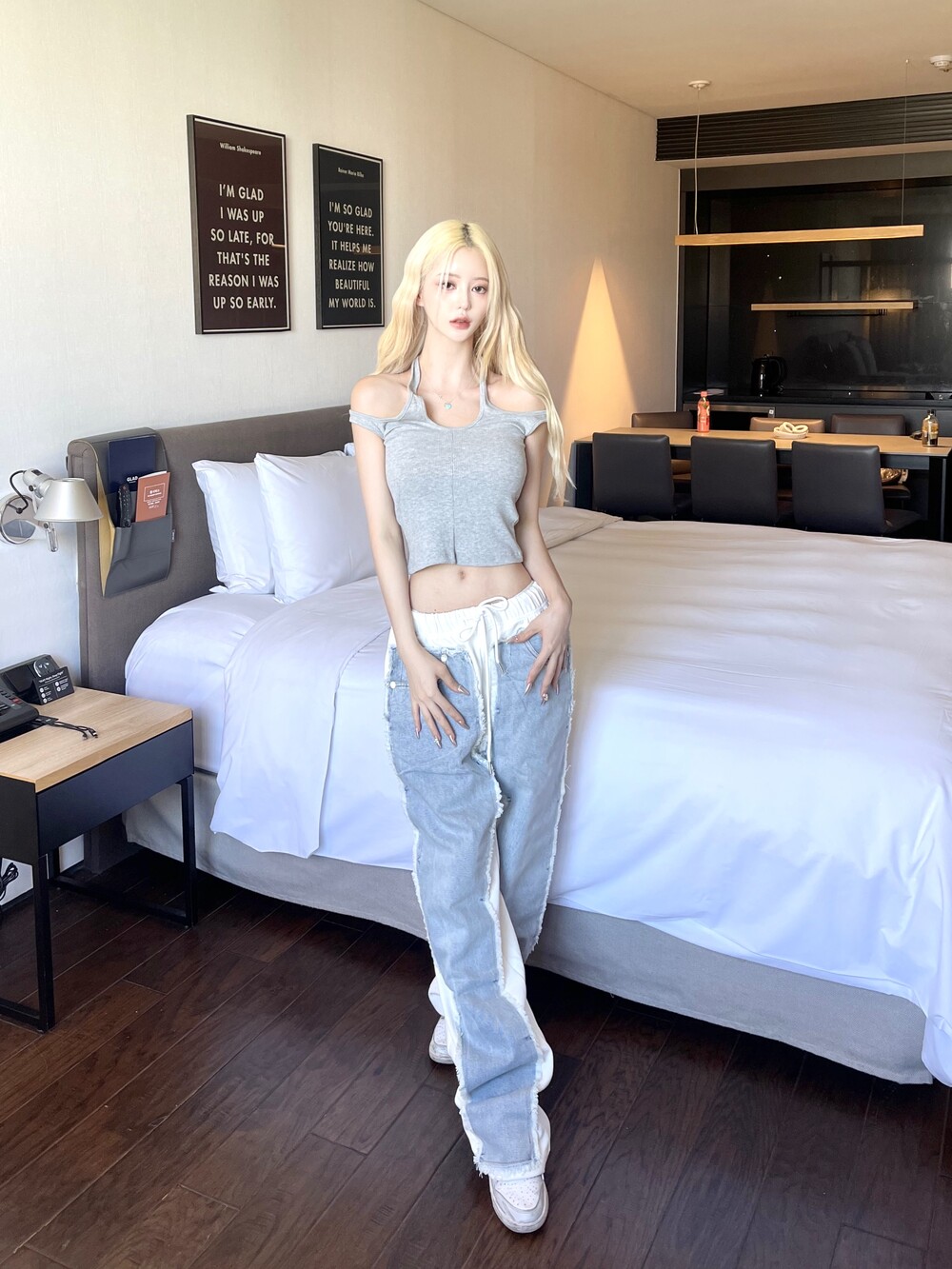 허리 38~56(끈조절 가능) 힙 60 허벅지 32 밑위 31 밑단 26.5 총장 105