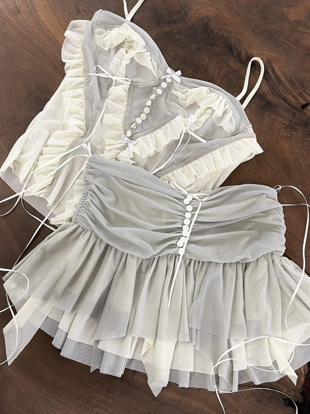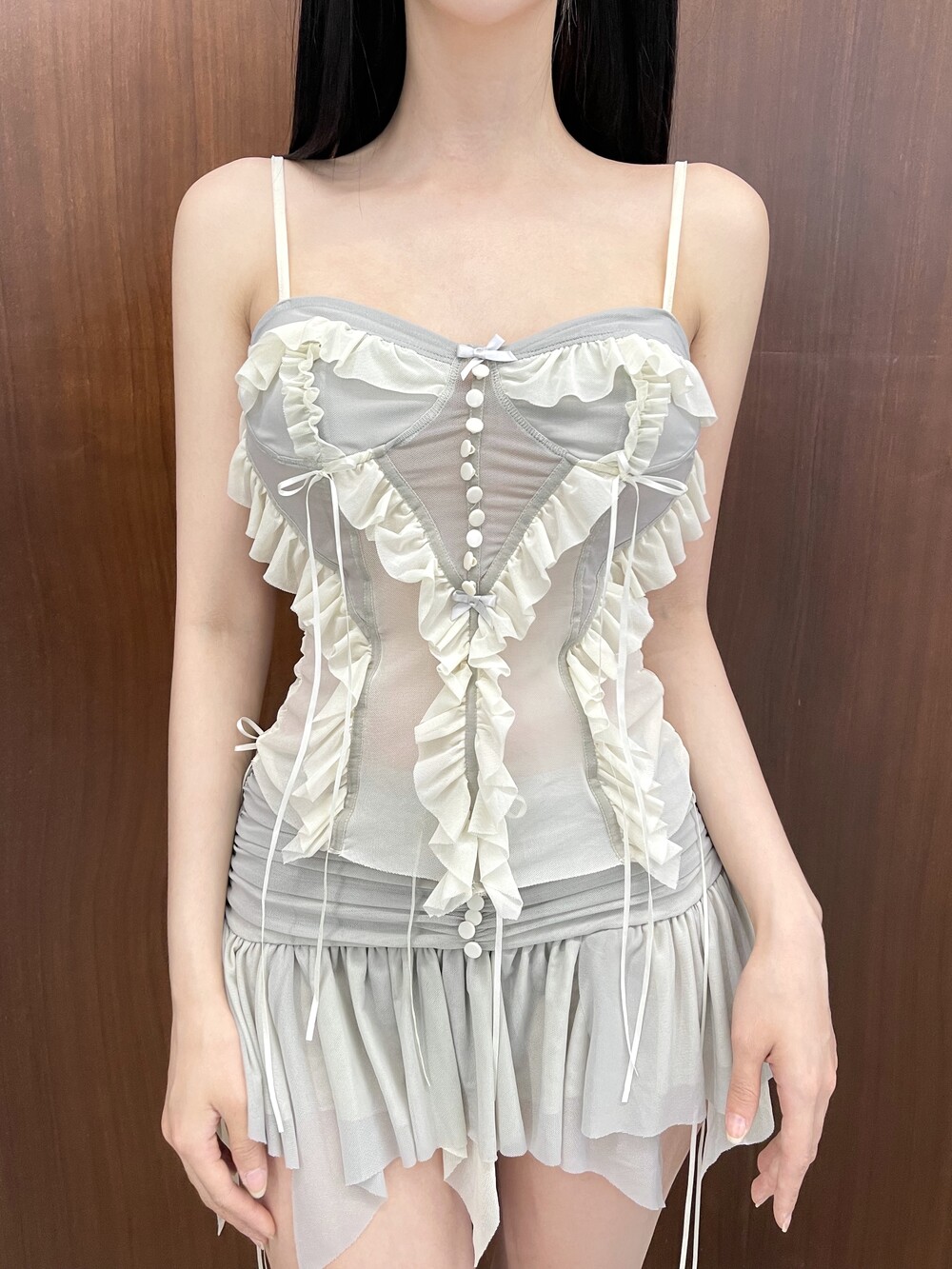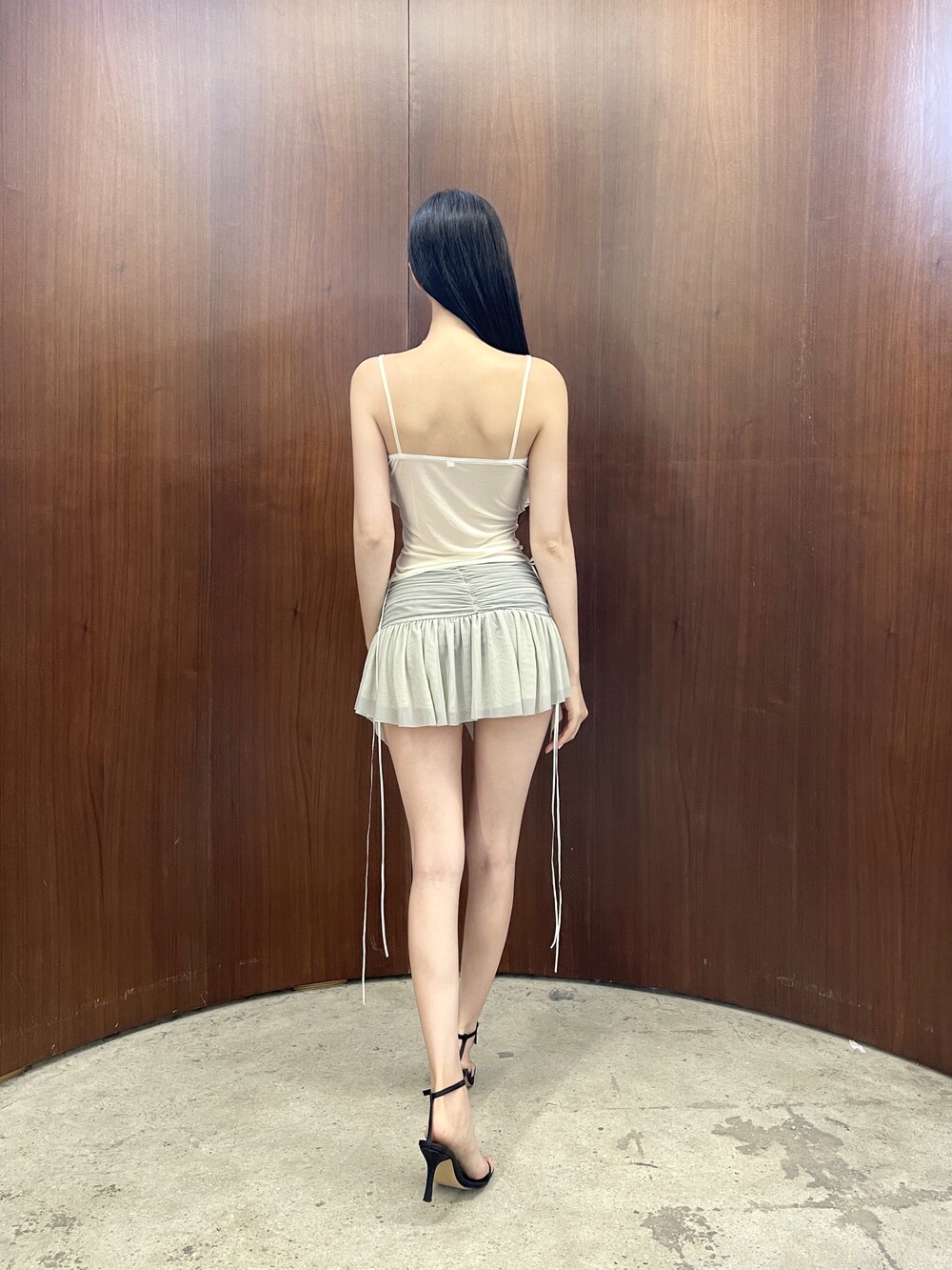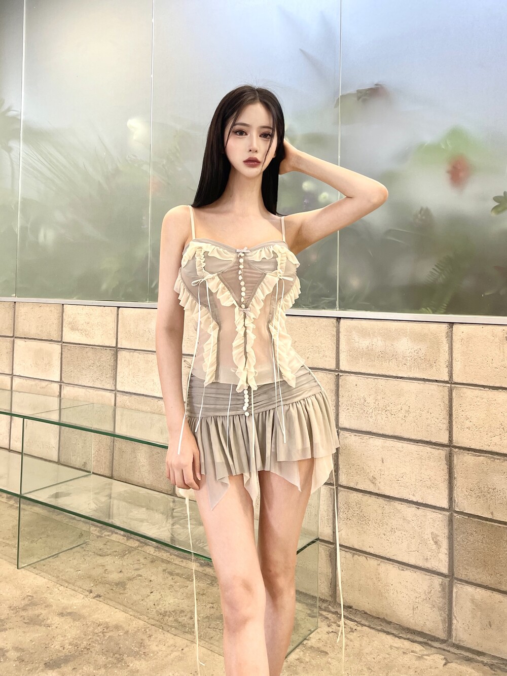 발레코어룩 시스루 러플 쉬폰 슬리브리스