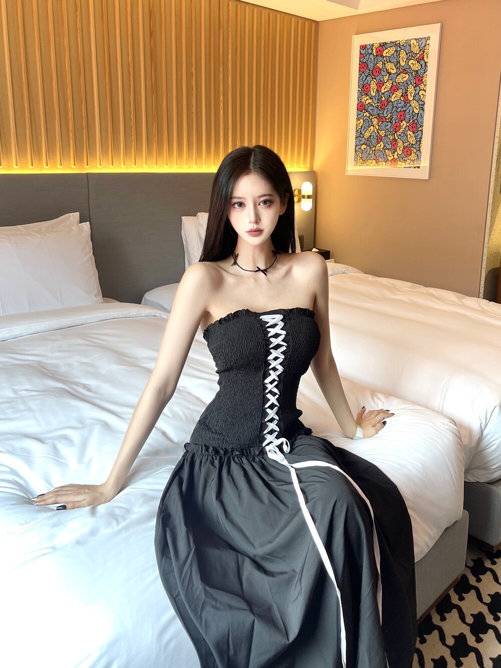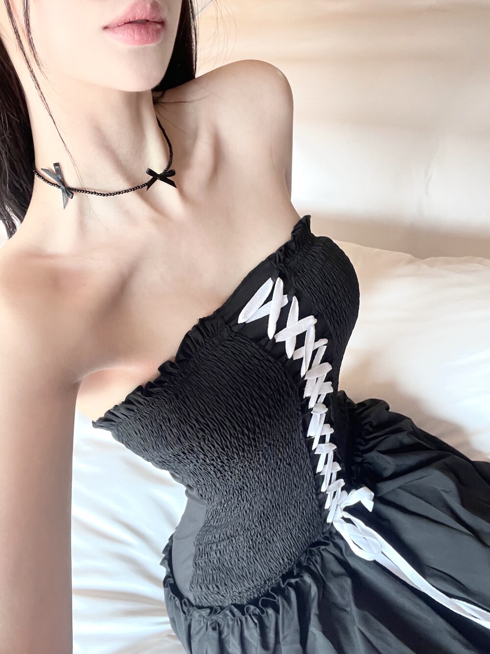 [968. Pearl ribbon chocker (2color)]