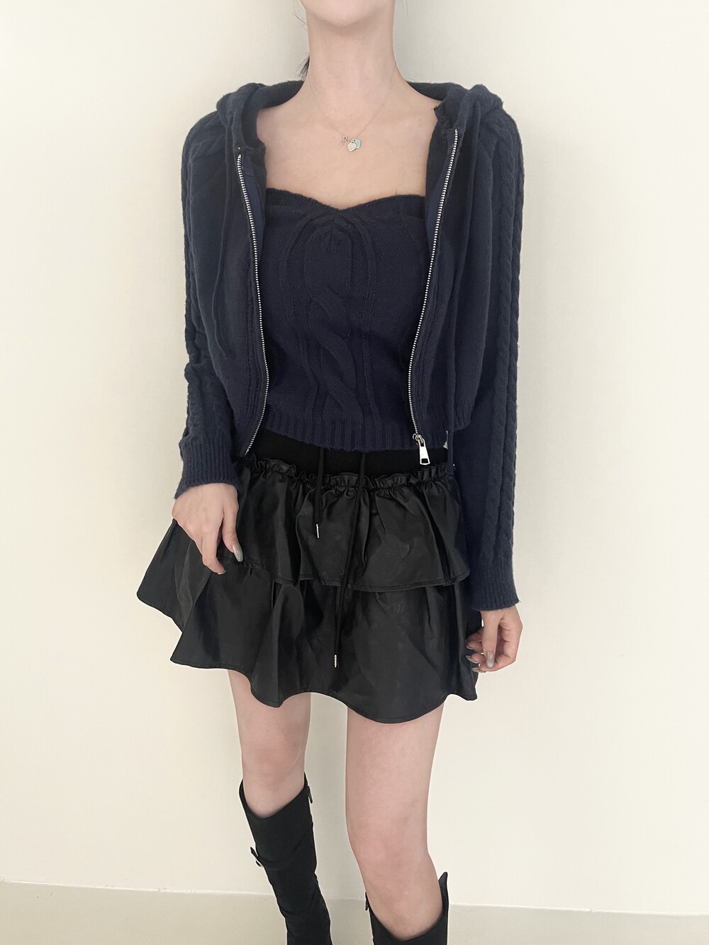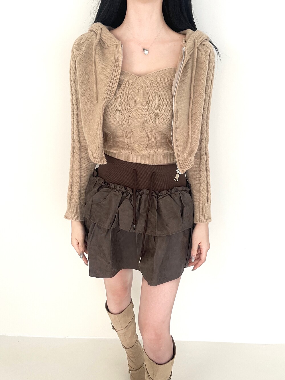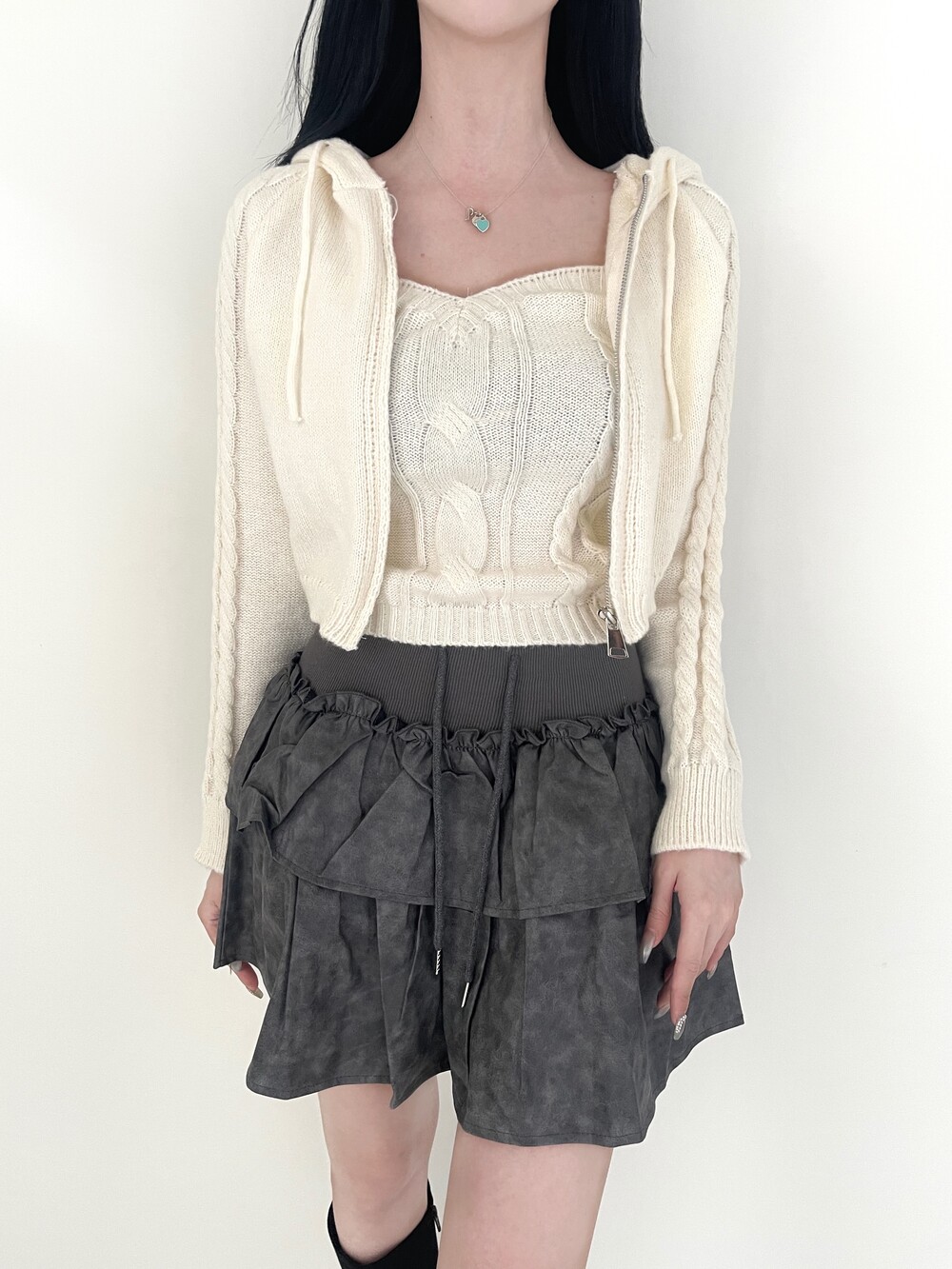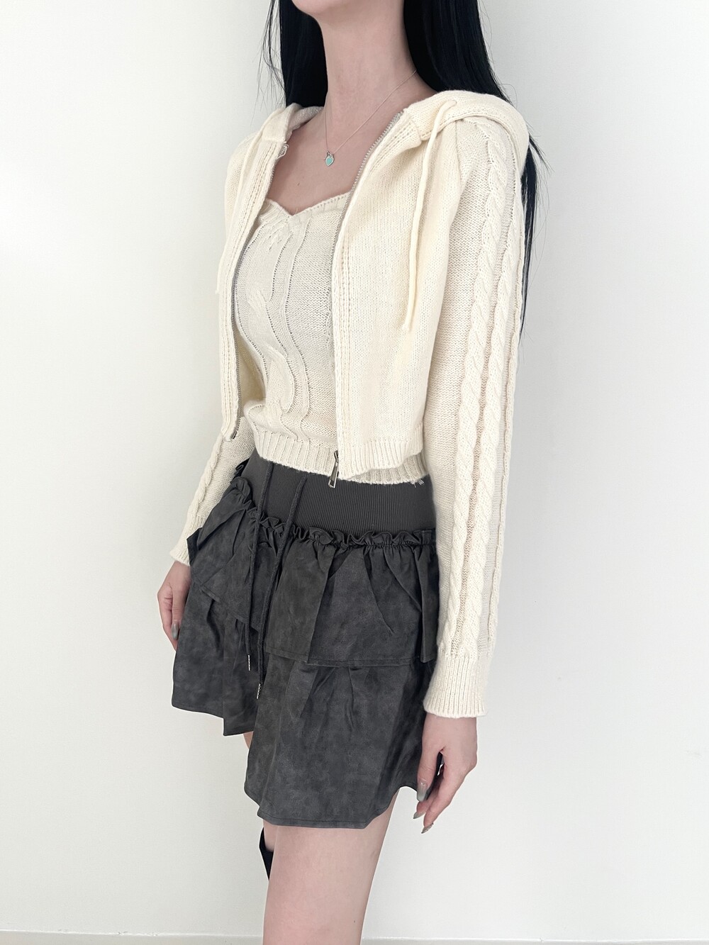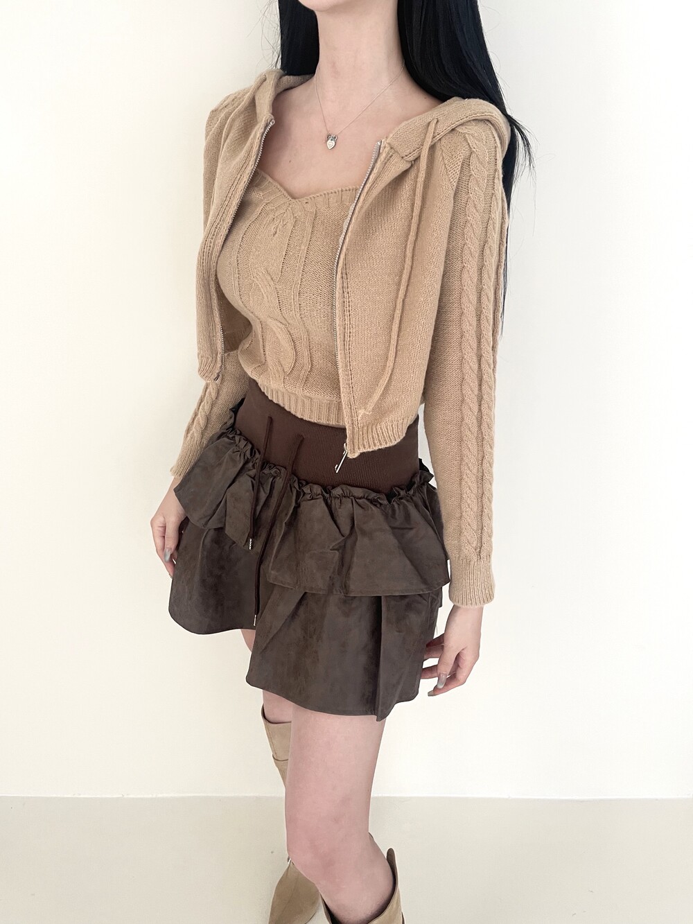 니트 후드 집업과 니트 슬리브리스 세트 구성으로