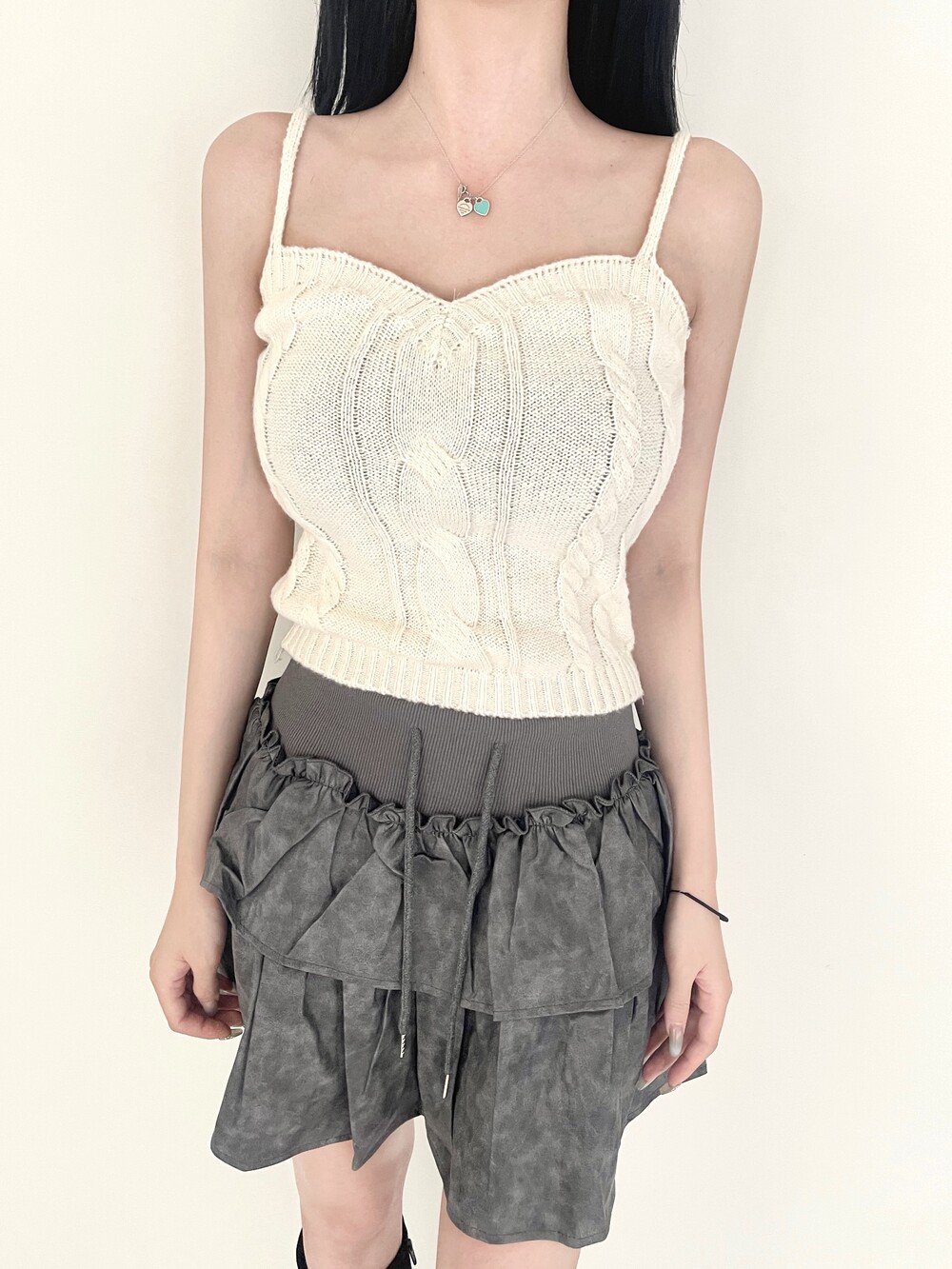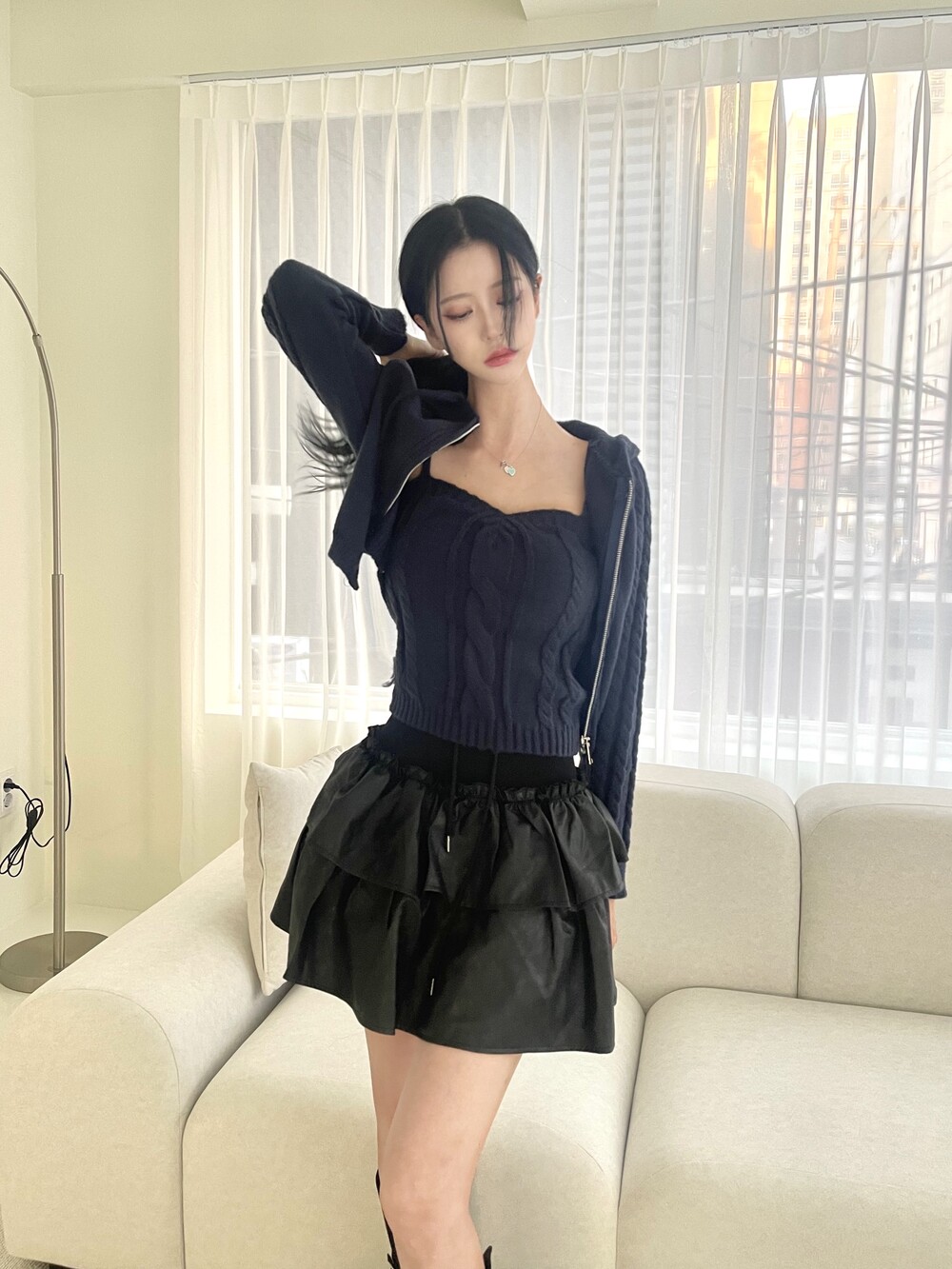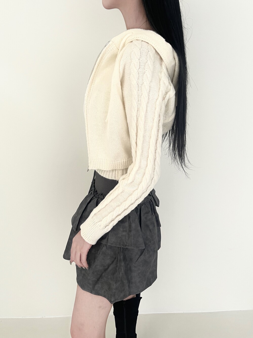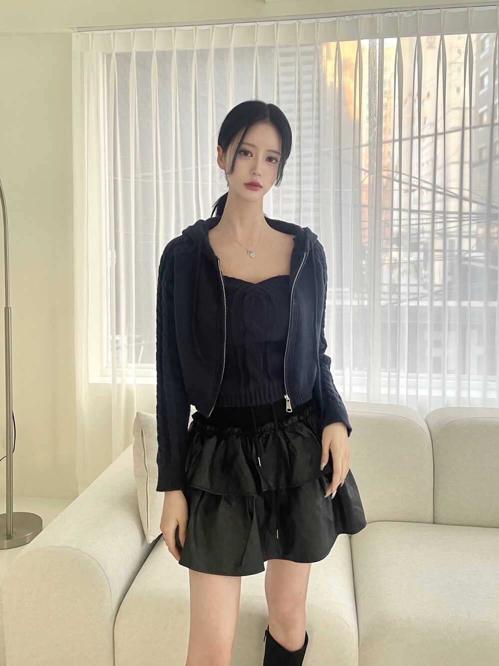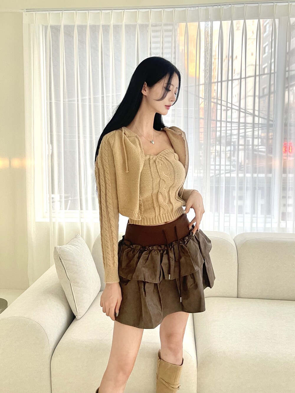 니트 후드 집업과 니트 슬리브리스 세트 구성으로