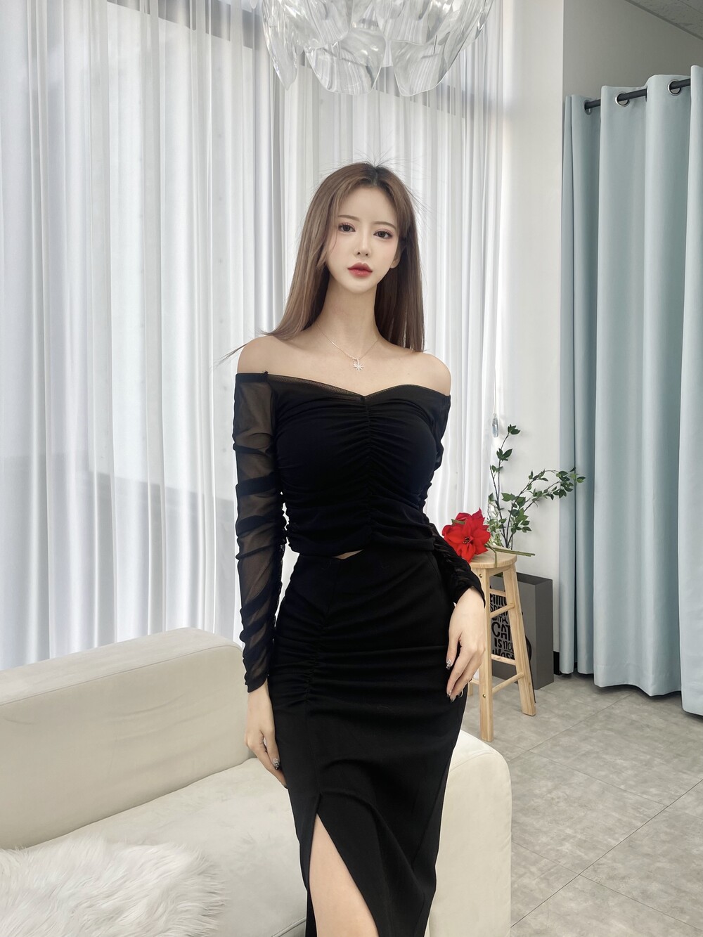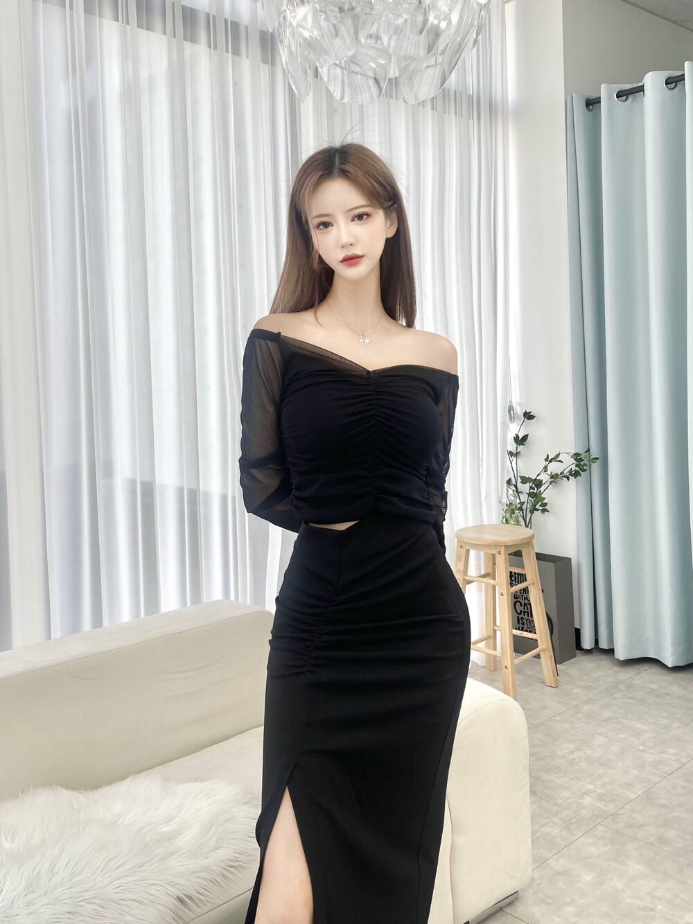 슬림핏 크롭 블라우스로 센슈얼한 라인