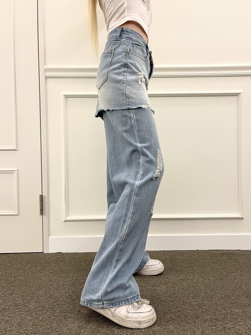 1405. Denim damage wide layered sk pt