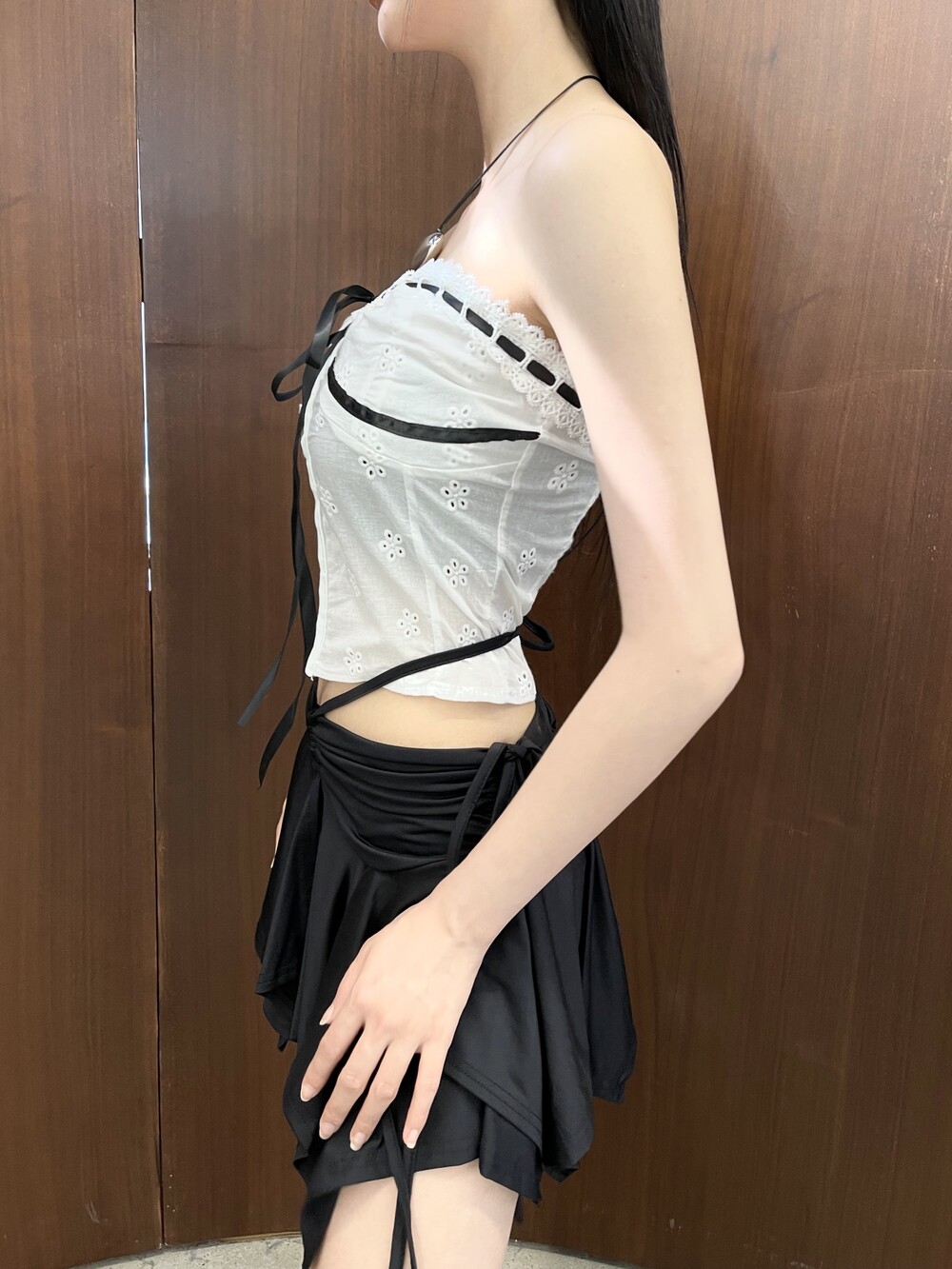 레이스 테이핑 리본 후크 탑