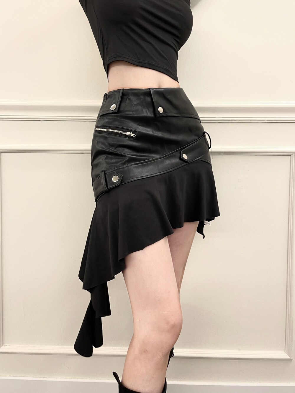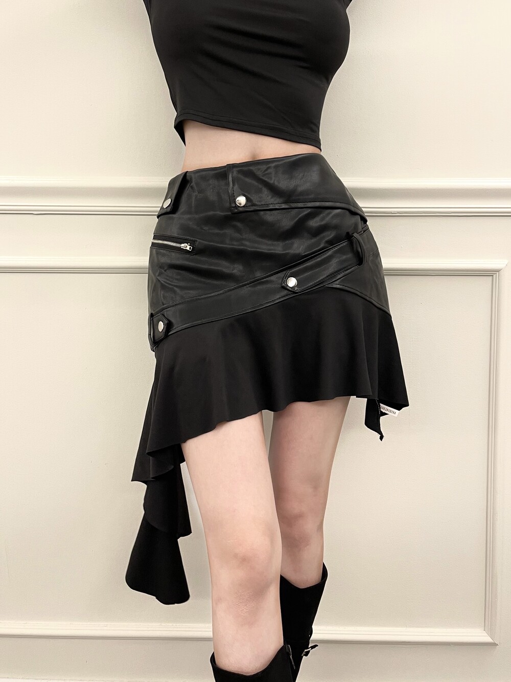 코튼 언발 프릴 밑단이 믹싱된 스커트